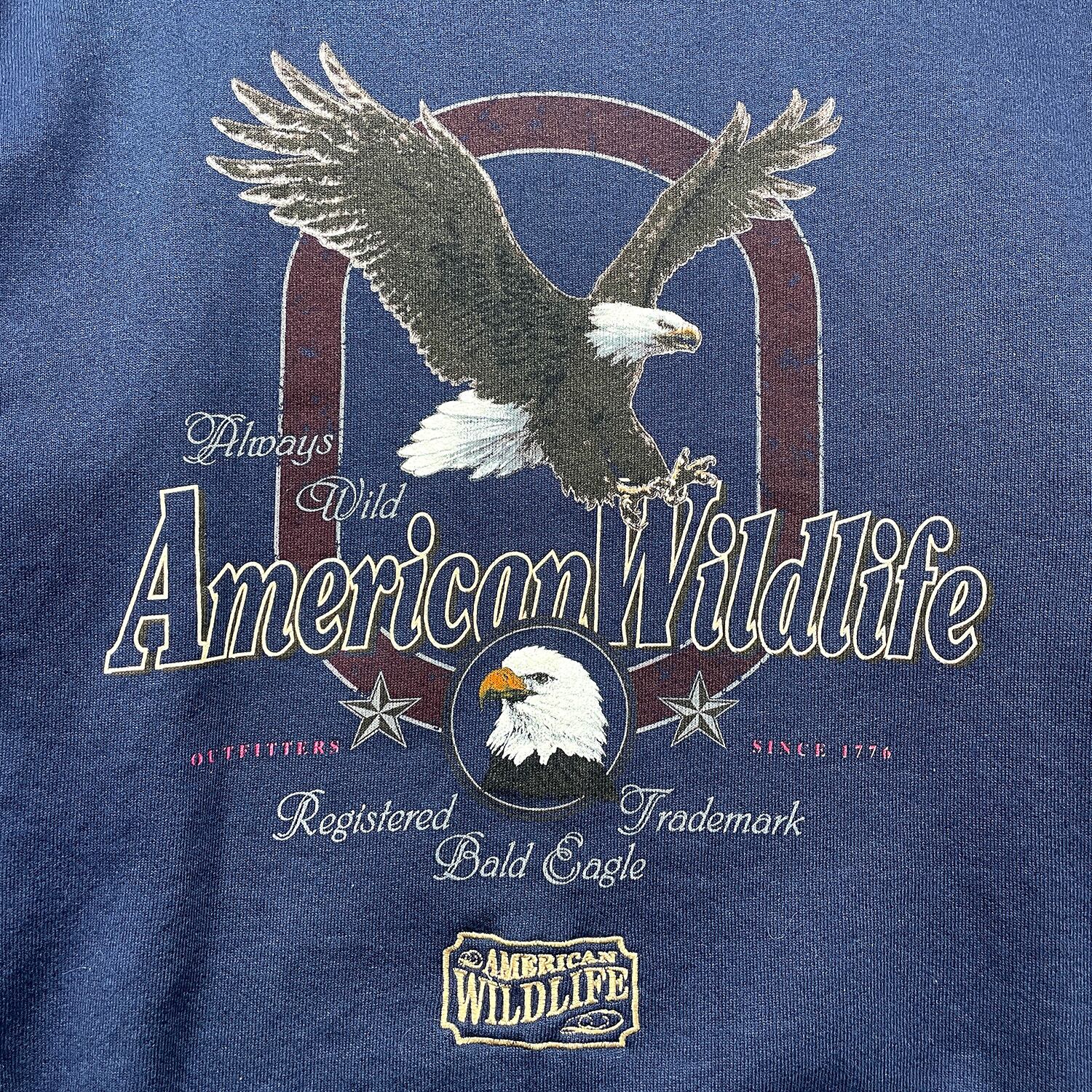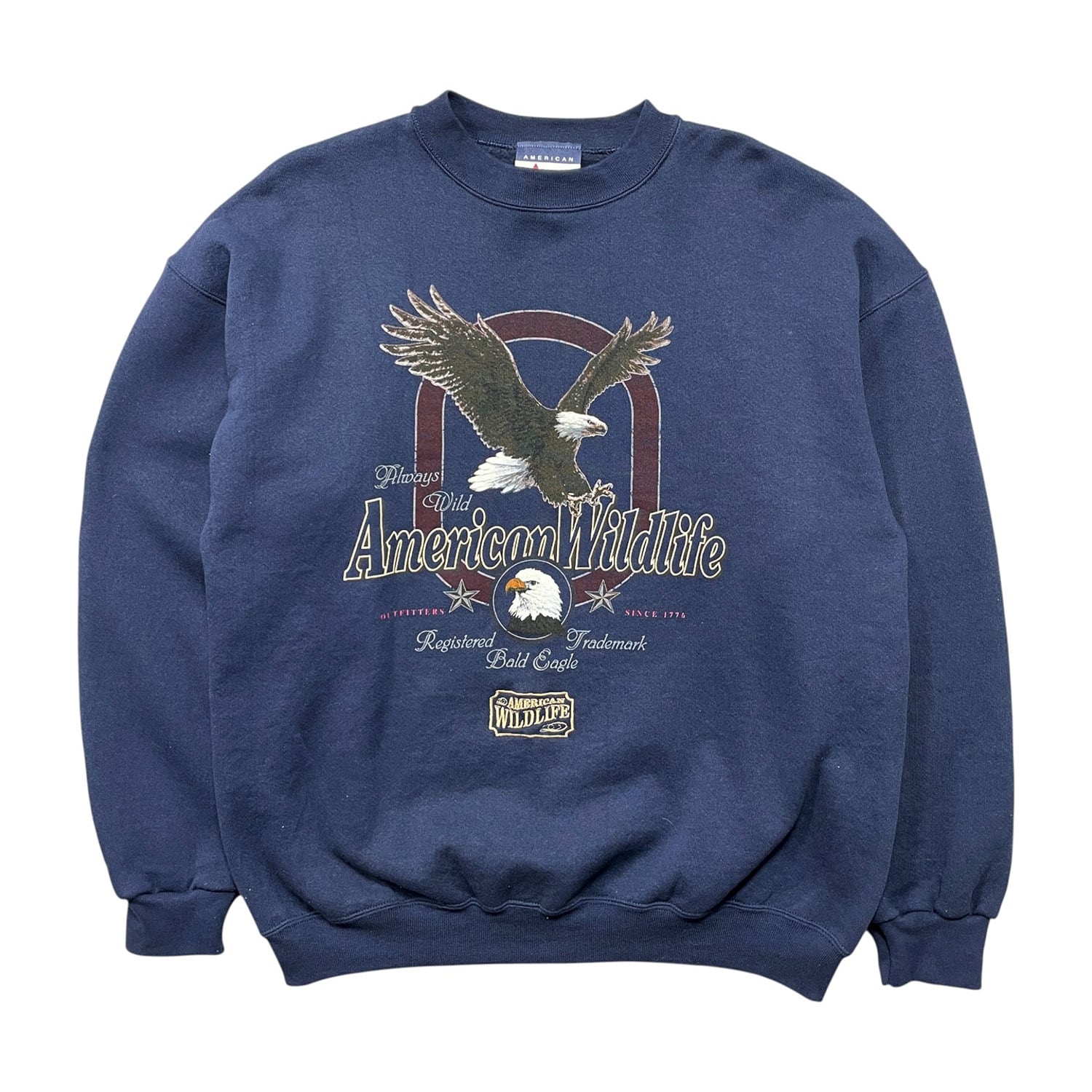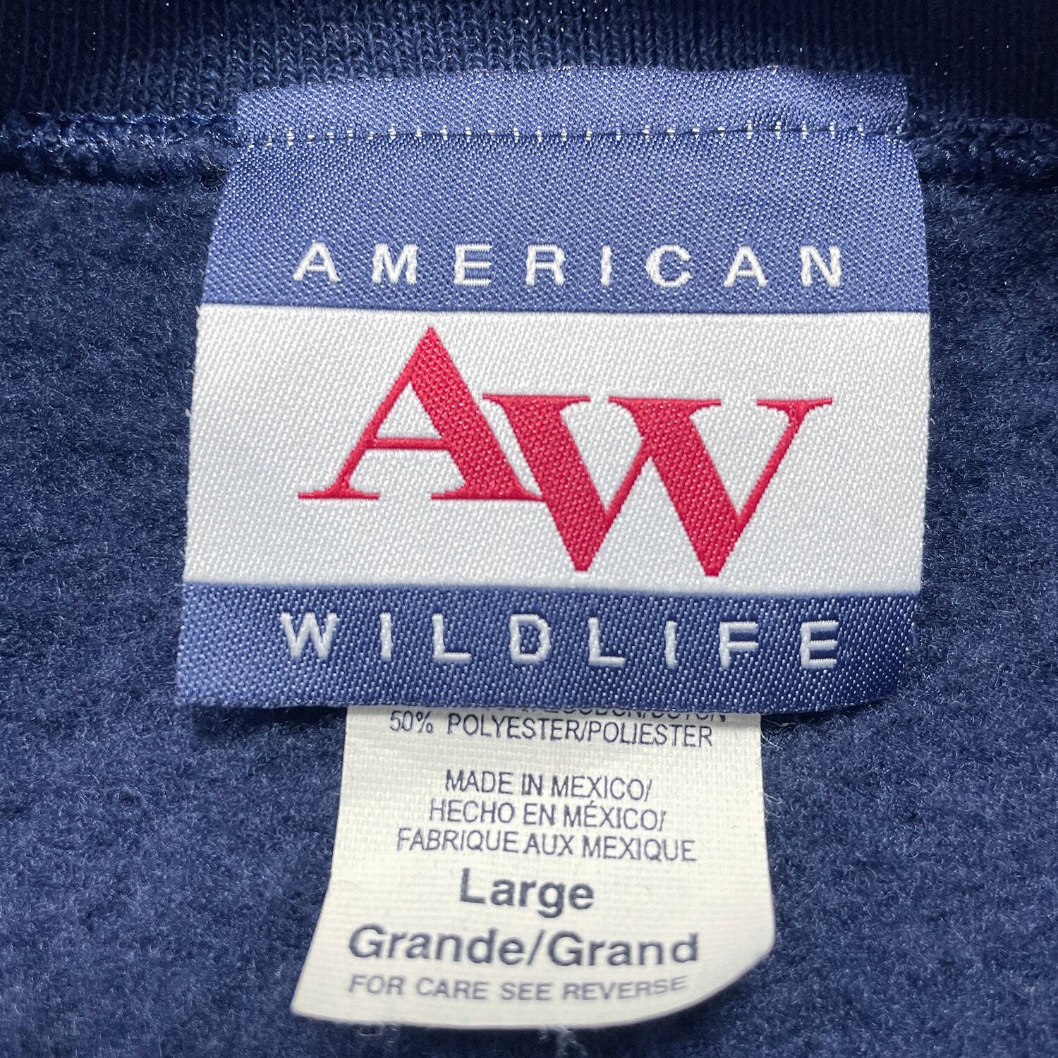 USA 古着 アメリカンワイルドライフ クルーネック スウェット トレーナー プリント ネイビー メンズL BD3380