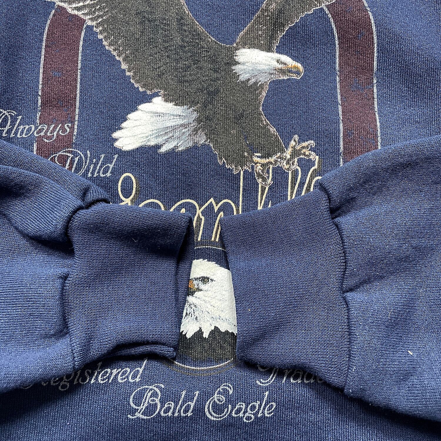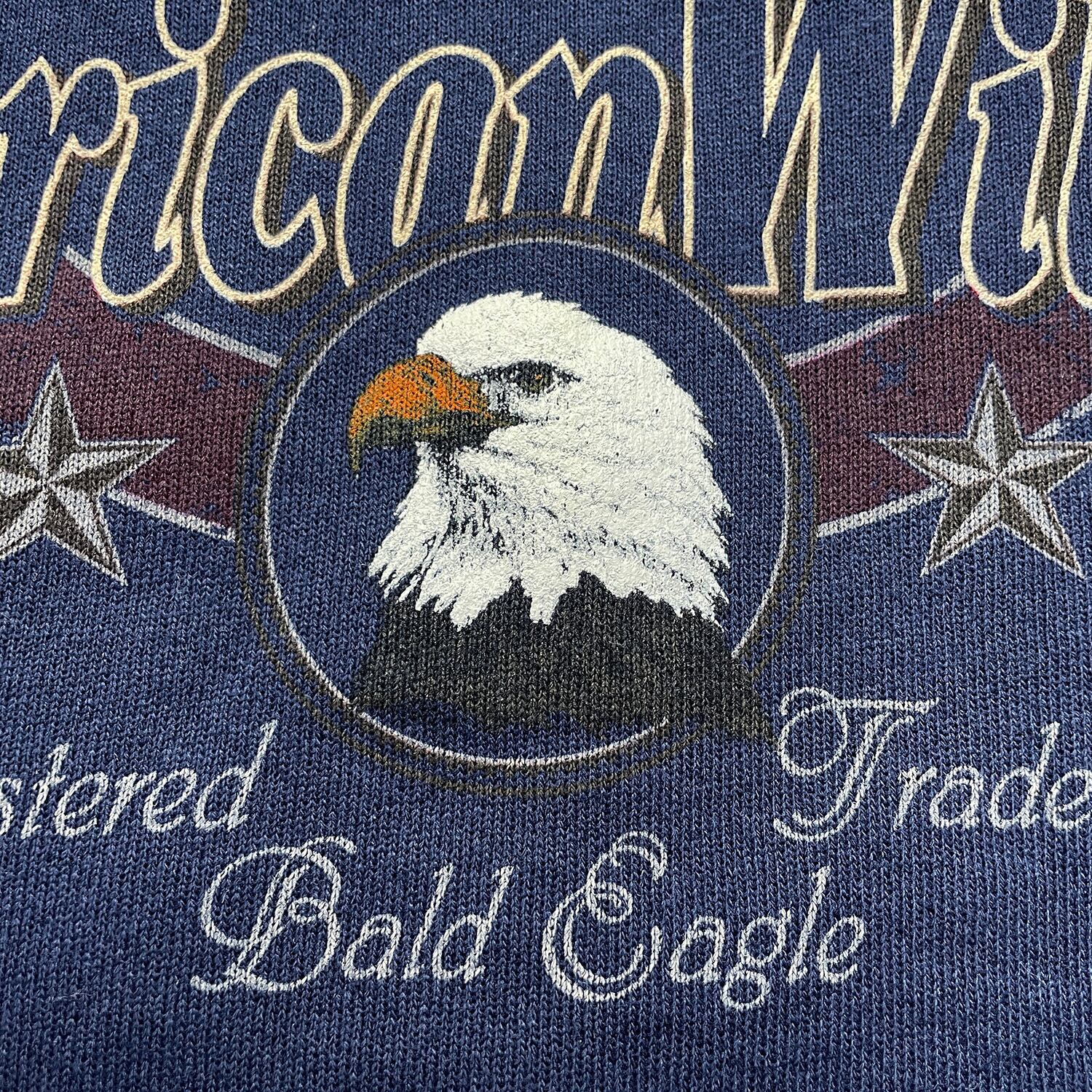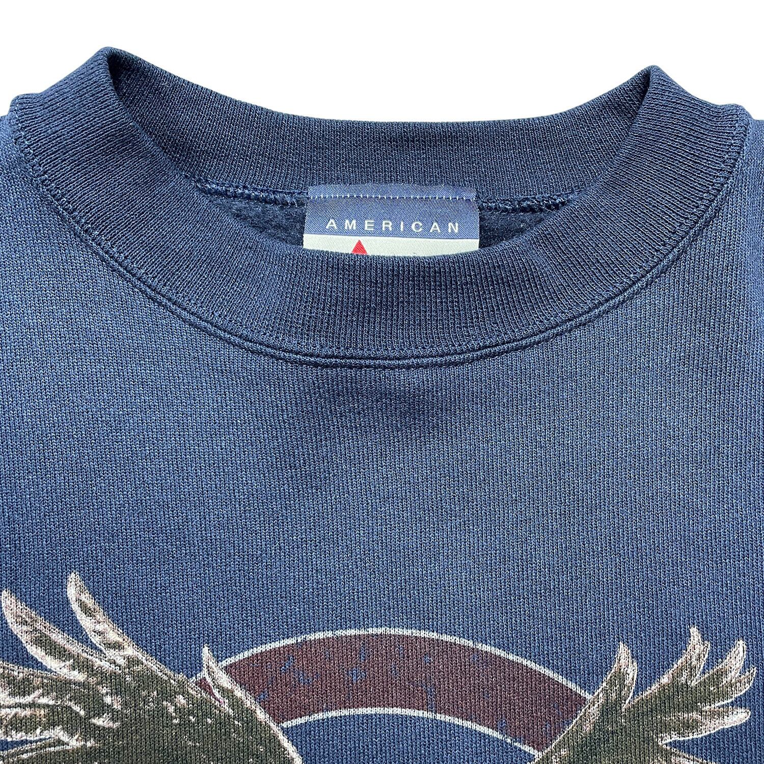 USA 古着 アメリカンワイルドライフ クルーネック スウェット トレーナー プリント ネイビー メンズL BD3380