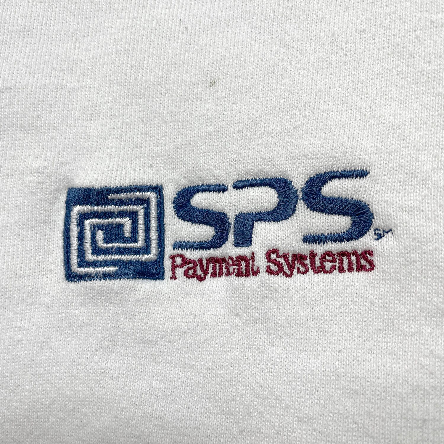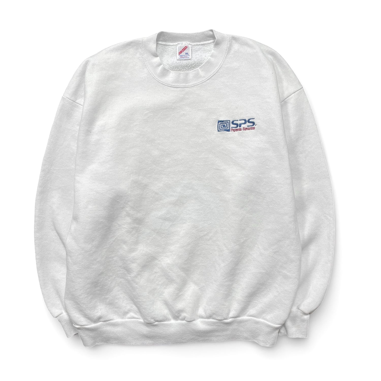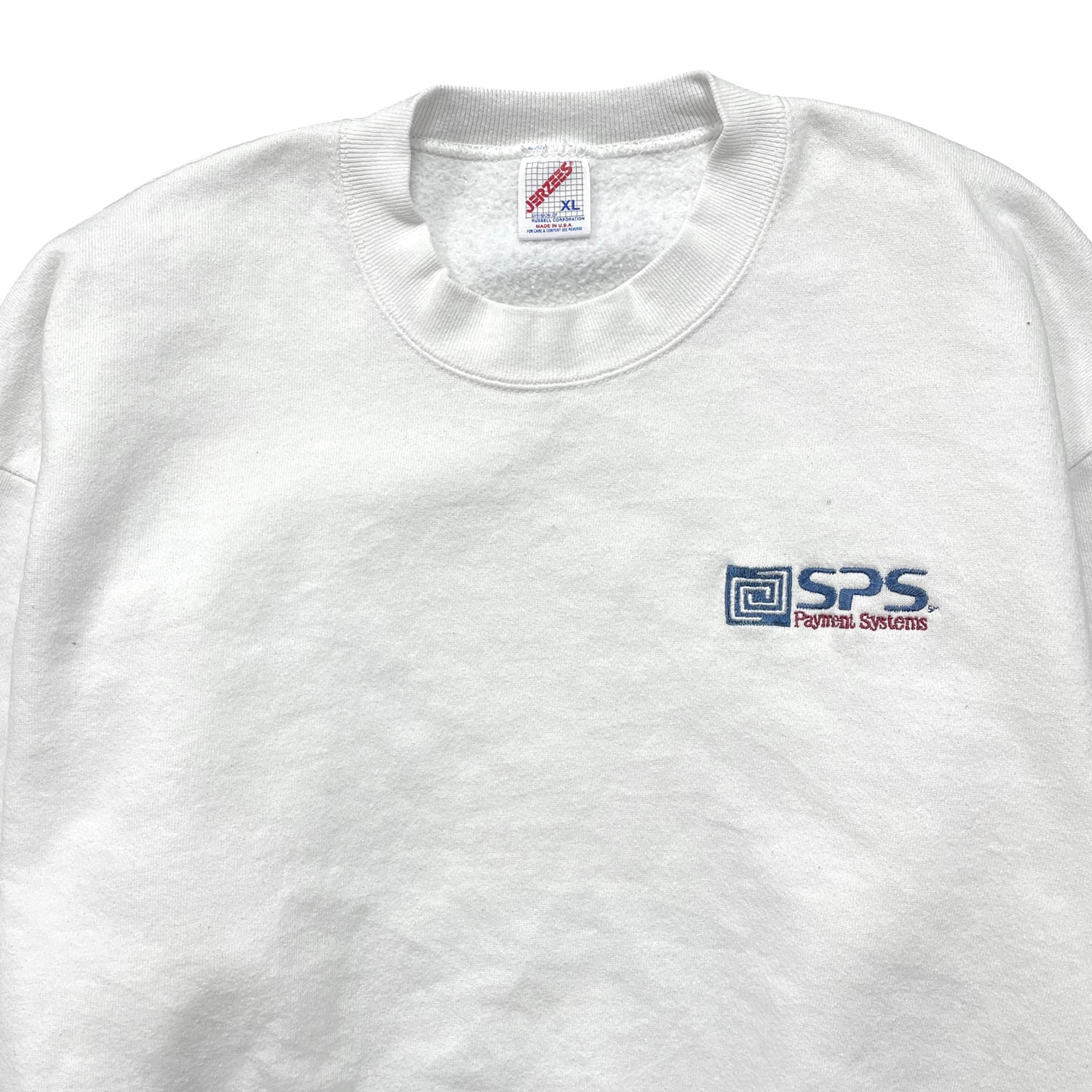 USA 古着 JERZEES 企業系 SPSペイメントシステム クルーネック スウェット トレーナー 刺繍 ロゴ ホワイト メンズXL BD3427
