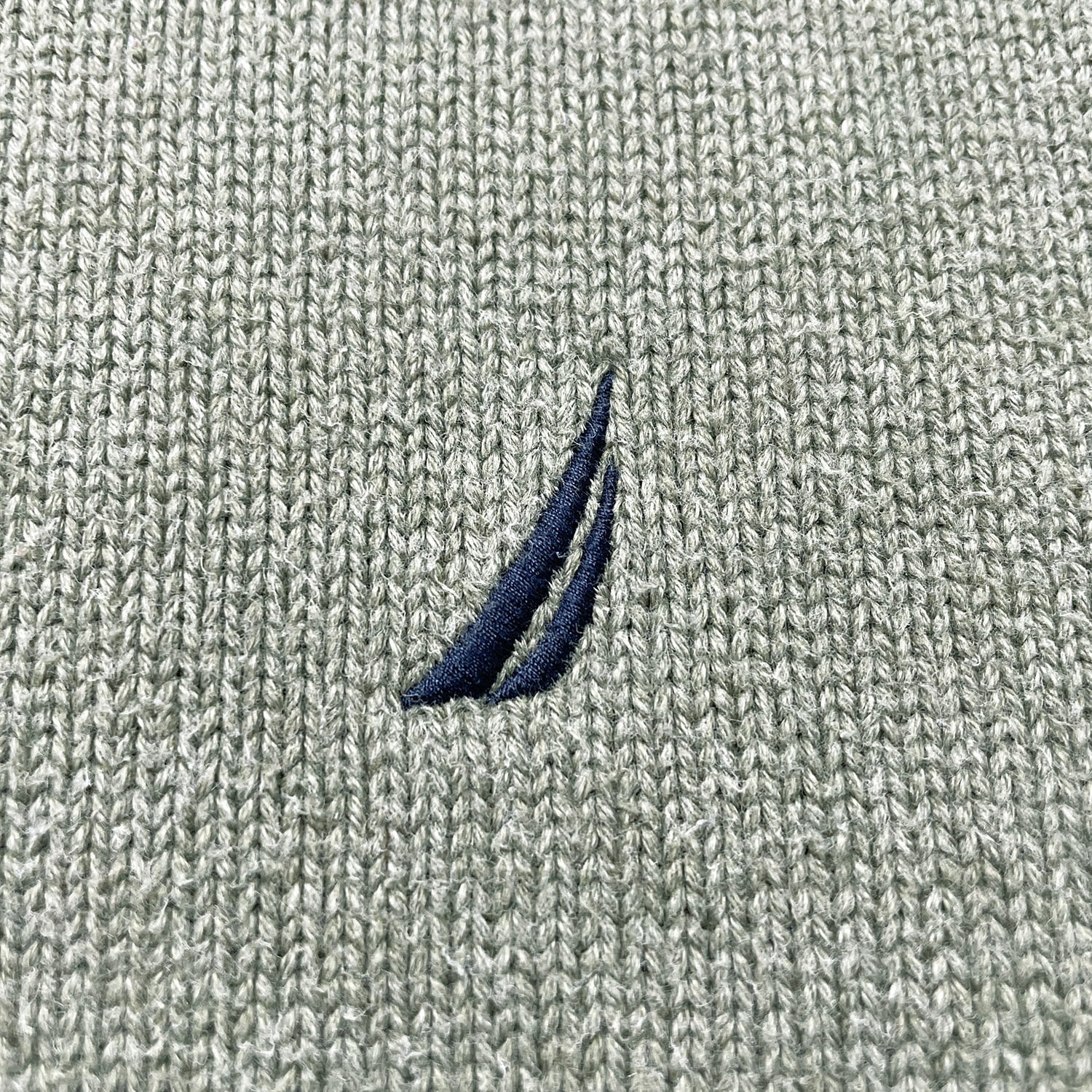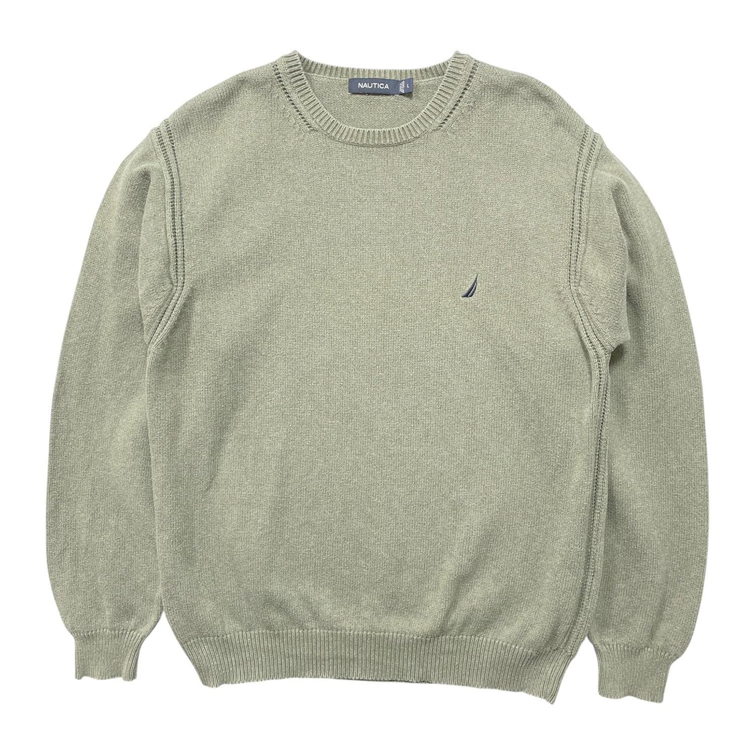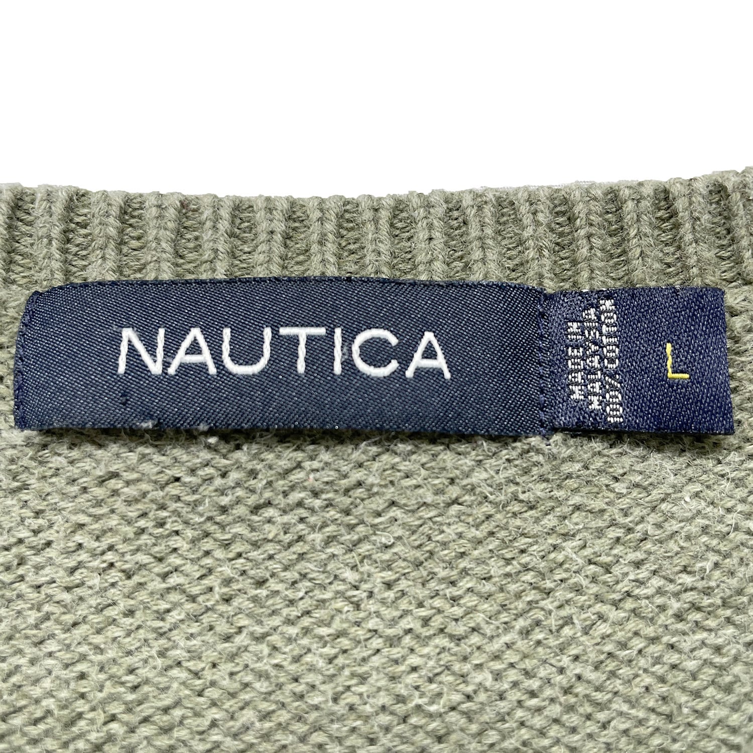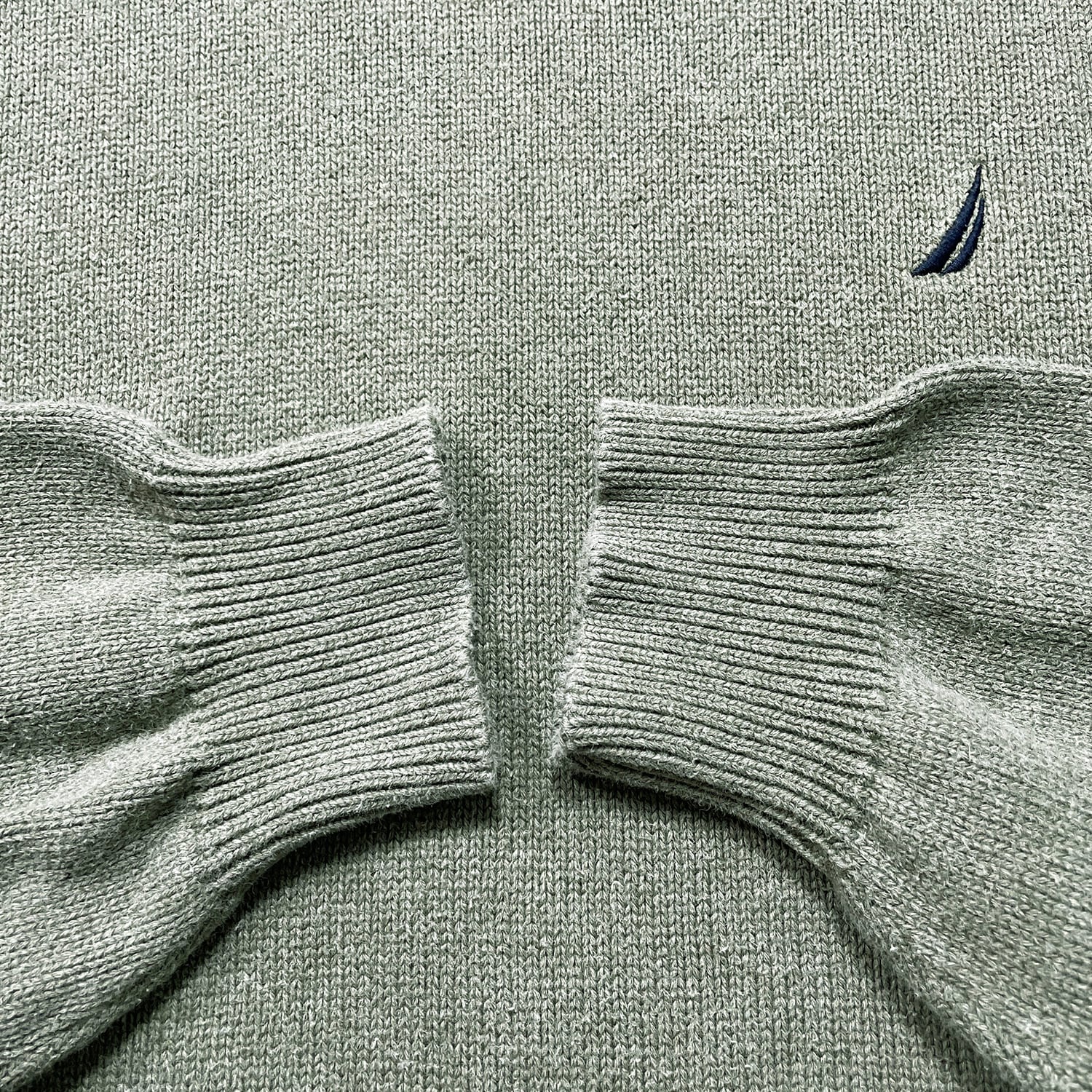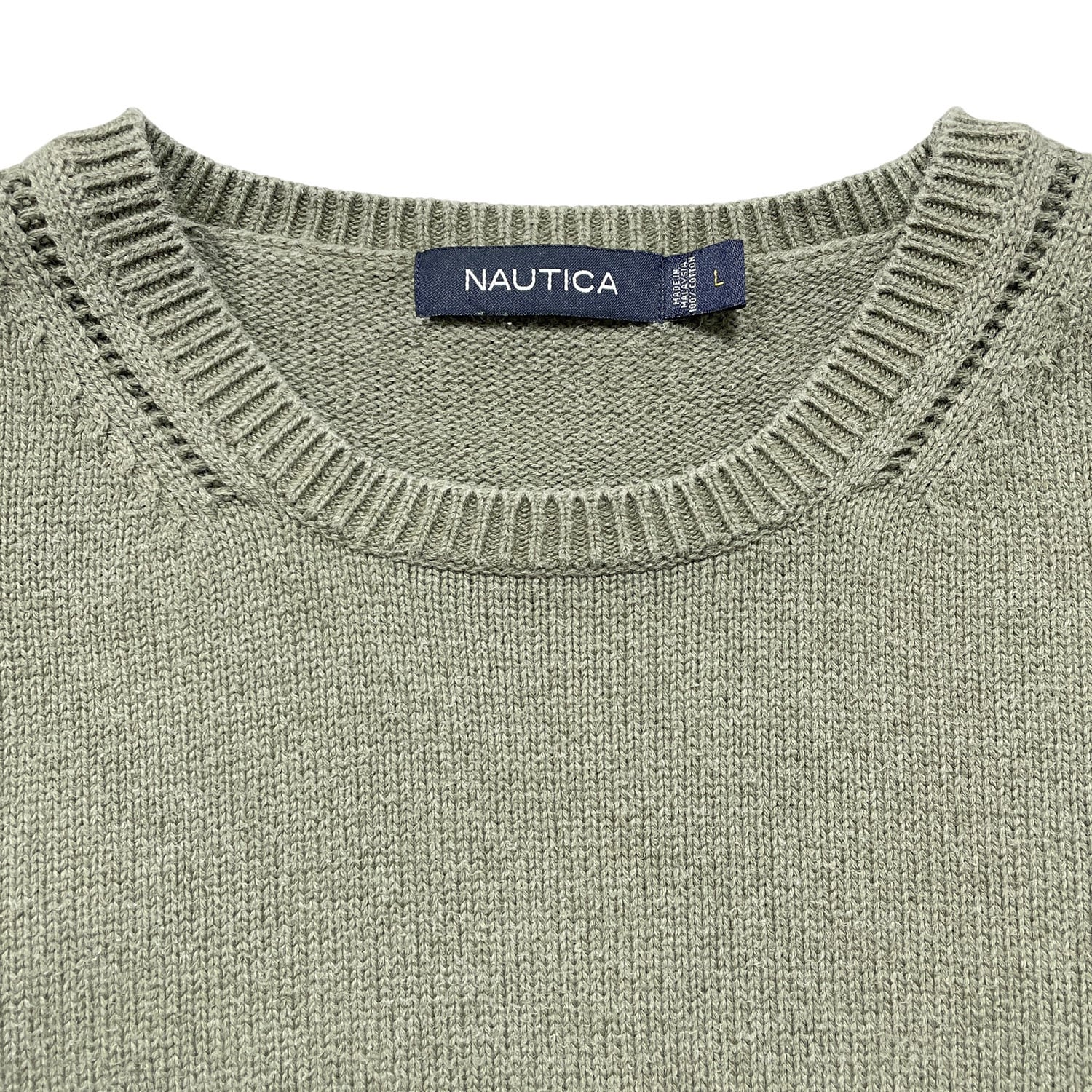 USA 古着 NAUTICA ノーティカ コットン クルーネック セーター メンズL 薄オリーブ系 BJ1041