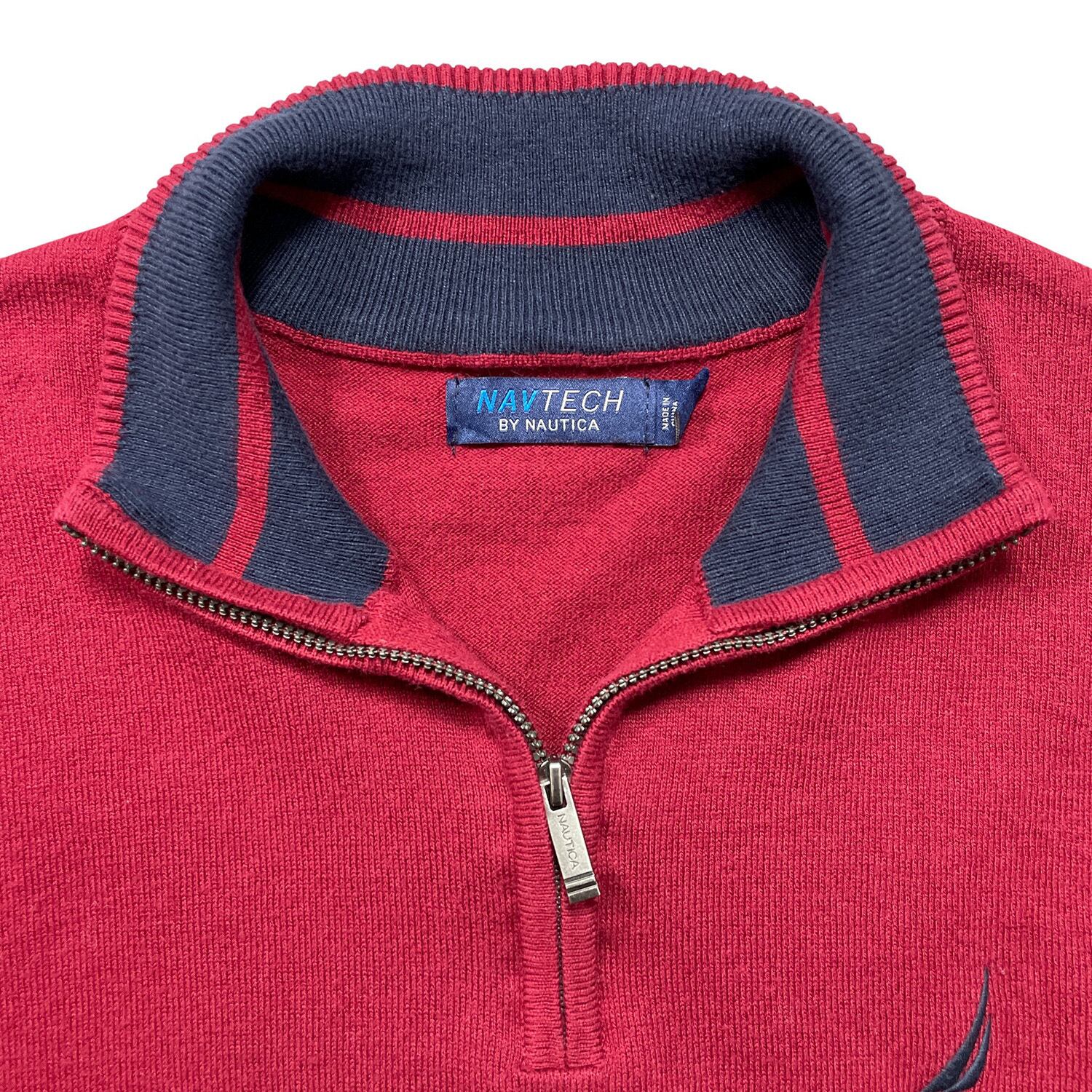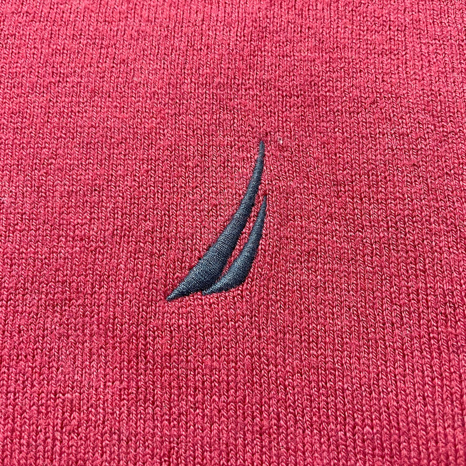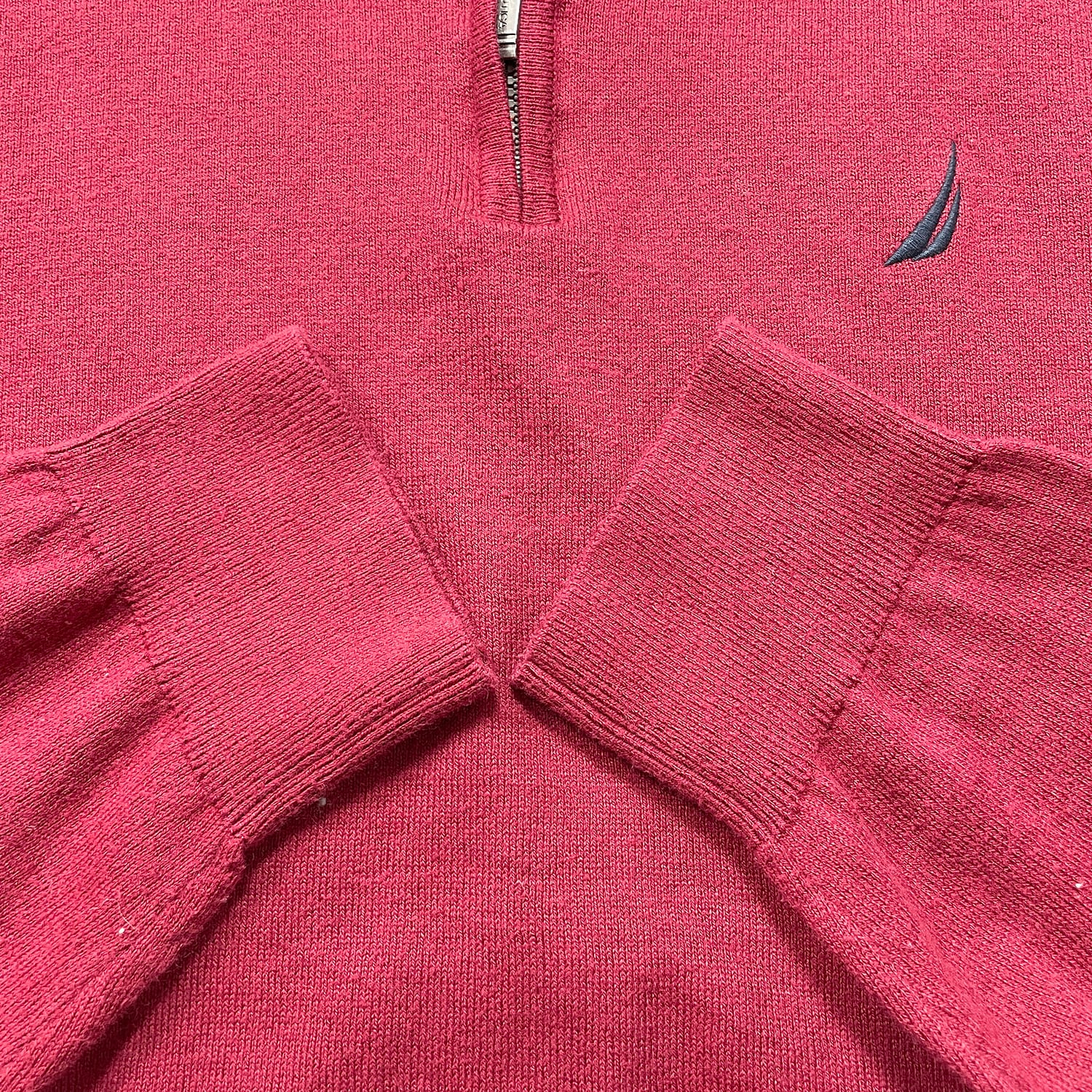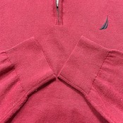 USA 古着 NAUTICA ノーティカ コットン/ポリエステル ハーフジップ セーター 薄手 メンズL マルーン BJ1043