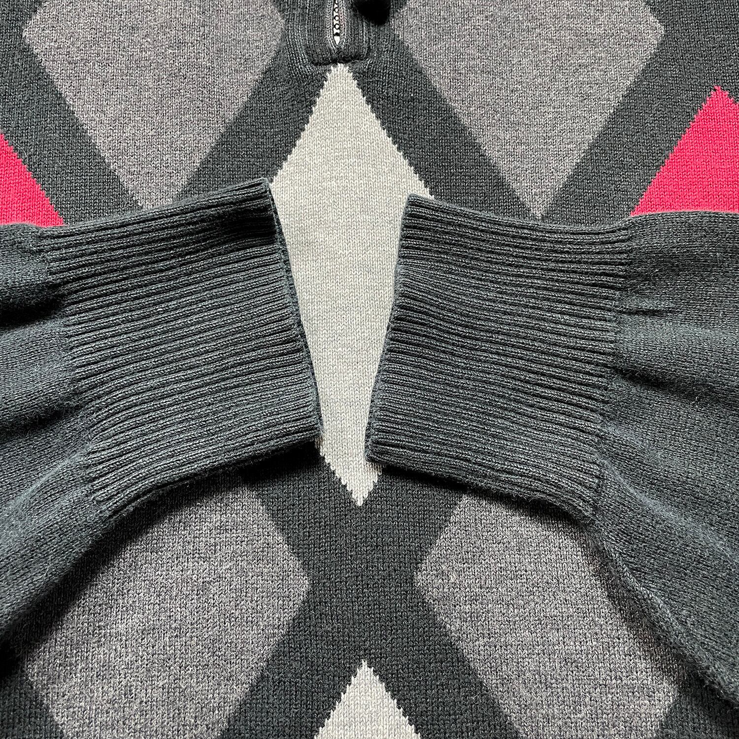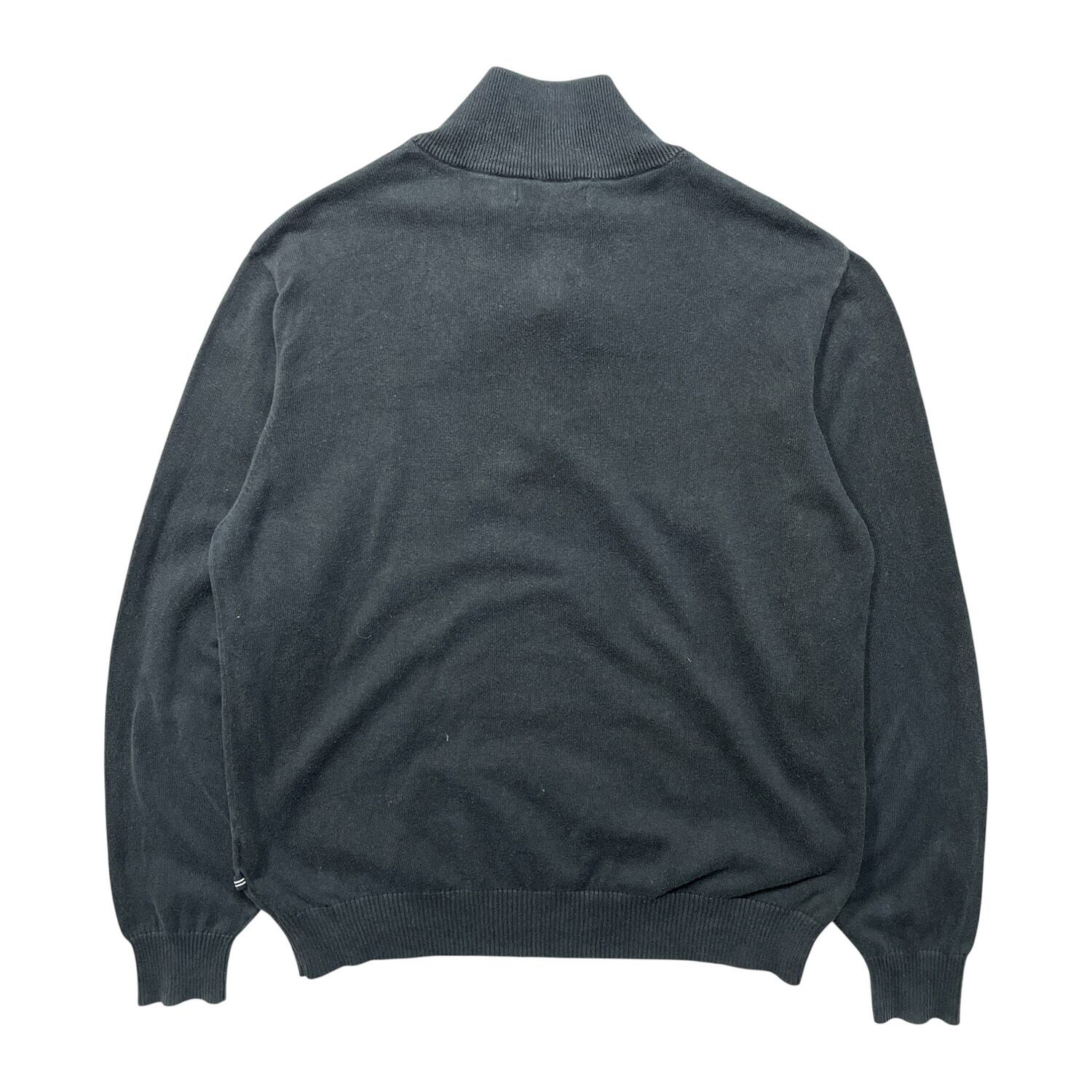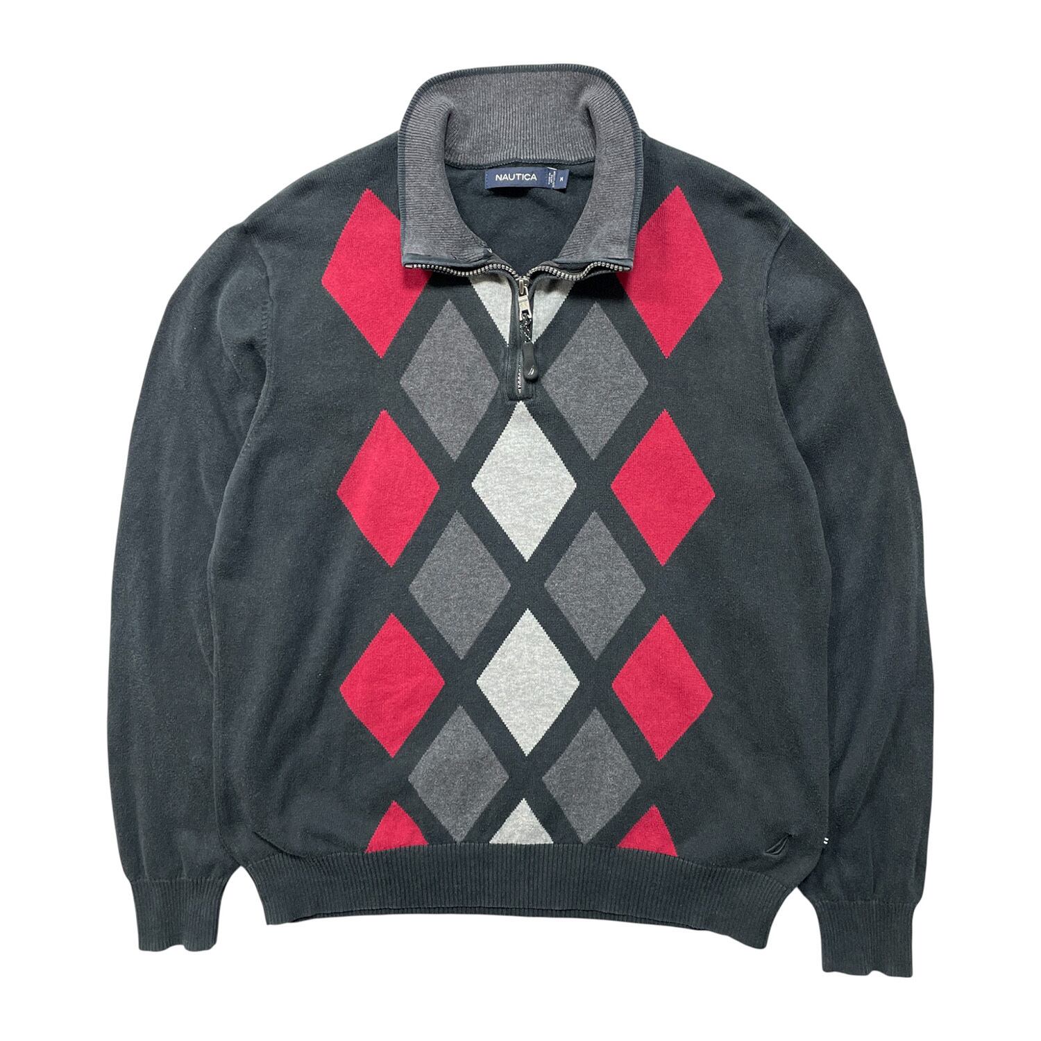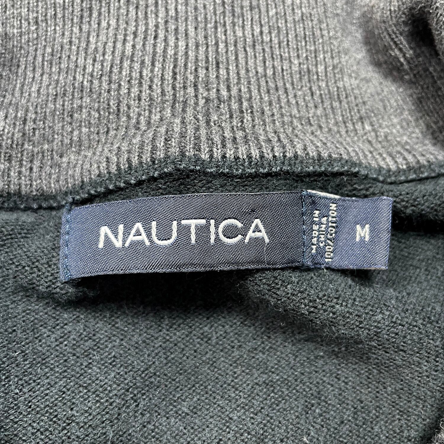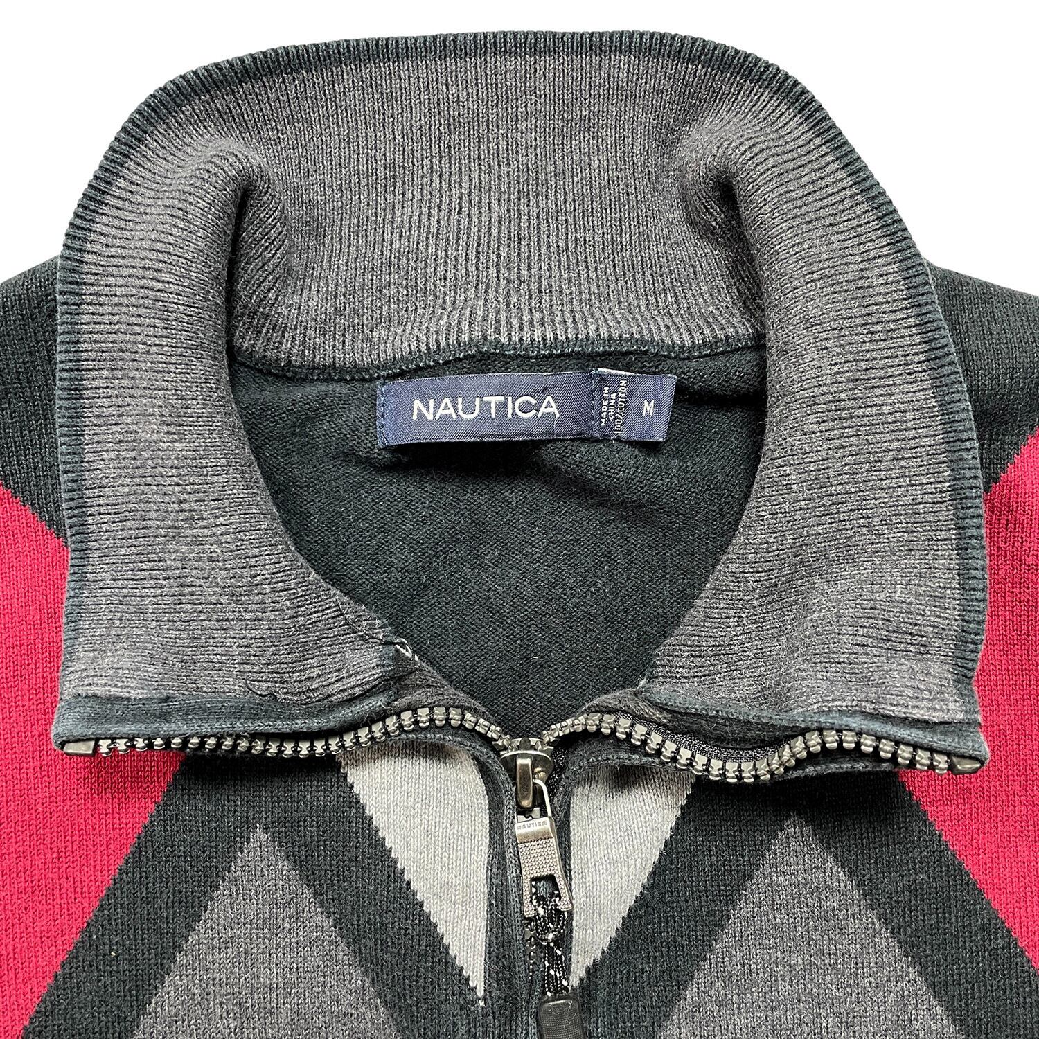 USA 古着 NAUTICA ノーティカ コットン ハーフジップ セーター 薄手 ダイヤ柄 メンズM ブラック 黒色 BJ1044