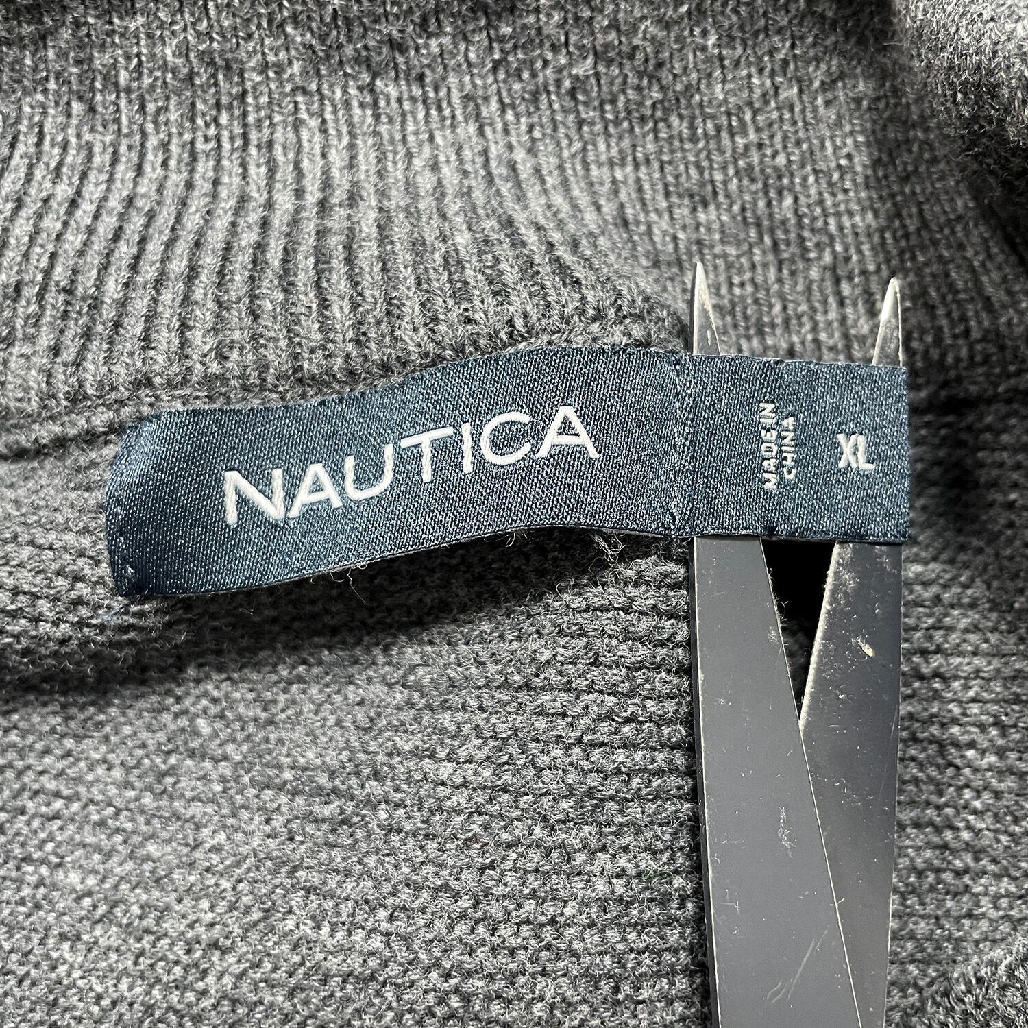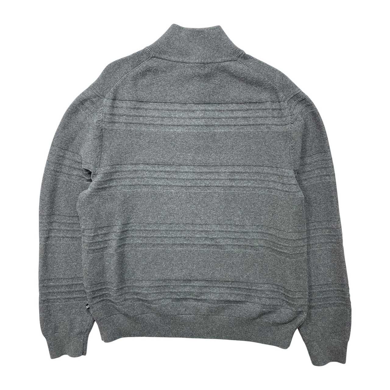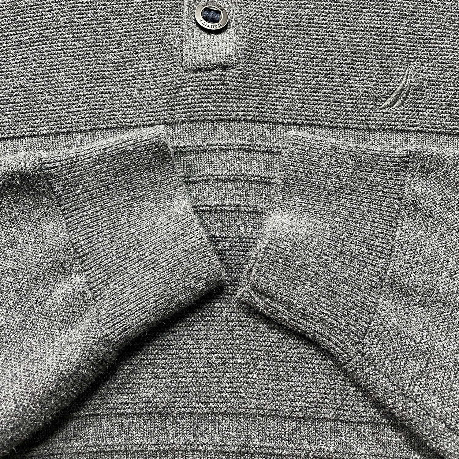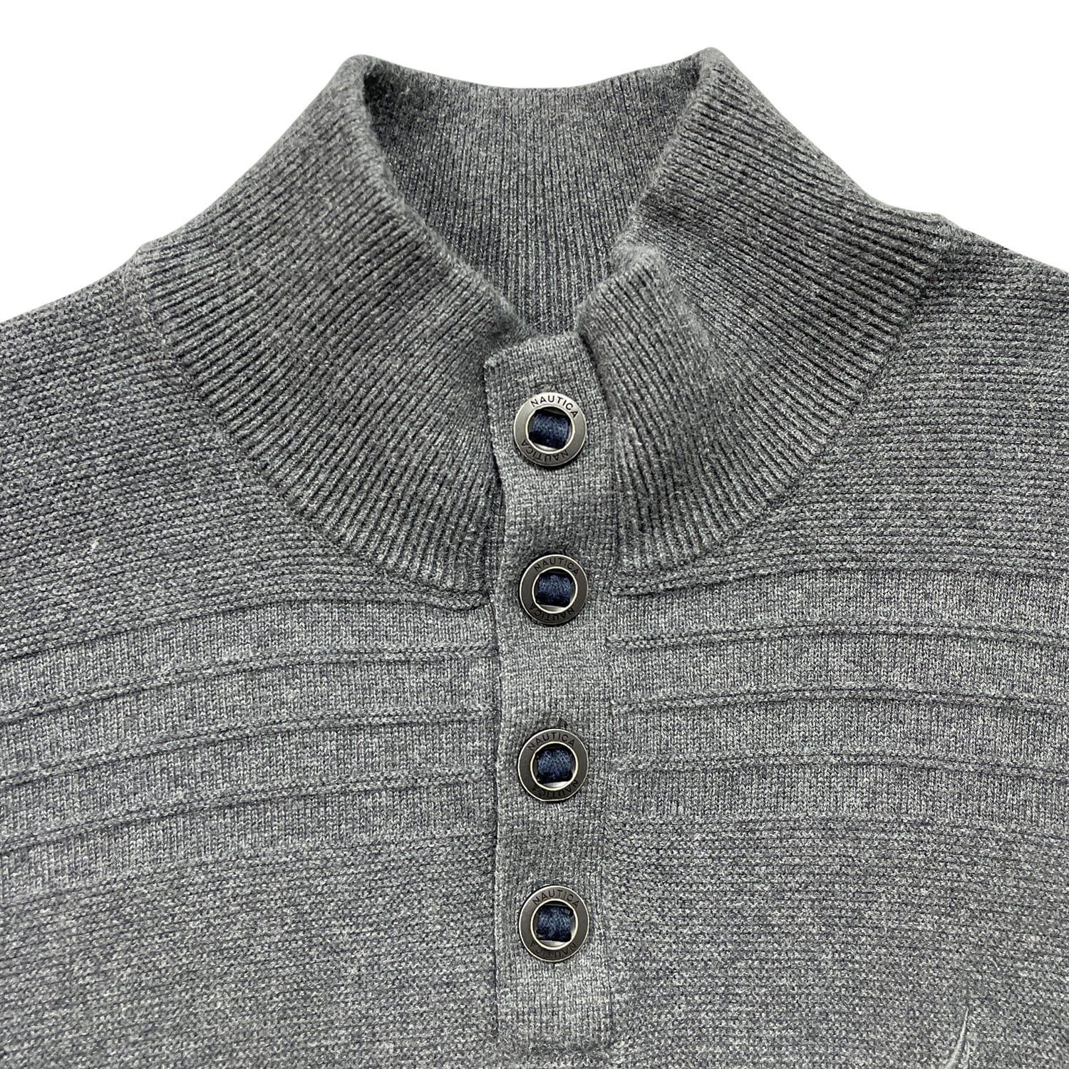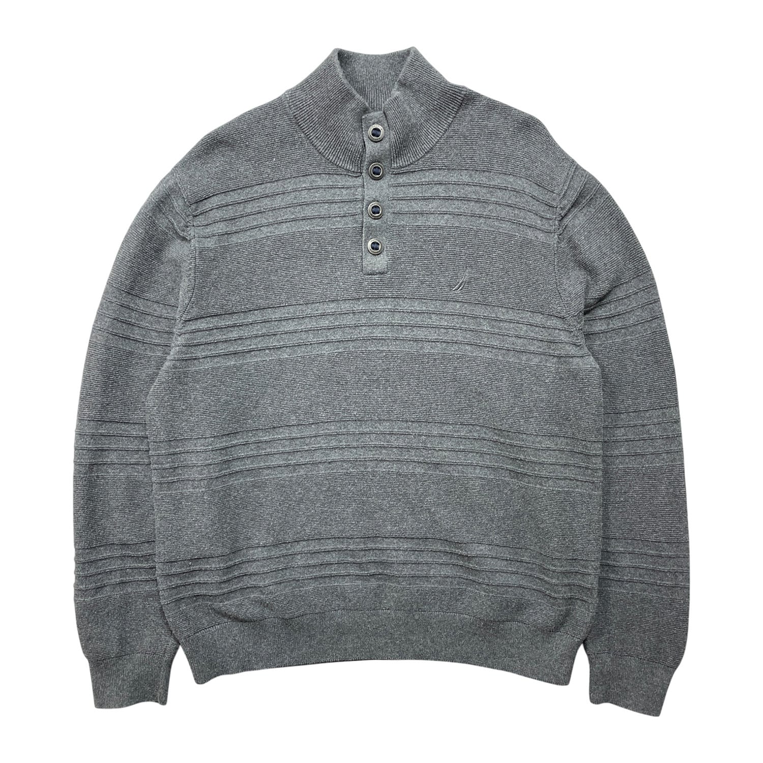 USA 古着 NAUTICA ノーティカ コットン ボタンネック セーター 薄手 ボーダー柄 メンズXL チャコール BJ1045