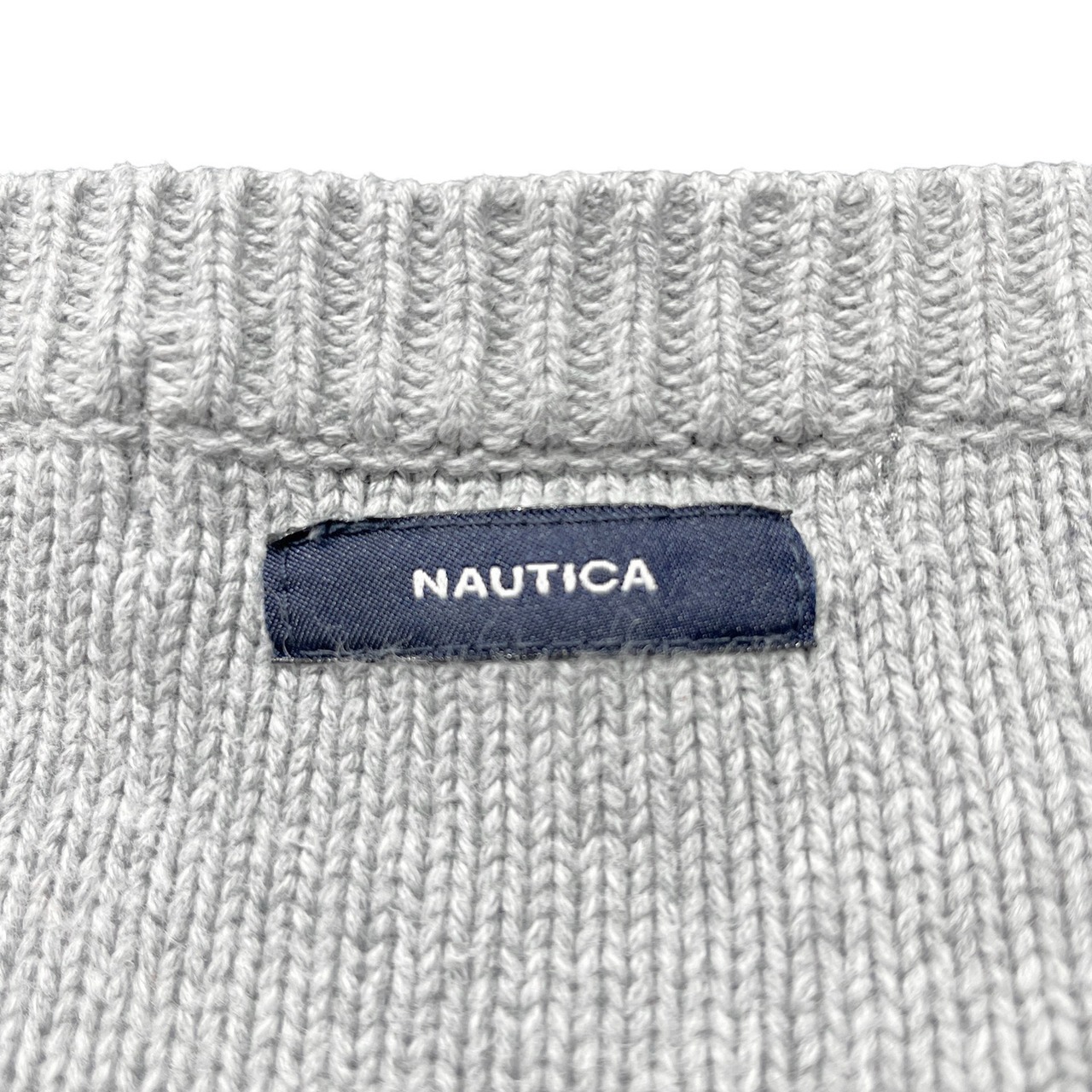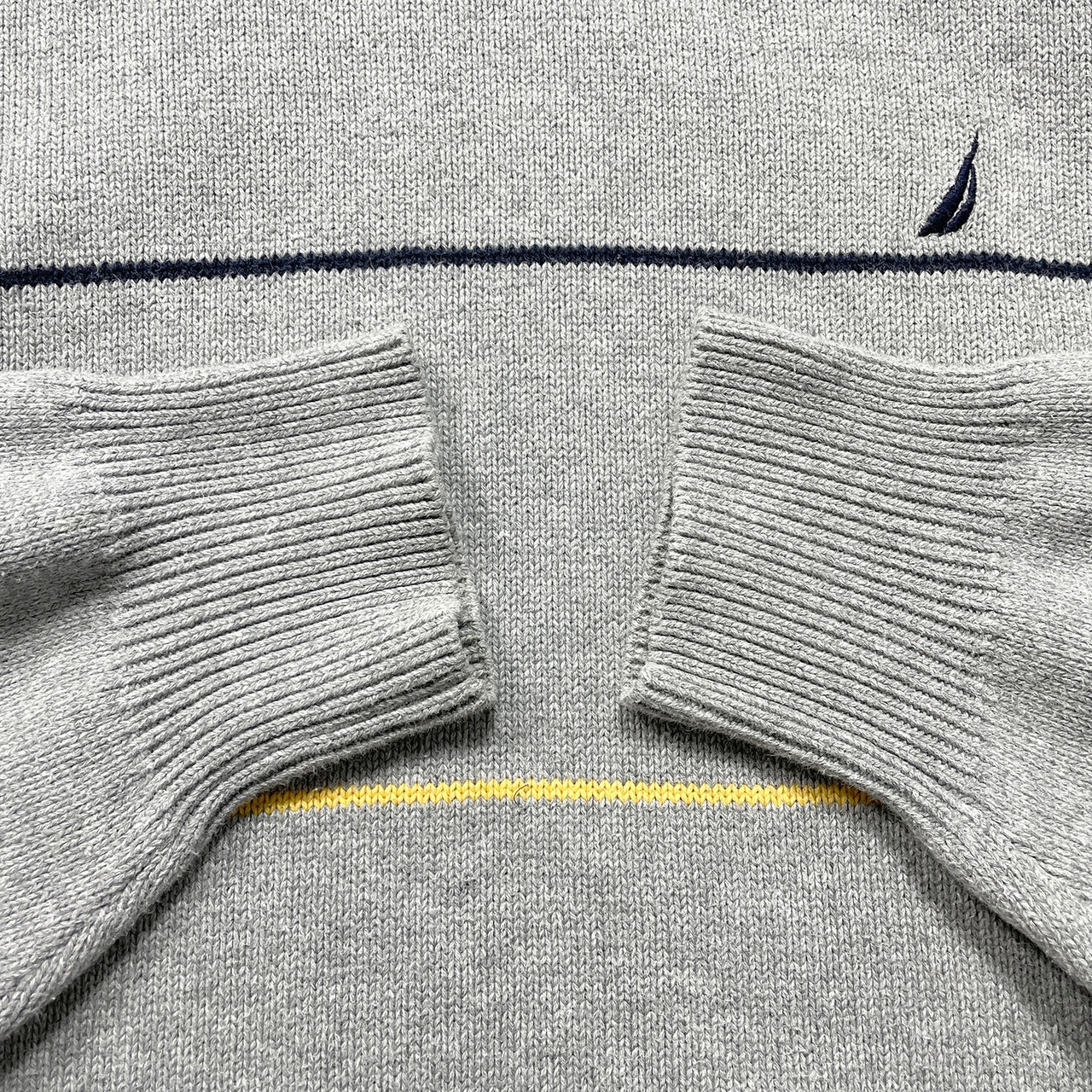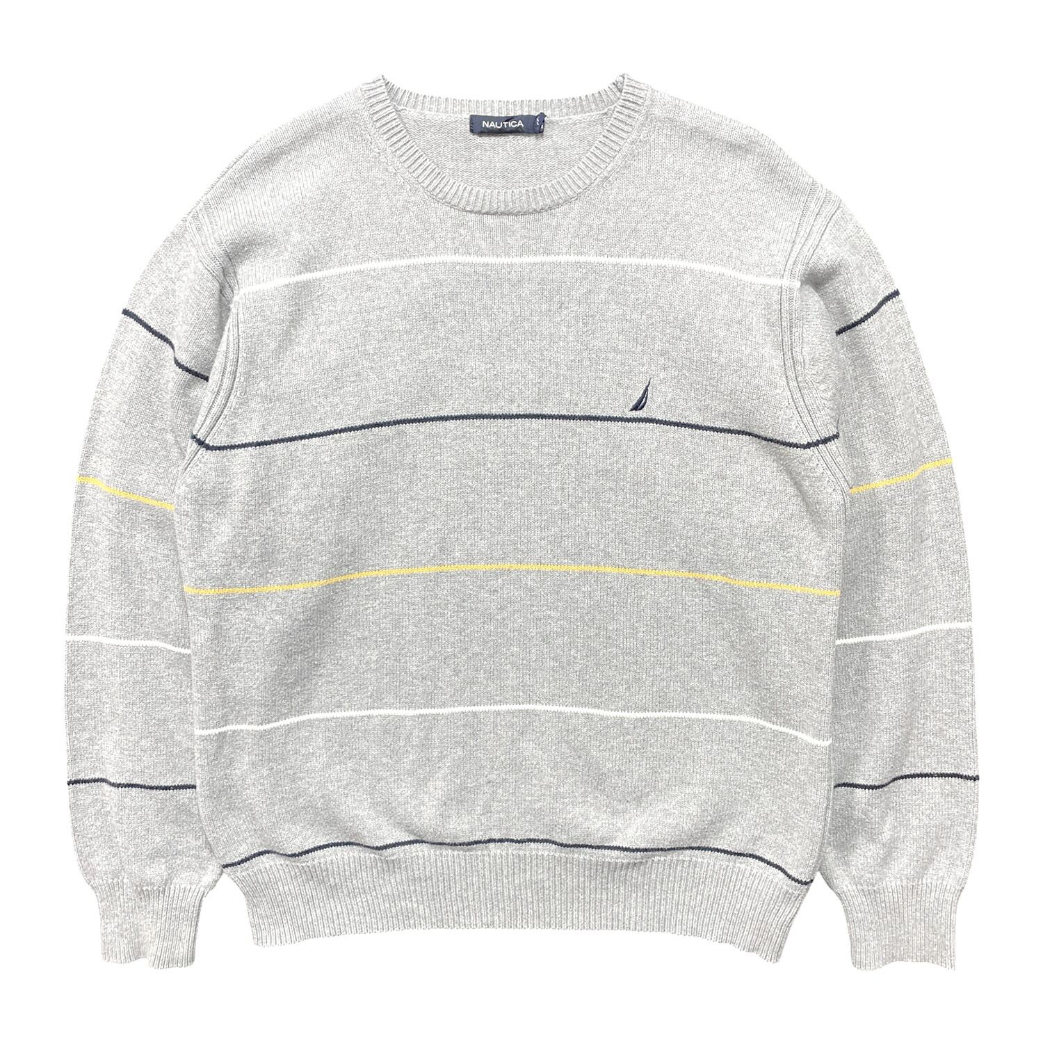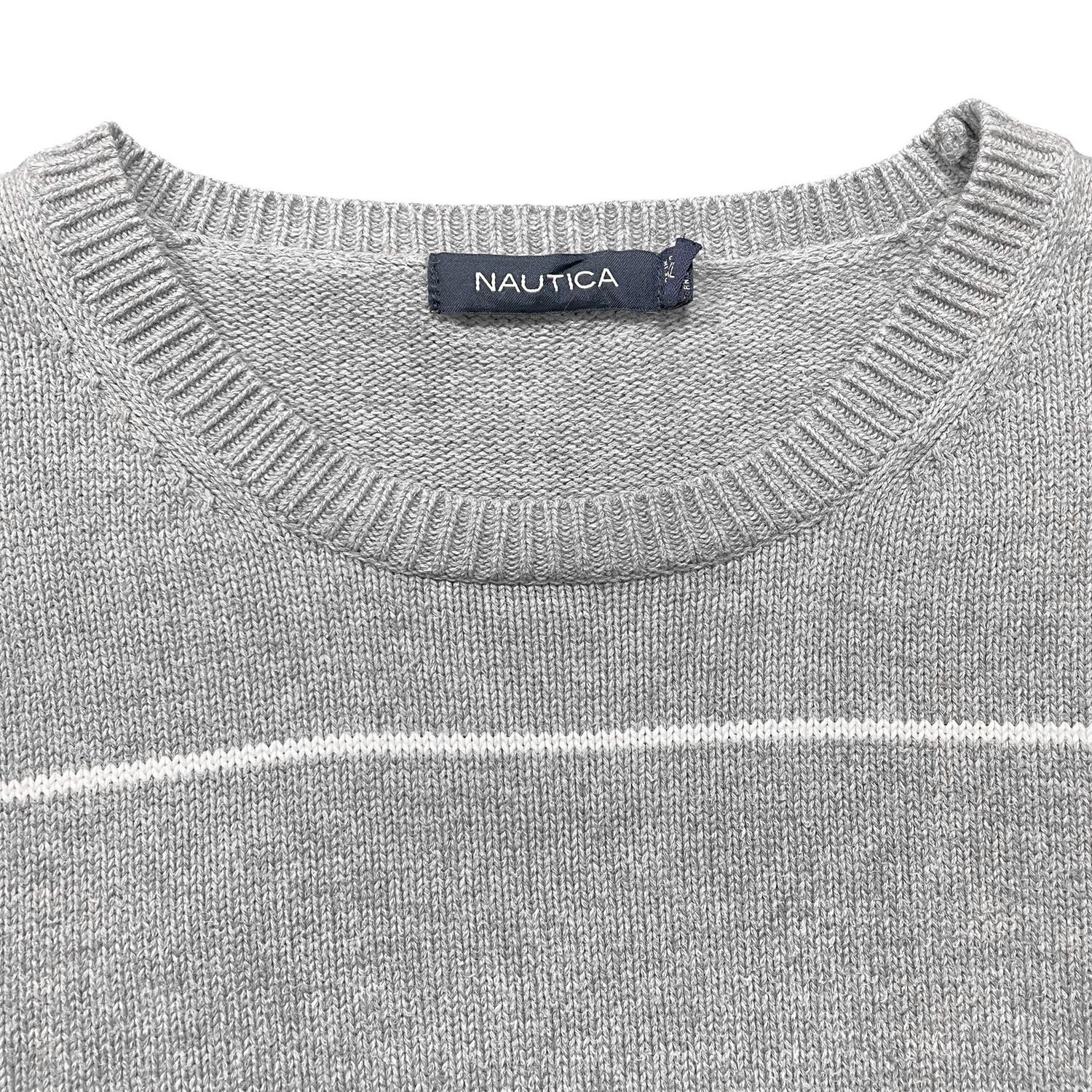 USA 古着 NAUTICA ノーティカ クルーネック ボーダー柄 セーター メンズXXL グレー BJ1047