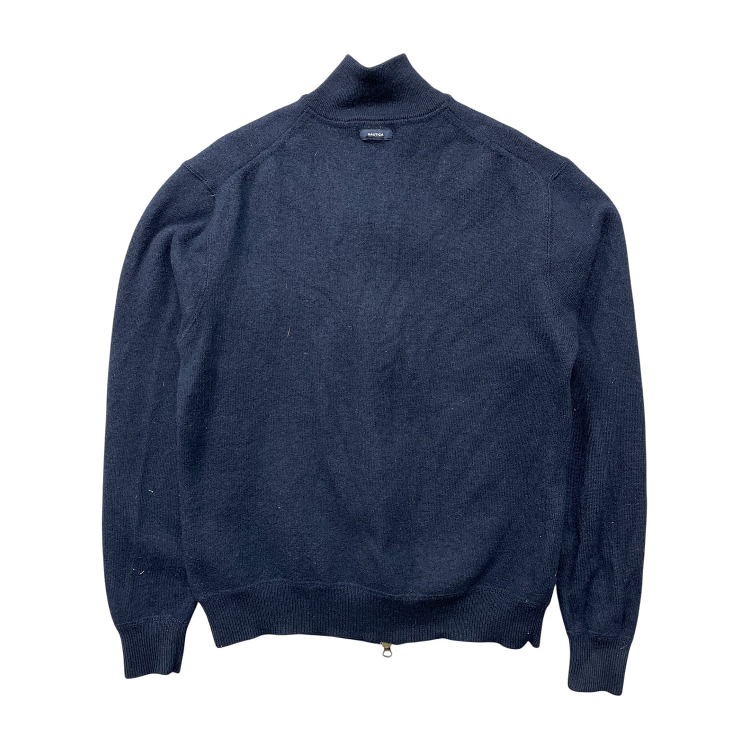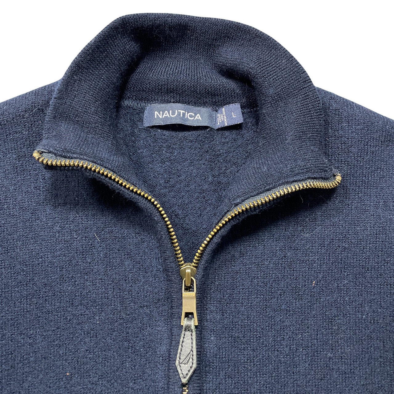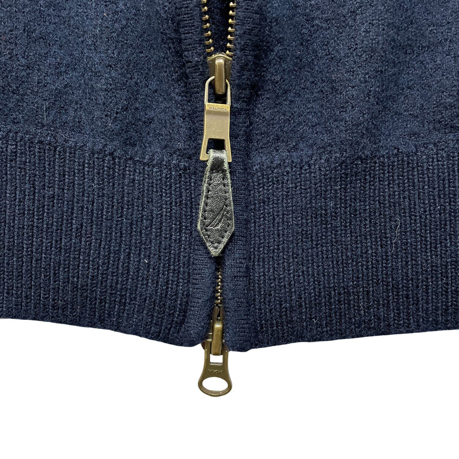 USA 古着 NAUTICA ノーティカ メリノウール フルジップ ジップアップ セーター メンズL ネイビー 紺色 BJ1048