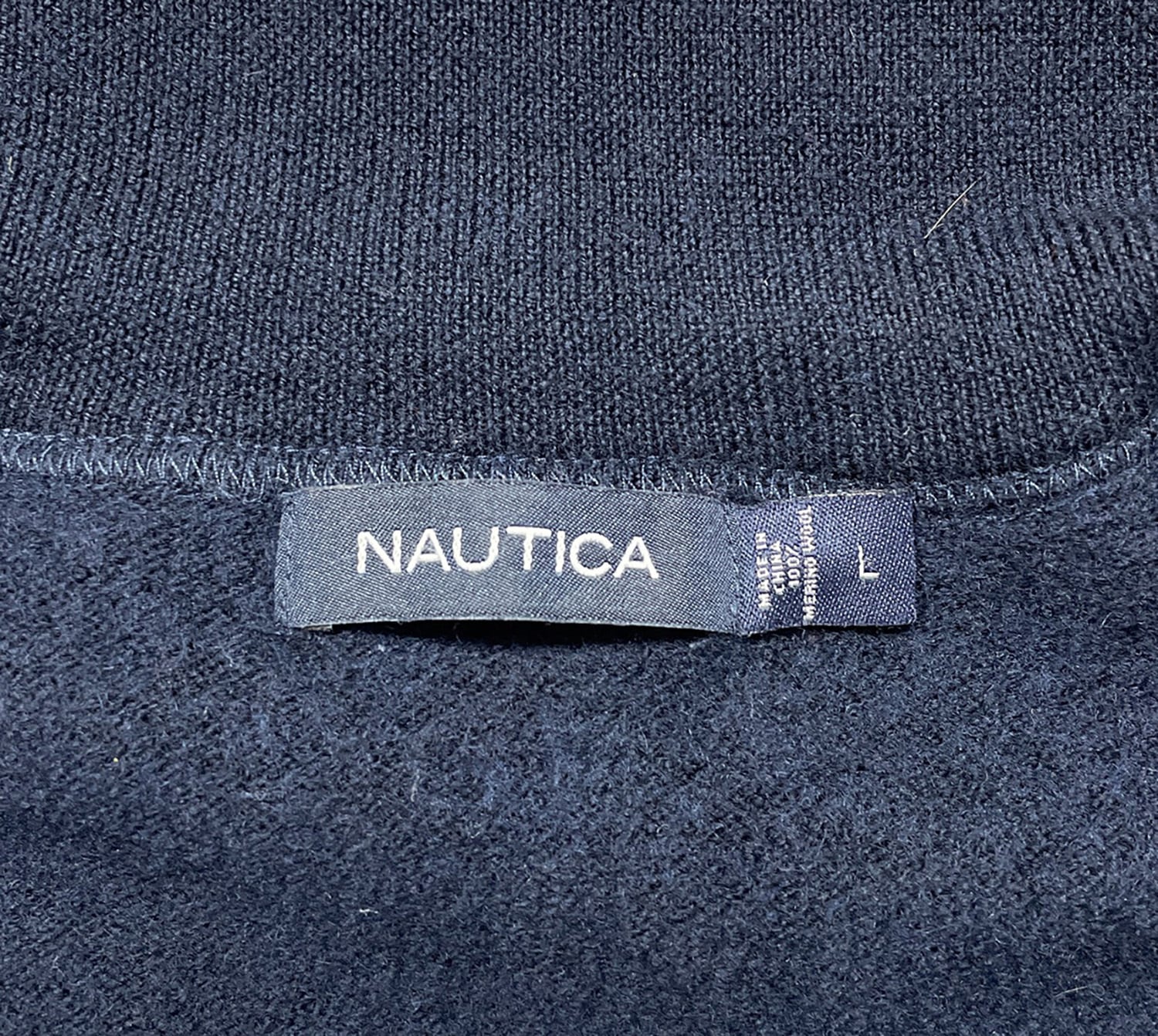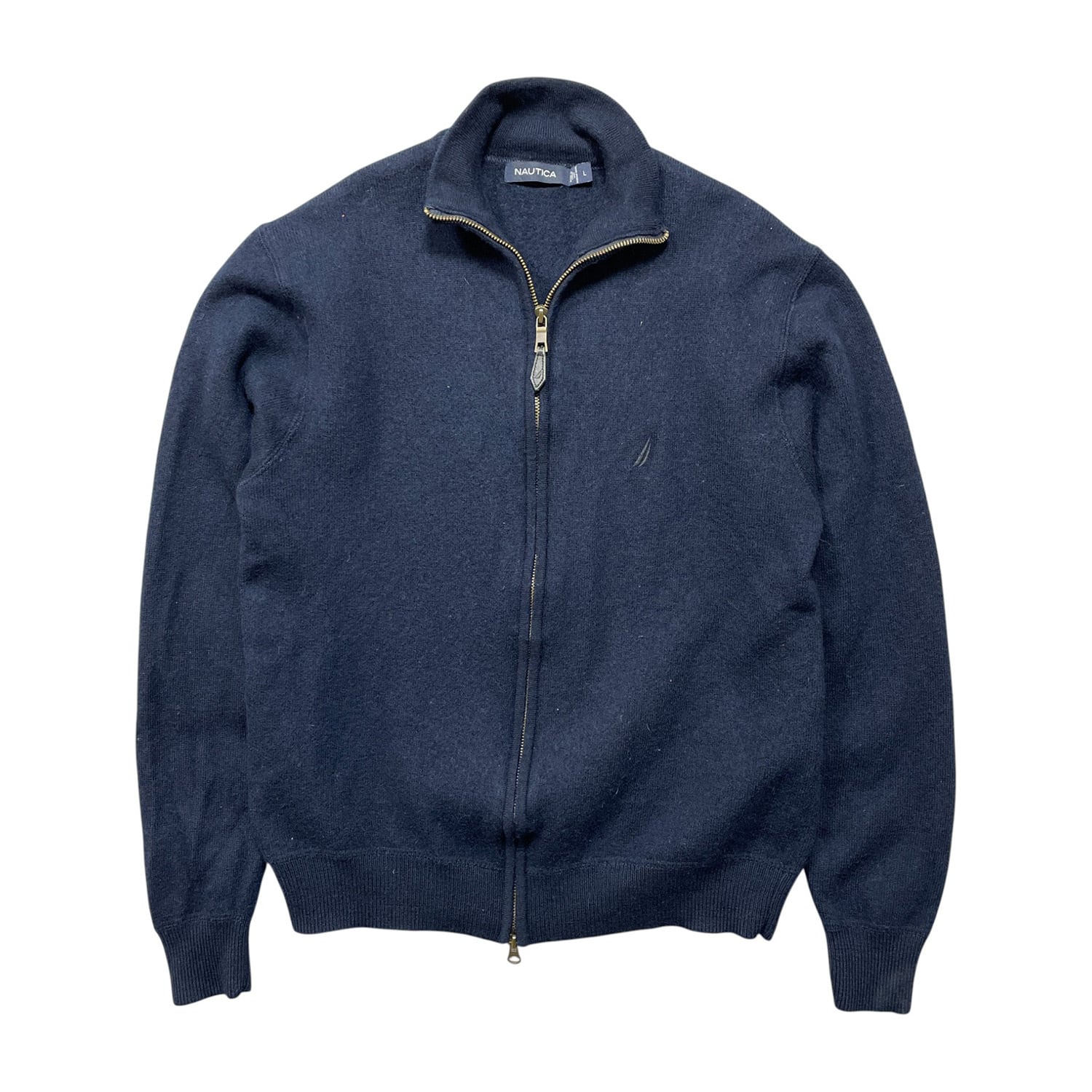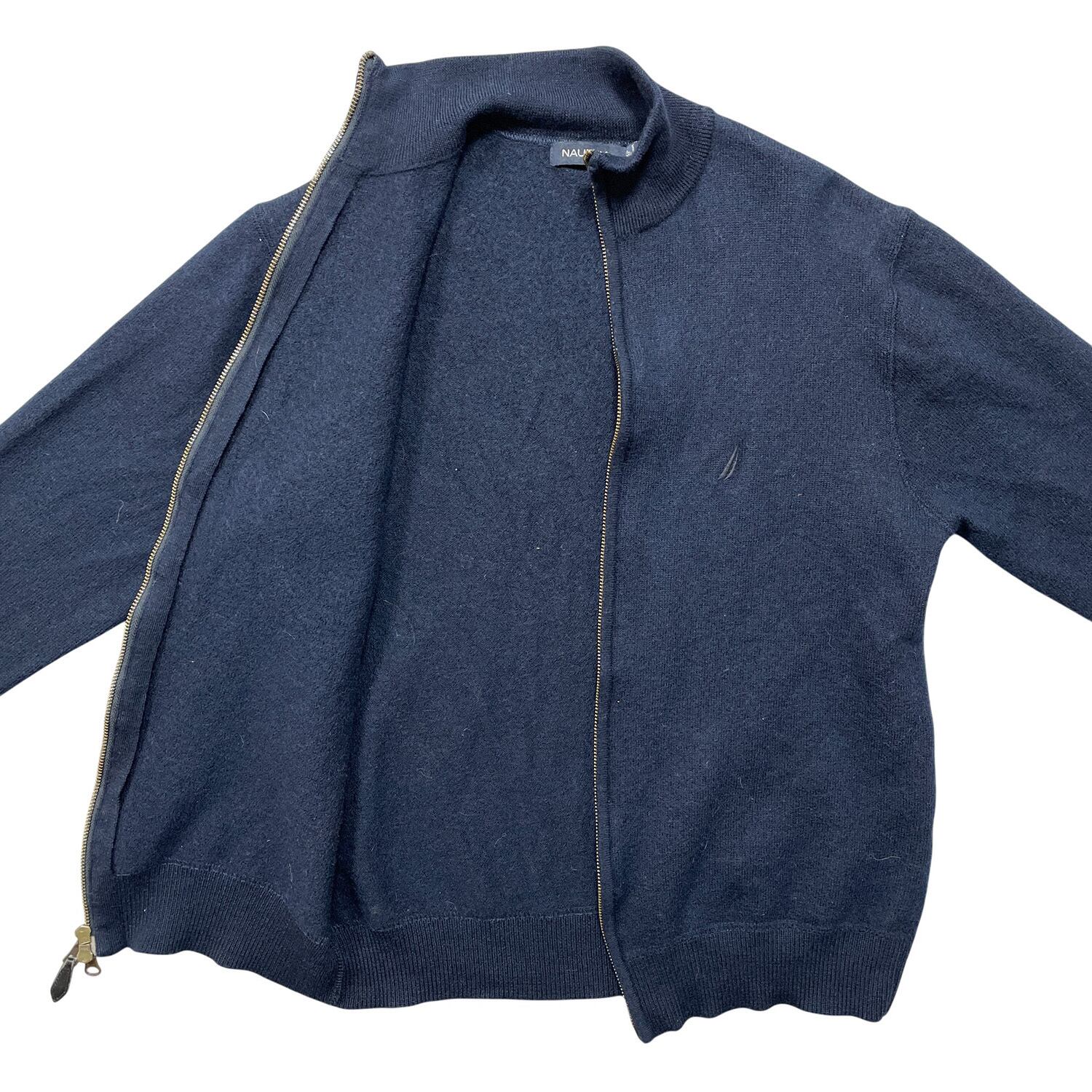 USA 古着 NAUTICA ノーティカ メリノウール フルジップ ジップアップ セーター メンズL ネイビー 紺色 BJ1048
