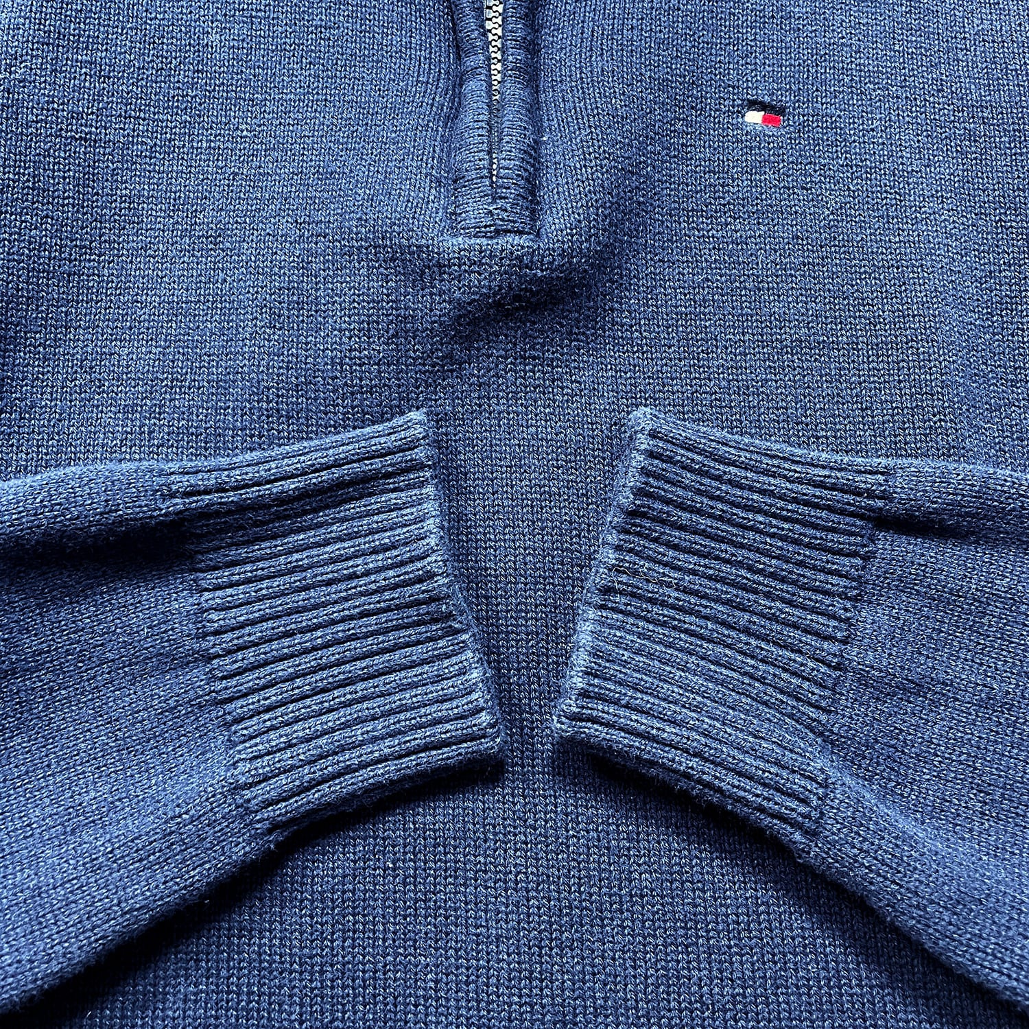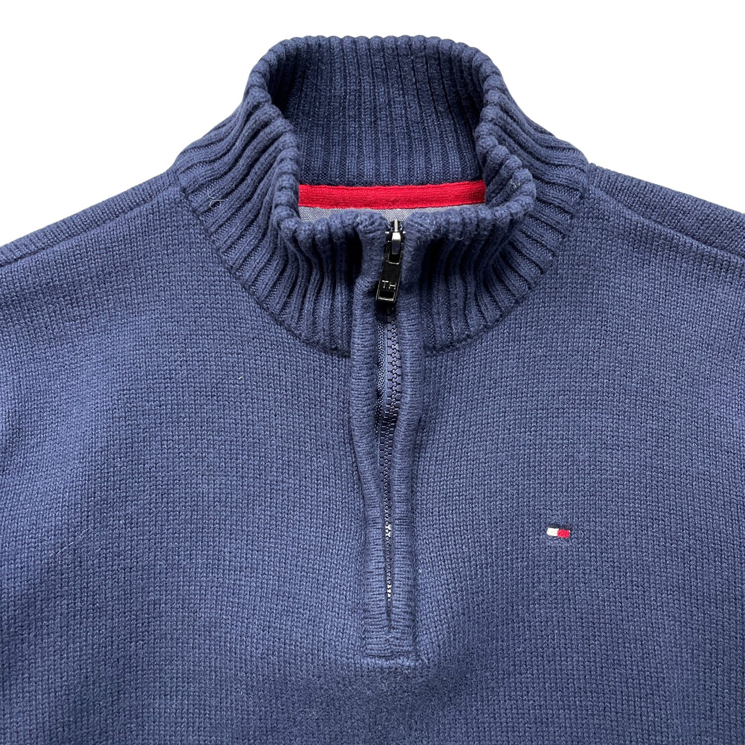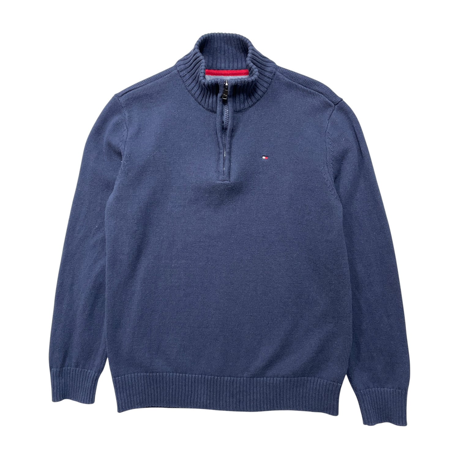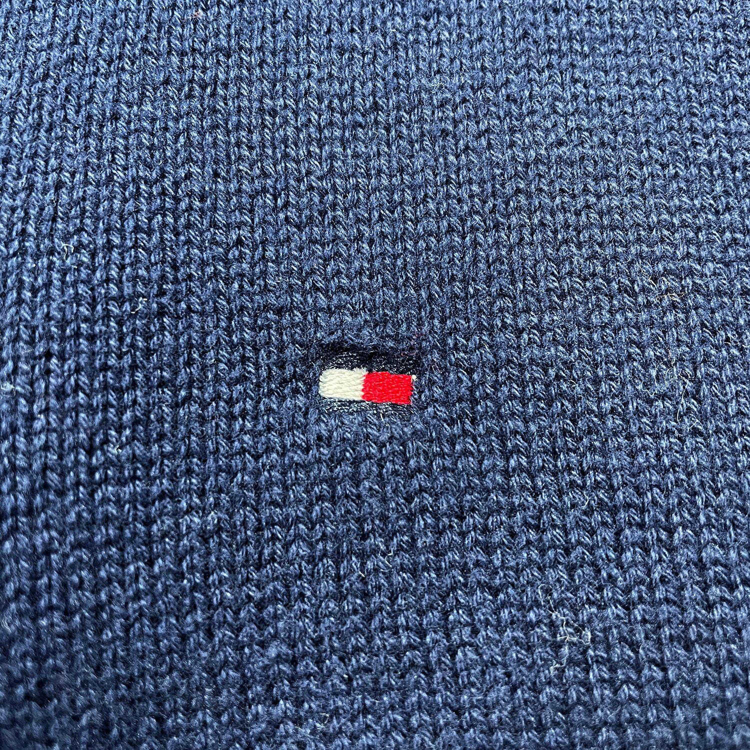 USA 古着 TOMMY HILFIGER トミーヒルフィガー コットン ハーフジップ セーター メンズXS相当 ネイビー BJ1058