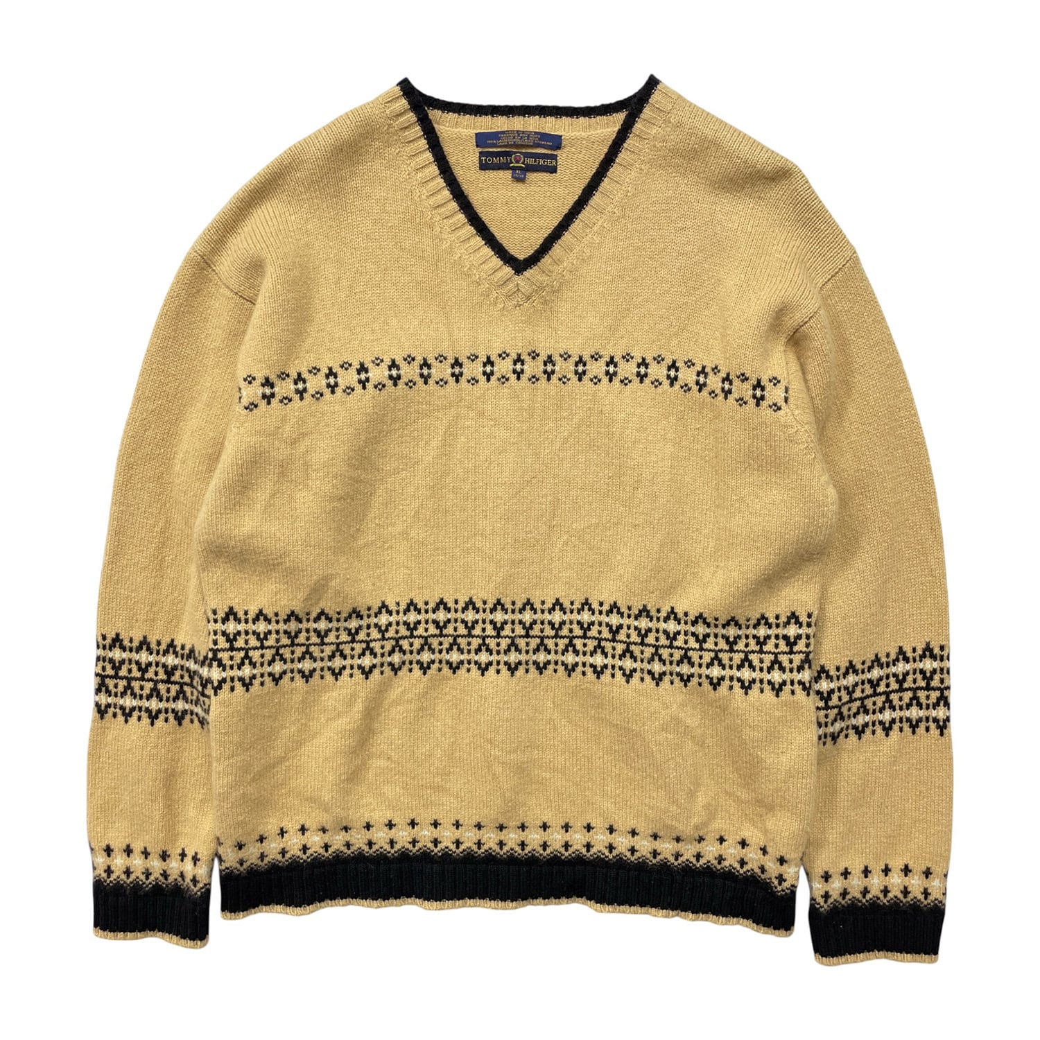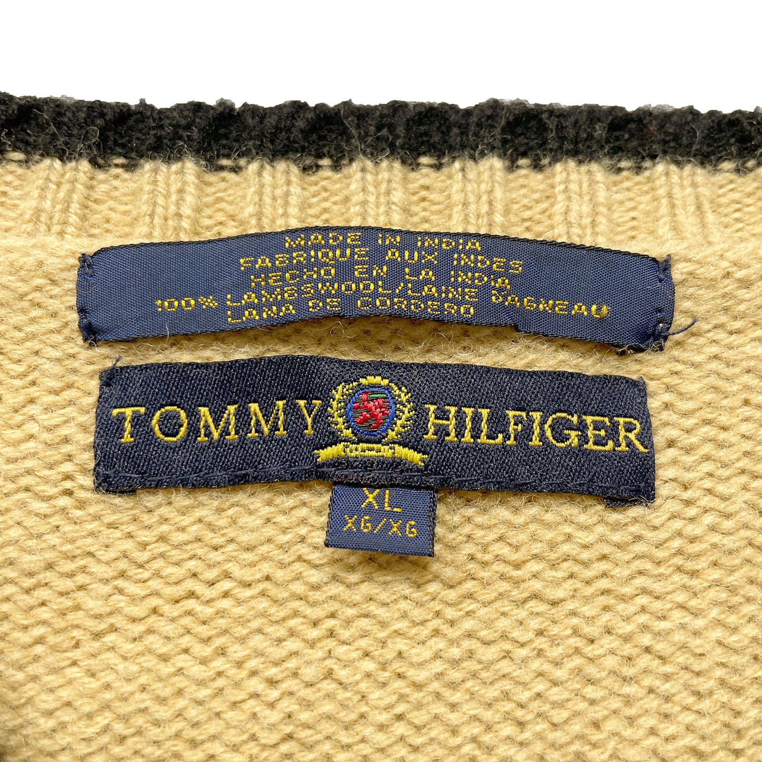 USA 古着 TOMMY HILFIGER 90S トミーヒルフィガー ラムウール Vネック セーター メンズXL ベージュ フェアアイル BJ1059
