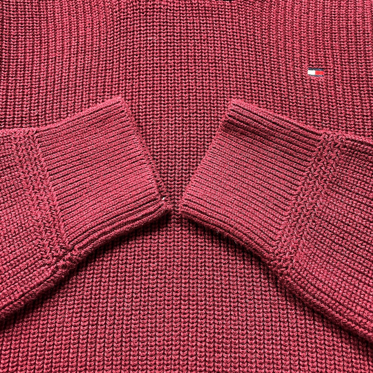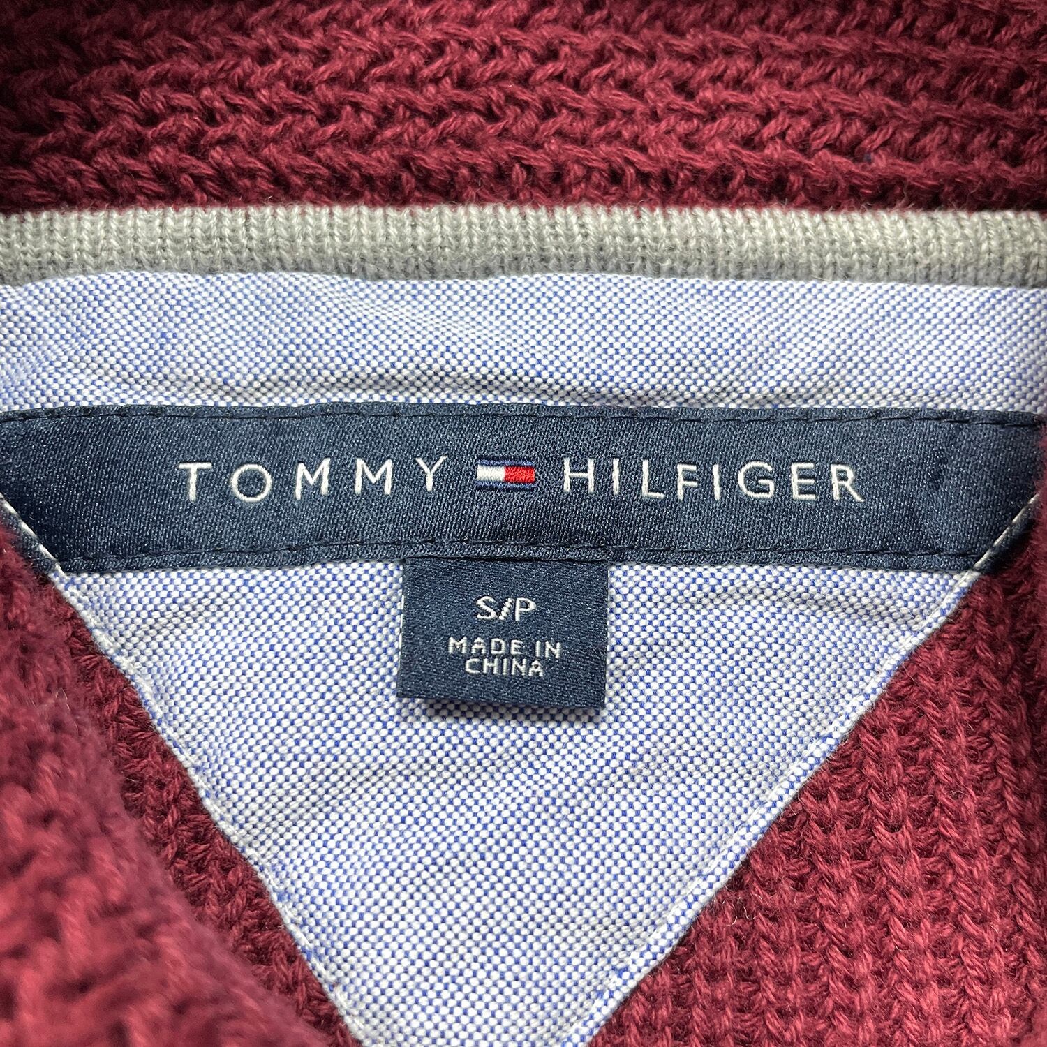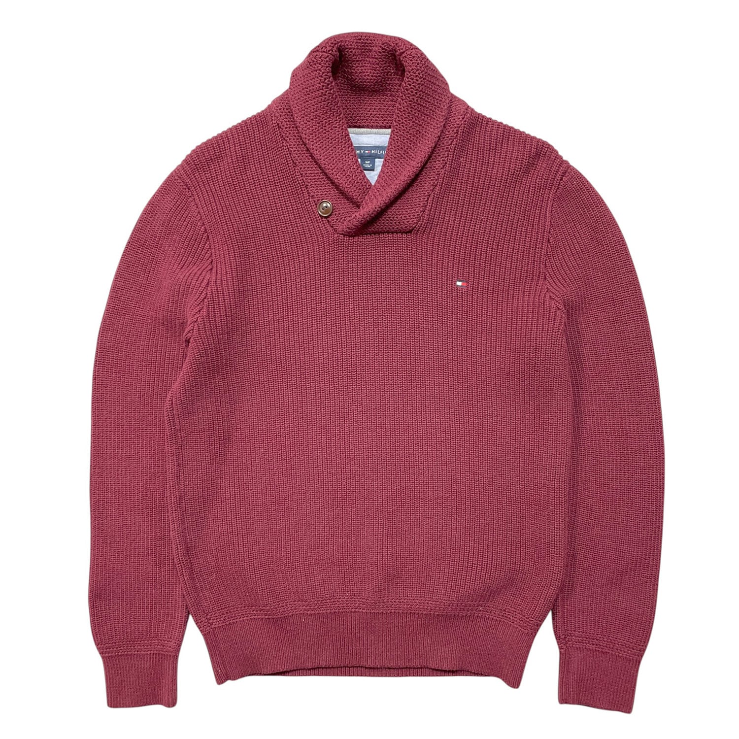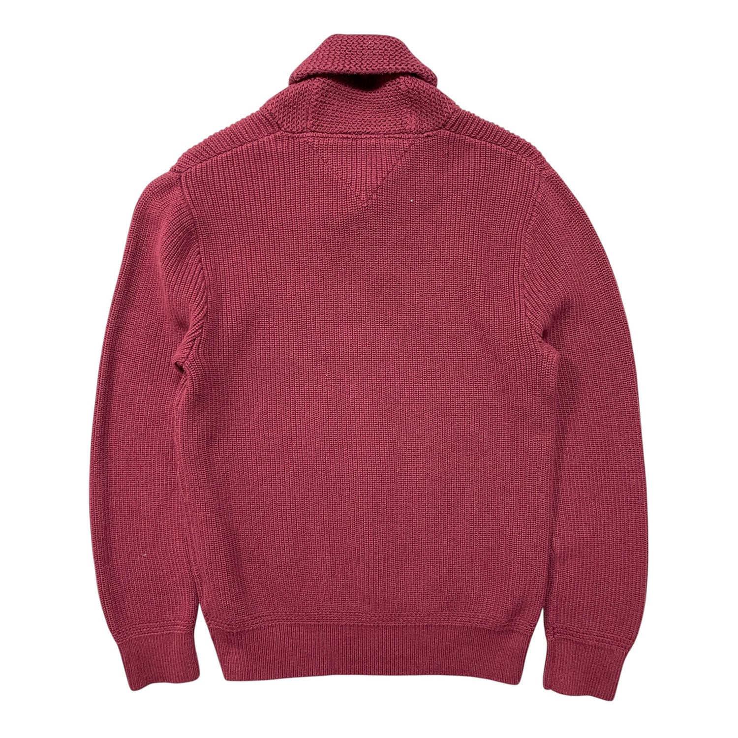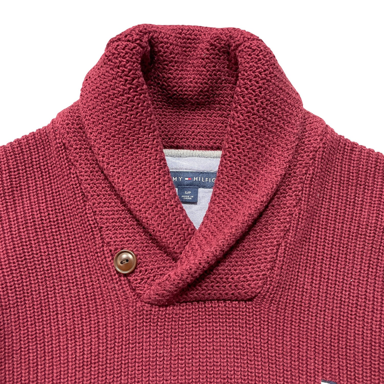USA 古着 TOMMY HILFIGER トミーヒルフィガー コットン ショールカラー セーター メンズS マルーン BJ1060