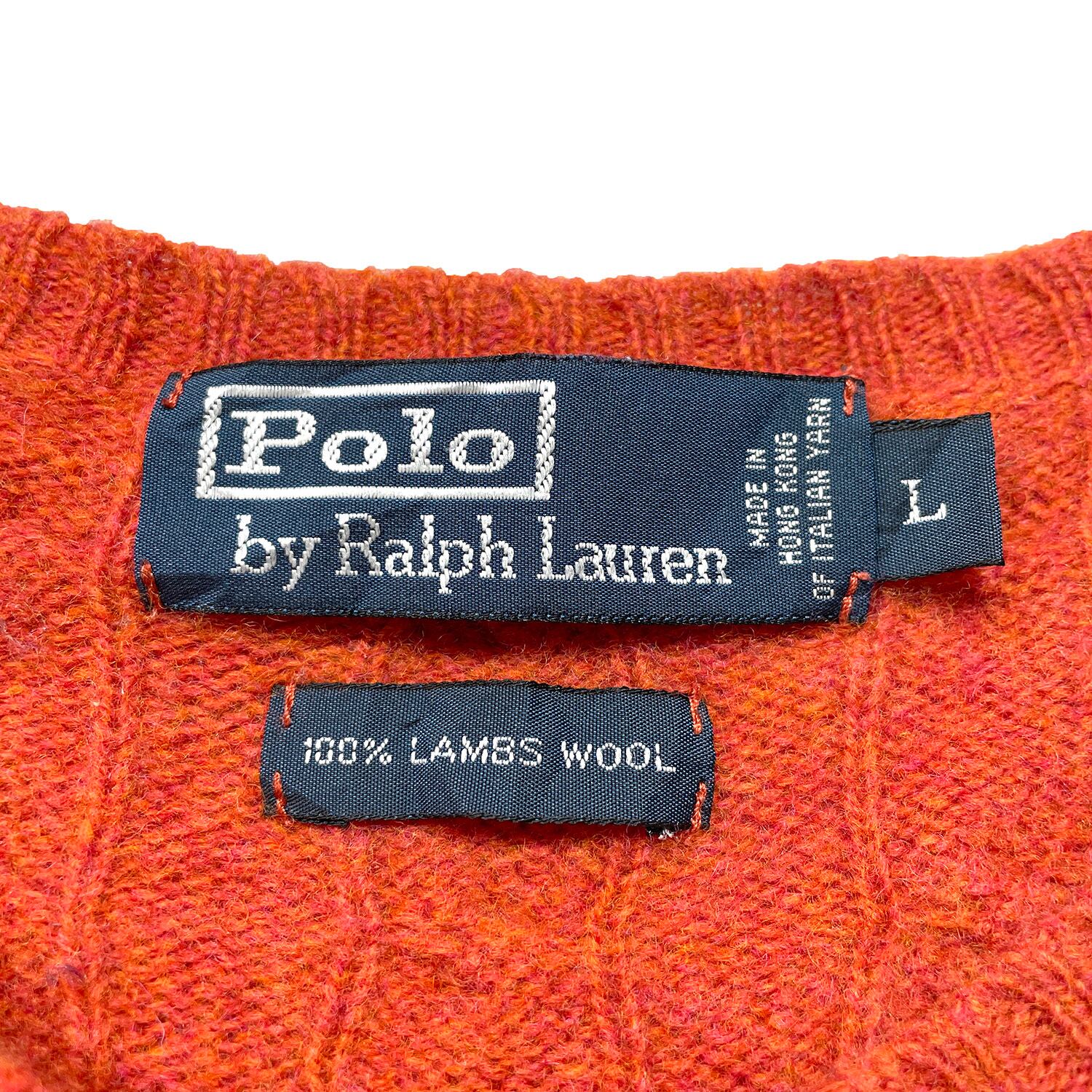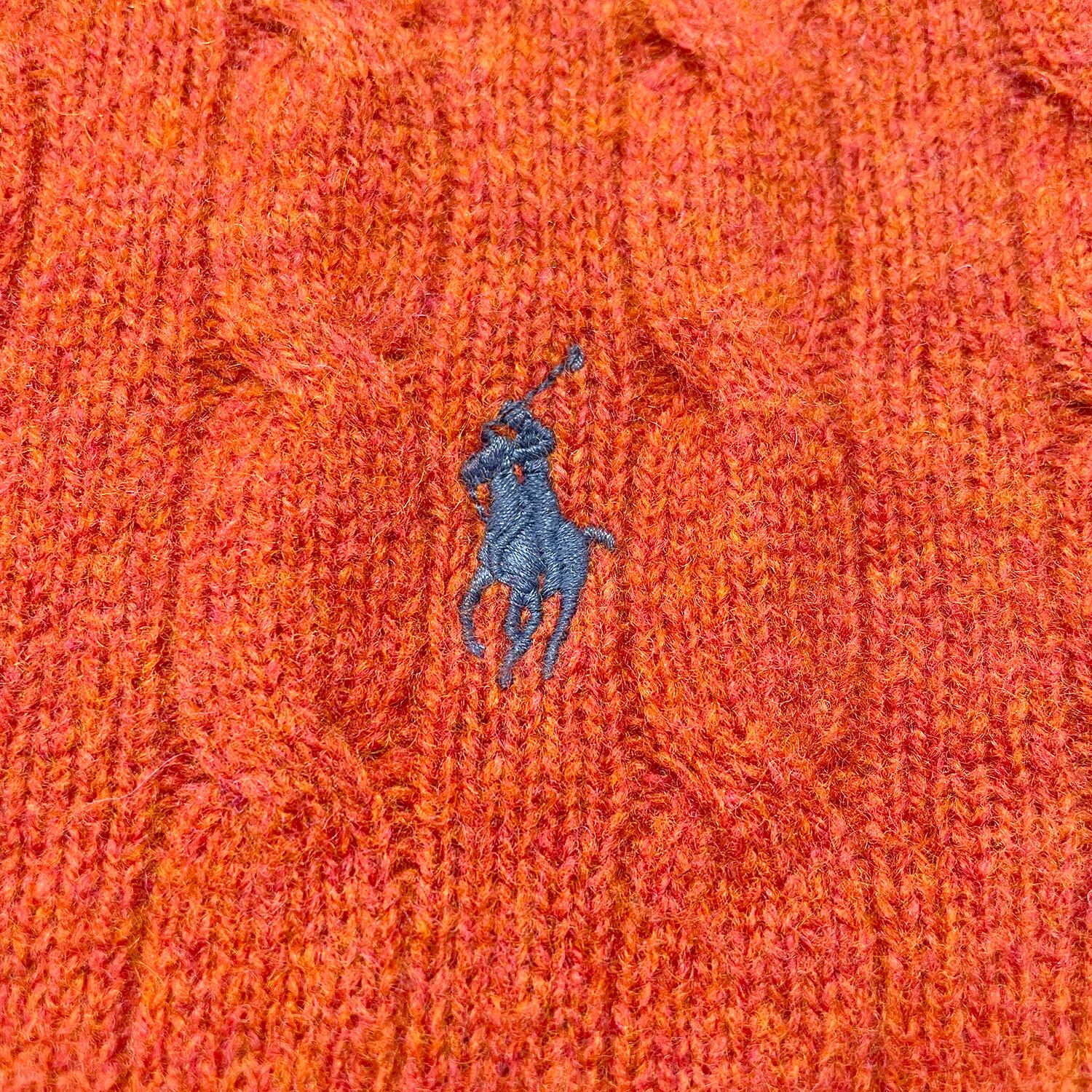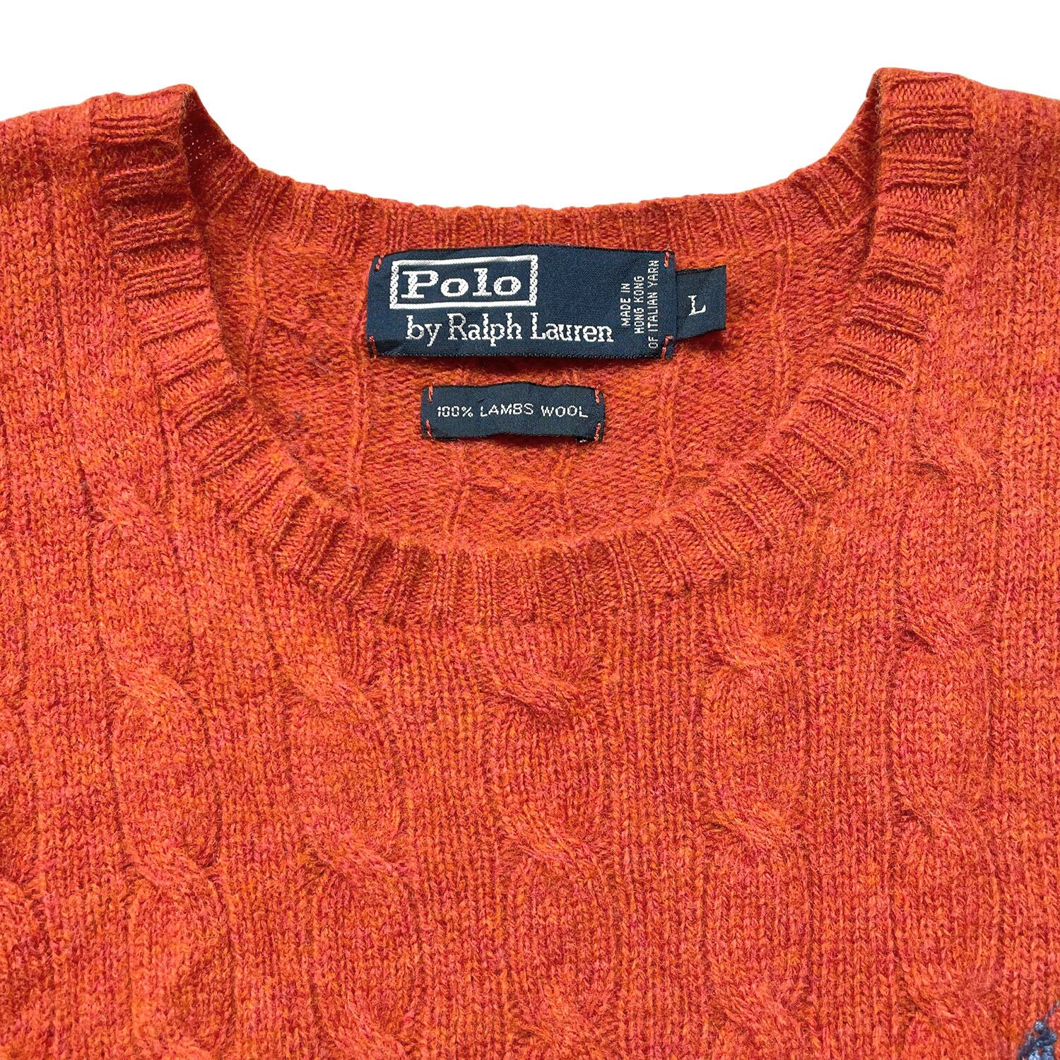 USA 古着 POLO by Ralph Lauren ポロ バイ ラルフローレン ラムウール クルーネック ケーブル セーター オレンジ系 メンズL BJ1065