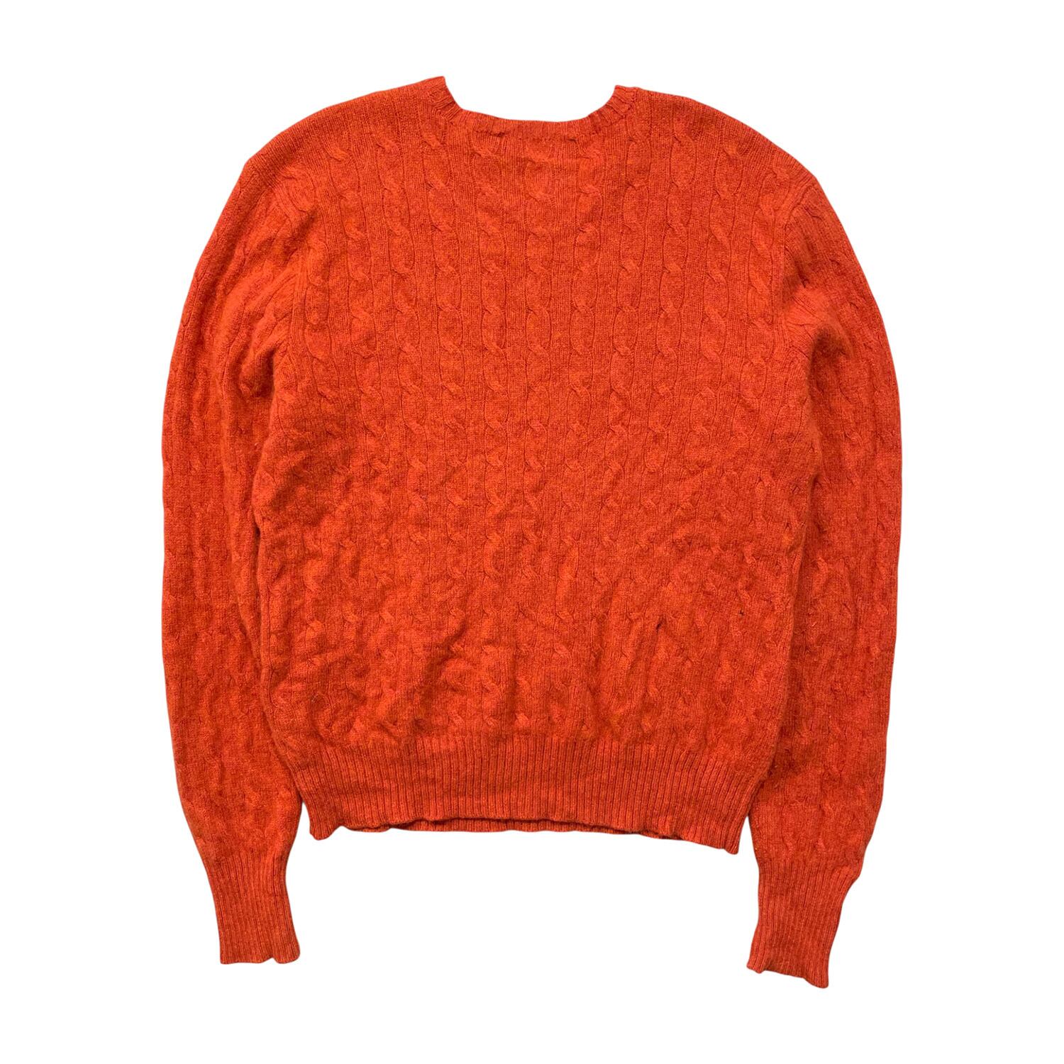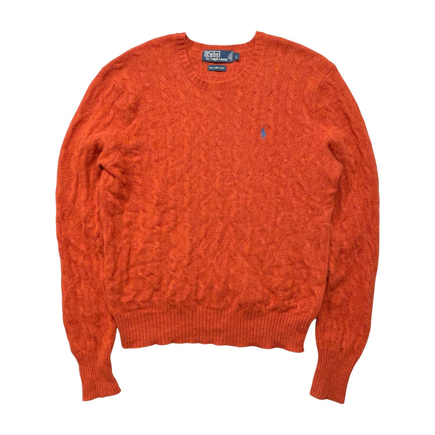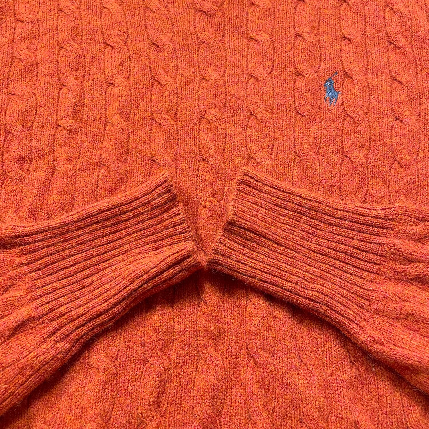 USA 古着 POLO by Ralph Lauren ポロ バイ ラルフローレン ラムウール クルーネック ケーブル セーター オレンジ系 メンズL BJ1065