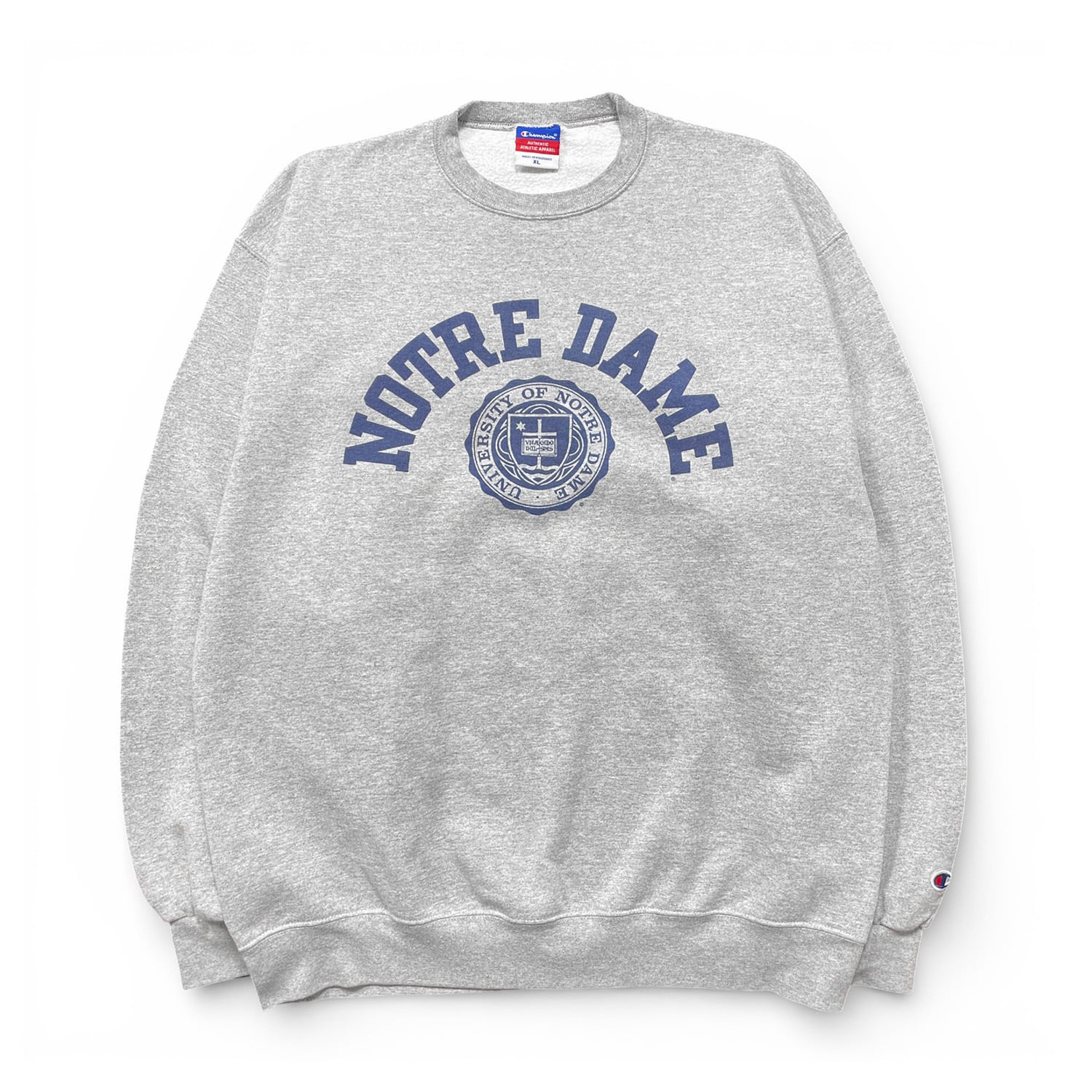 USA 古着 Champion チャンピオン ノートルダム大学 カレッジ クルーネック スウェット トレーナー プリント グレー メンズXL BD3437