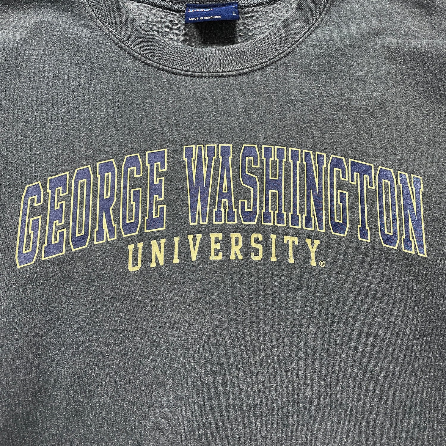 USA 古着 ジョージワシントン大学 カレッジ クルーネック スウェット トレーナー プリント チャコール メンズL BD3392