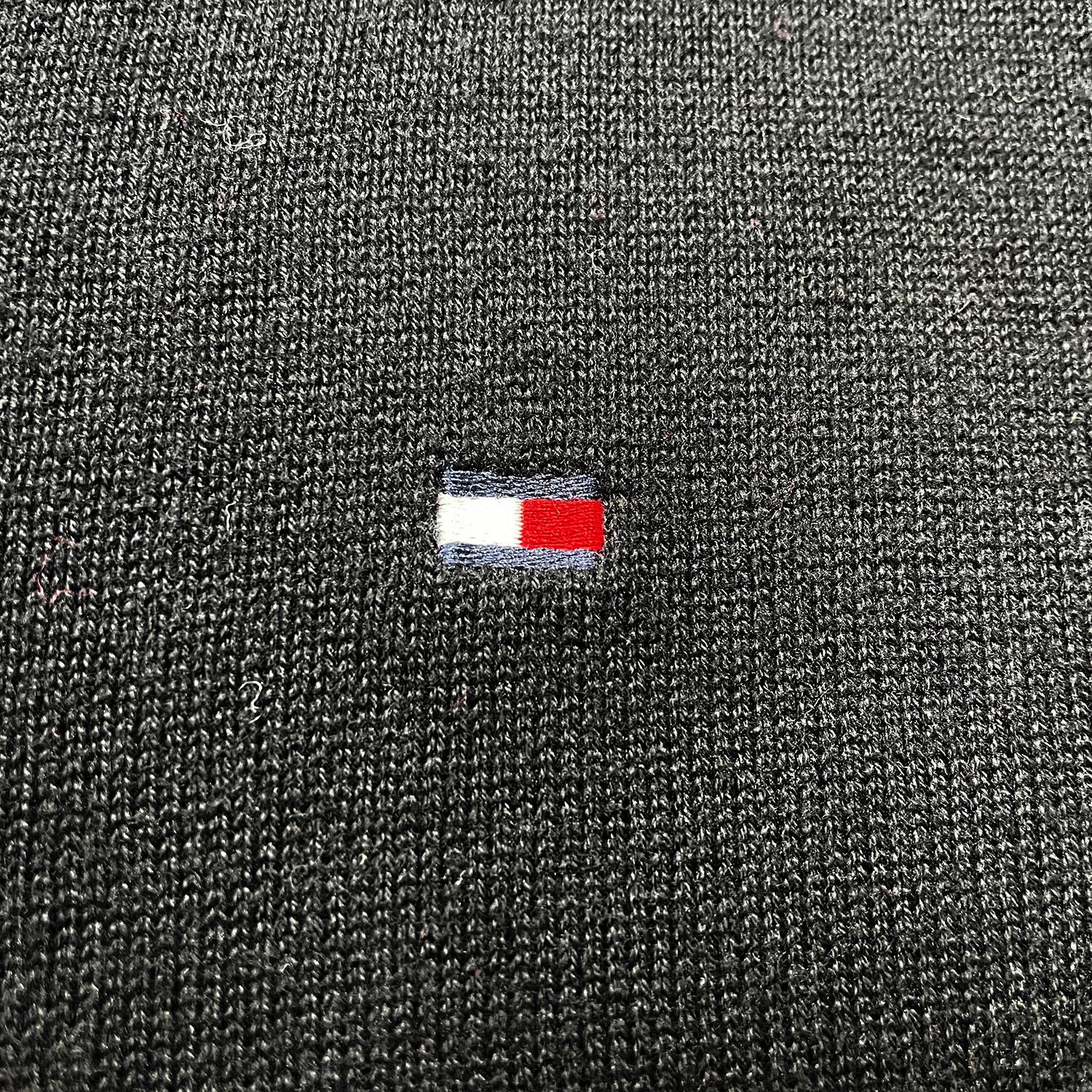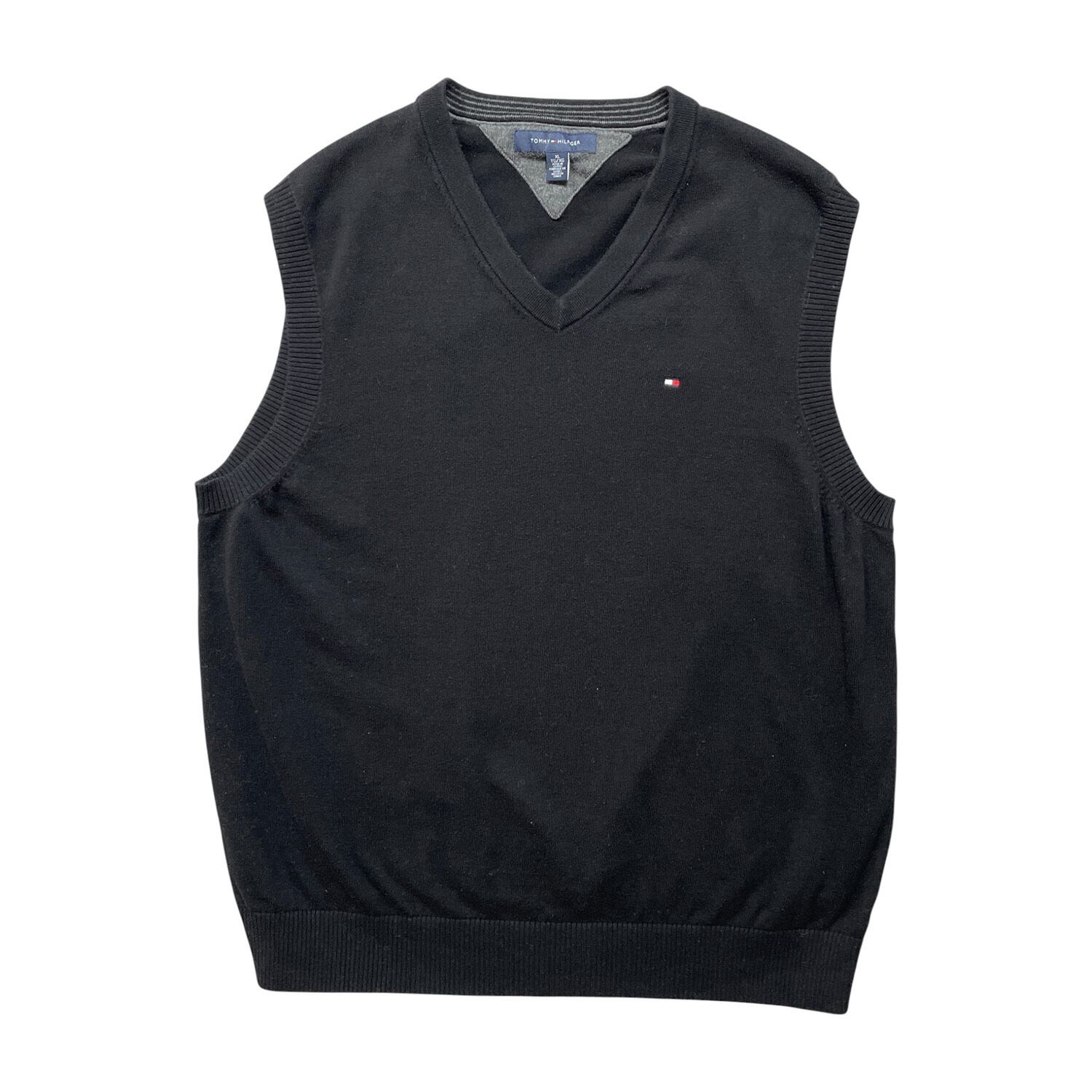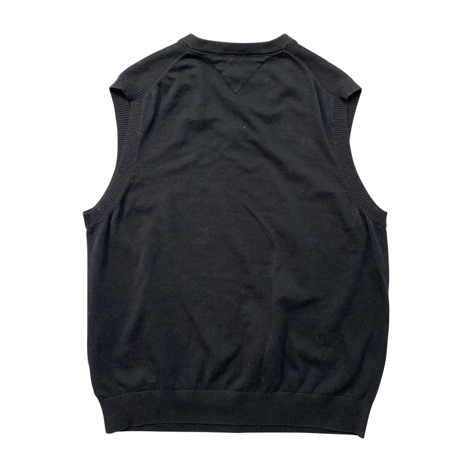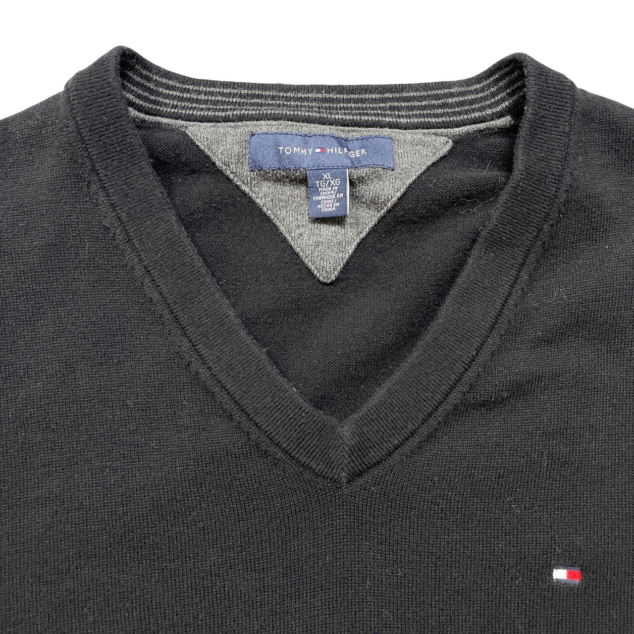 USA 古着 TOMMY HILFIGER トミーヒルフィガー コットン Vネック ニットベスト メンズXL ブラック 黒色 BI0148