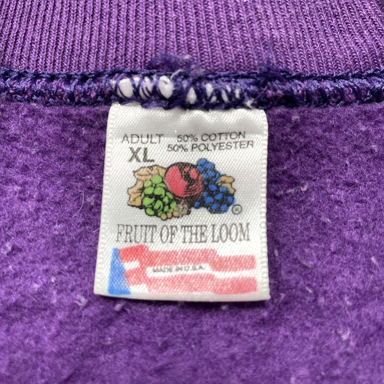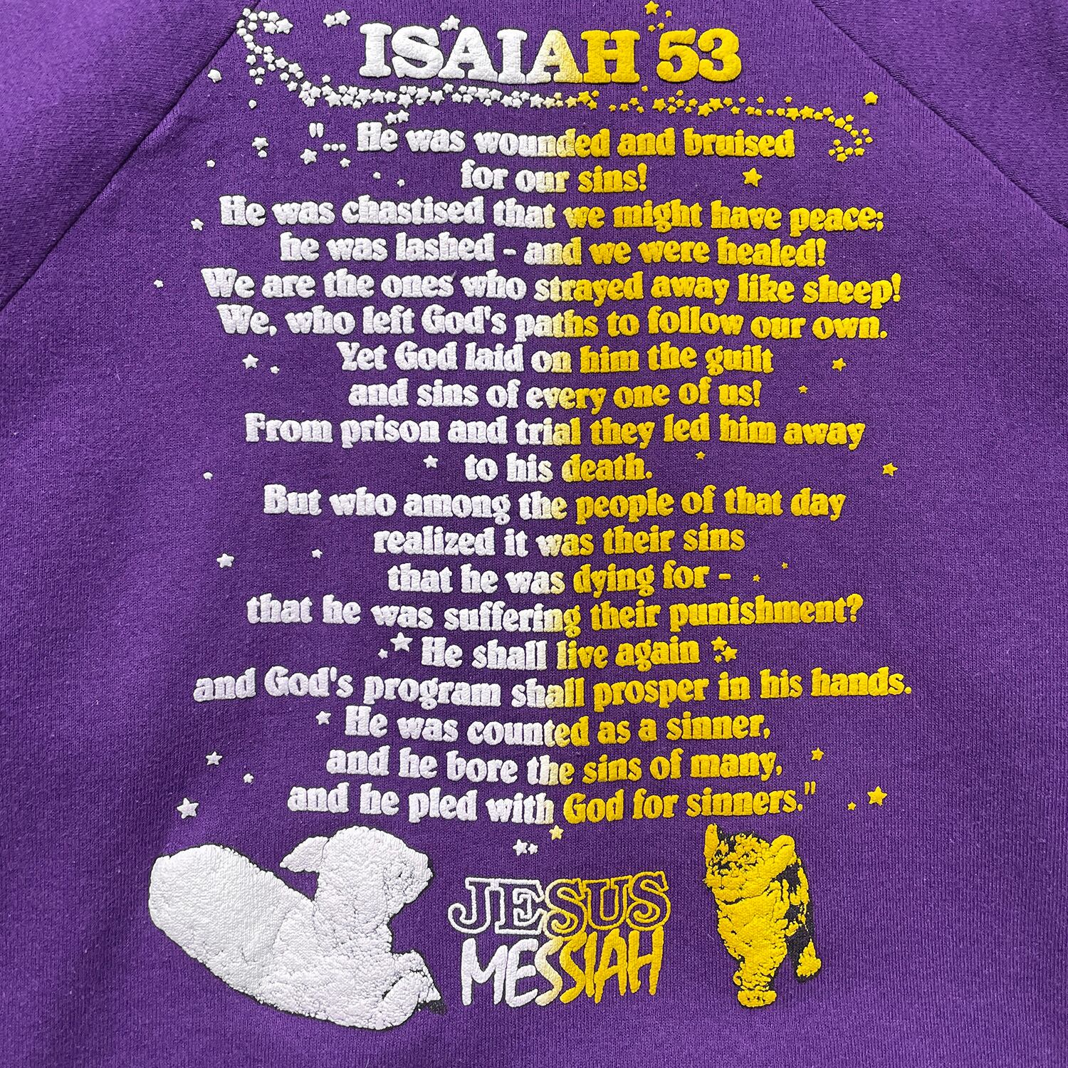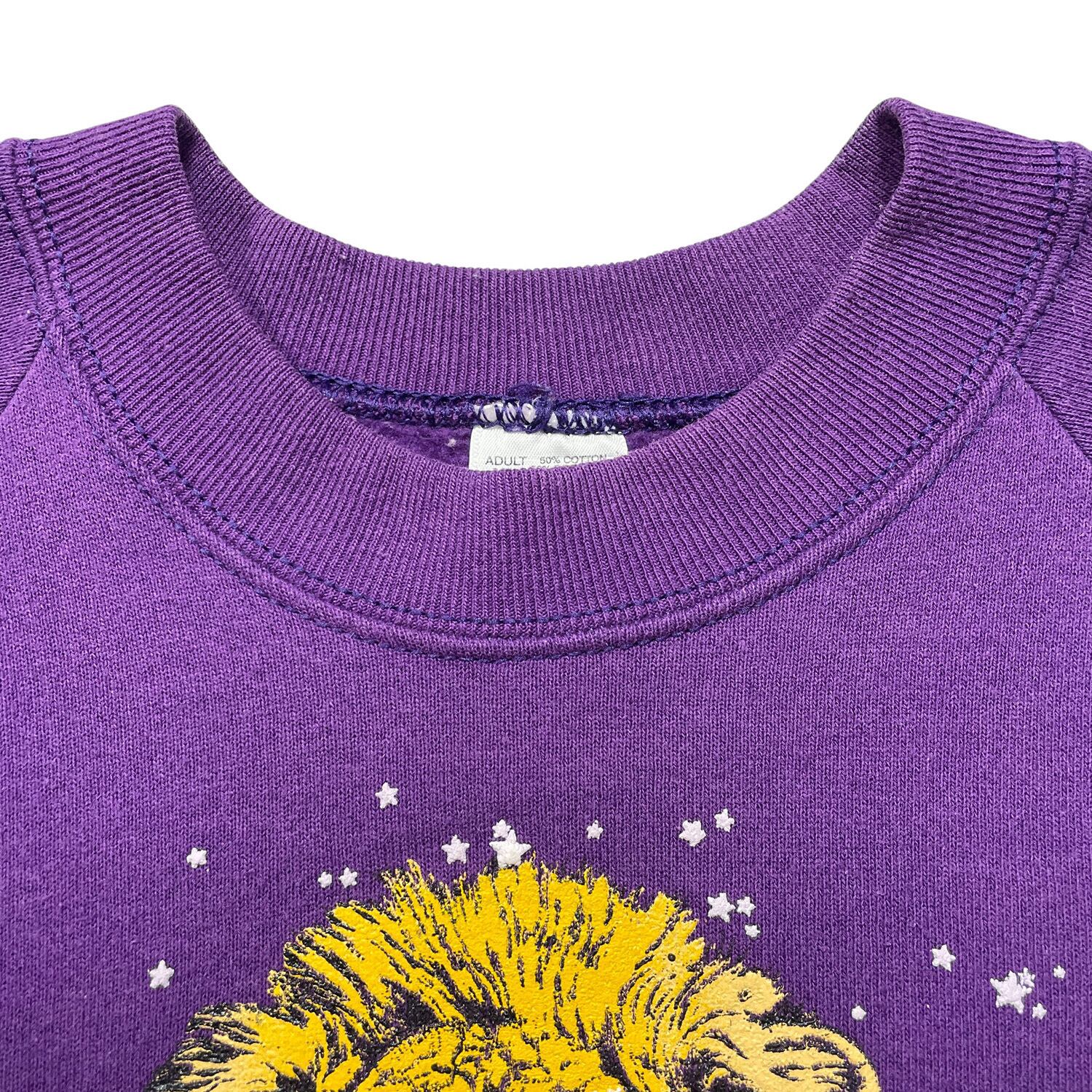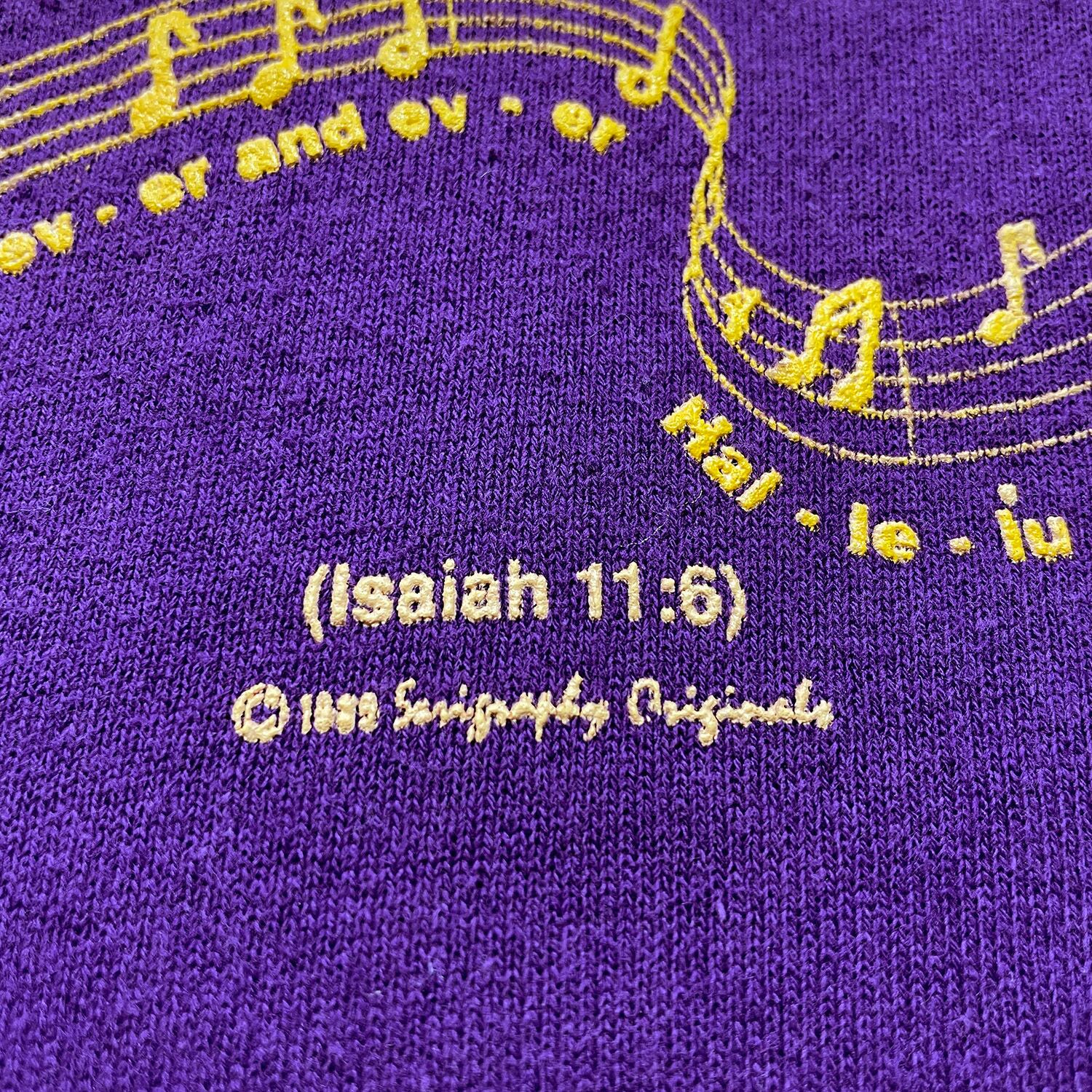 古着 USA製 80S ジーザスメシア 旧約聖書 イザヤ書 11章6節 ヴィンテージ クルーネック スウェット トレーナー 発砲プリント パープル メンズXL BD3395