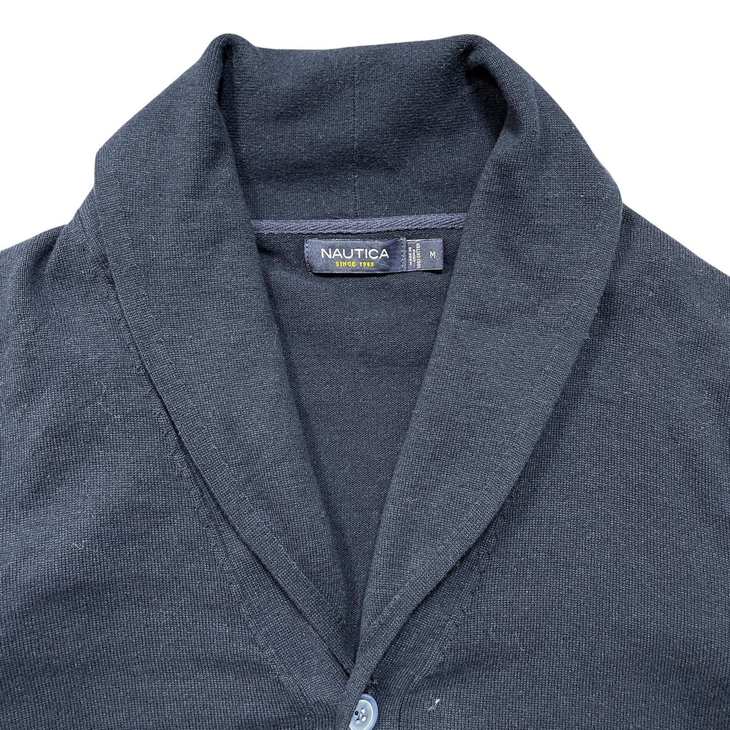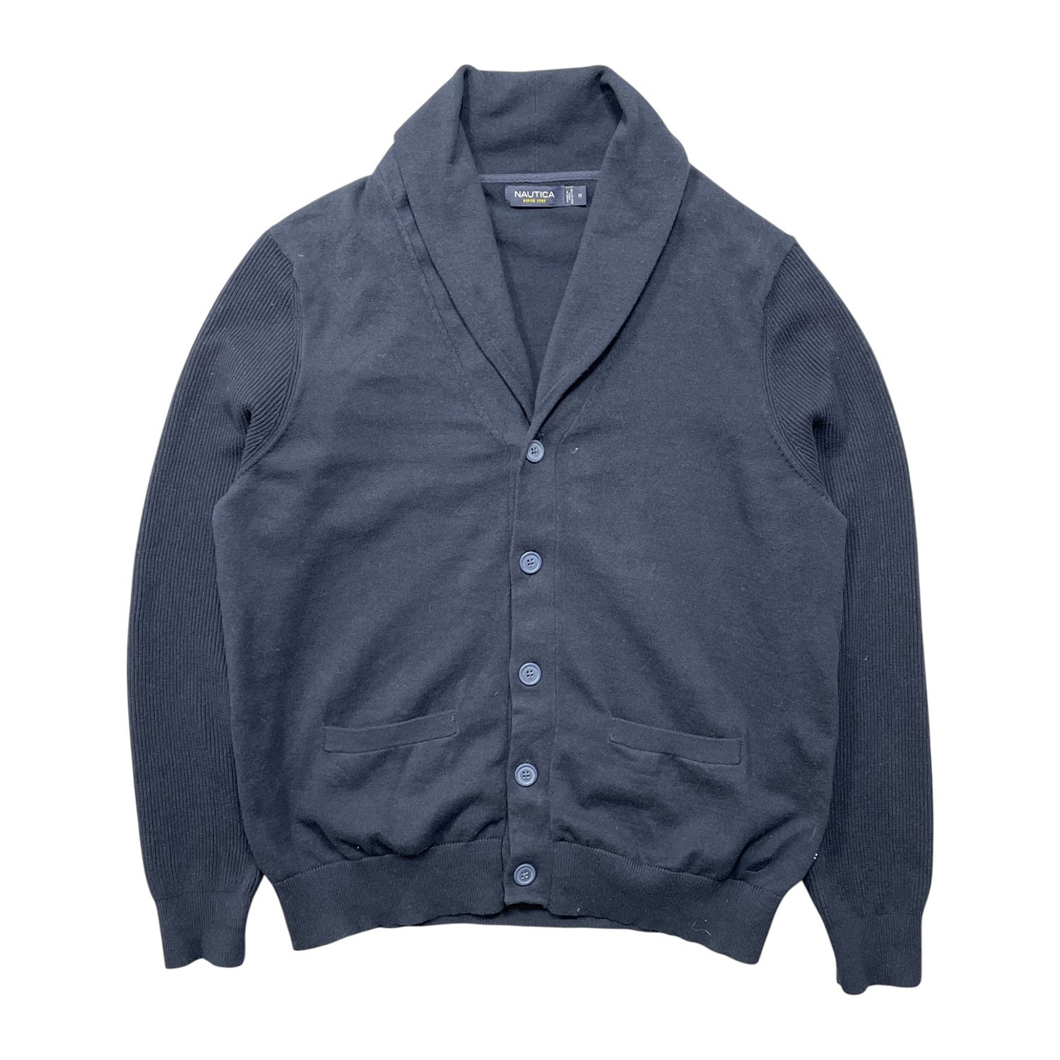 USA 古着 NAUTICA ノーティカ コットン ショールカラー カーディガン ネイビー メンズM 紺色 BH0426