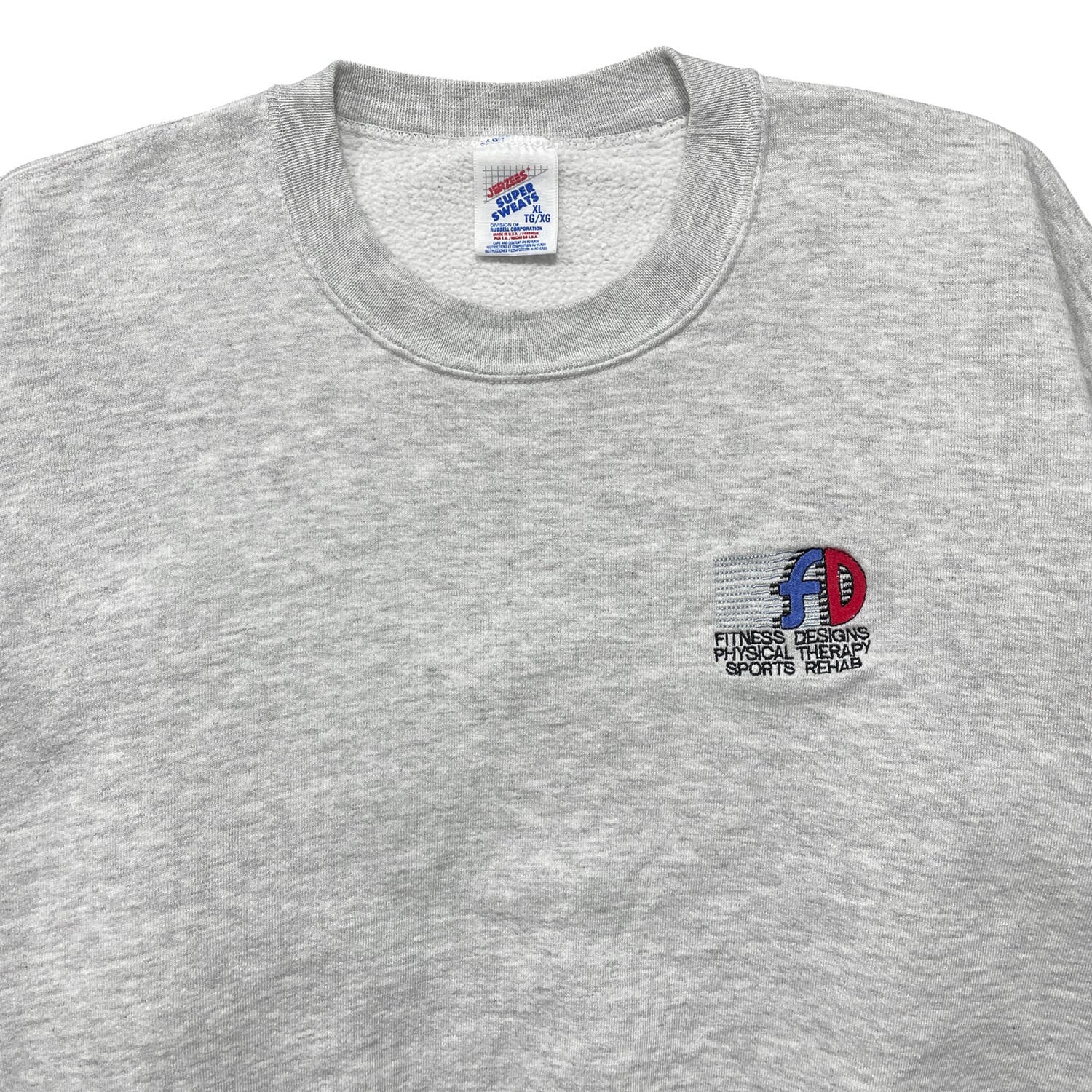 古着 USA製 90S スポーツジム 企業系 ヴィンテージ クルーネック スウェット トレーナー 刺繍 ワンポイント グレー メンズXL BD3441