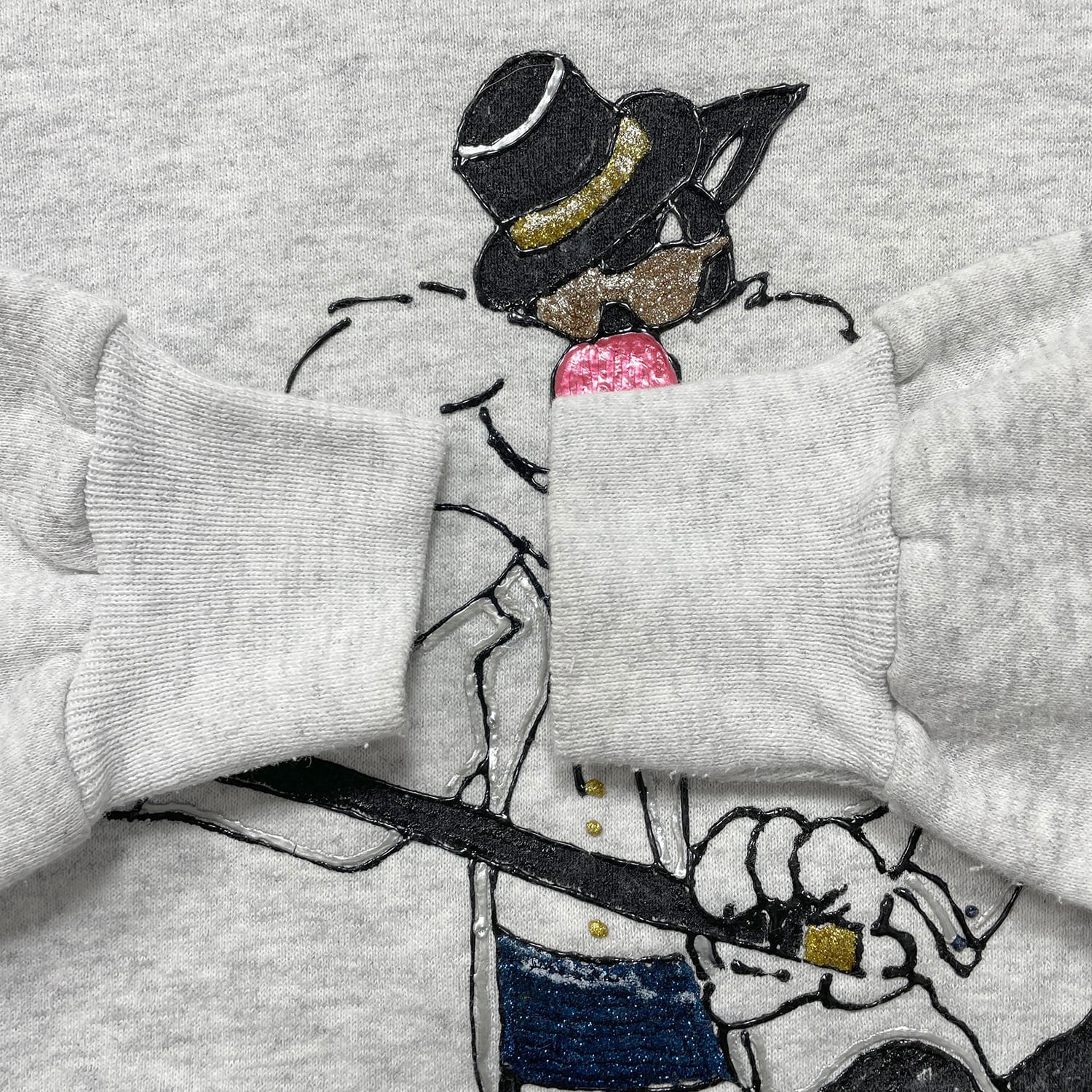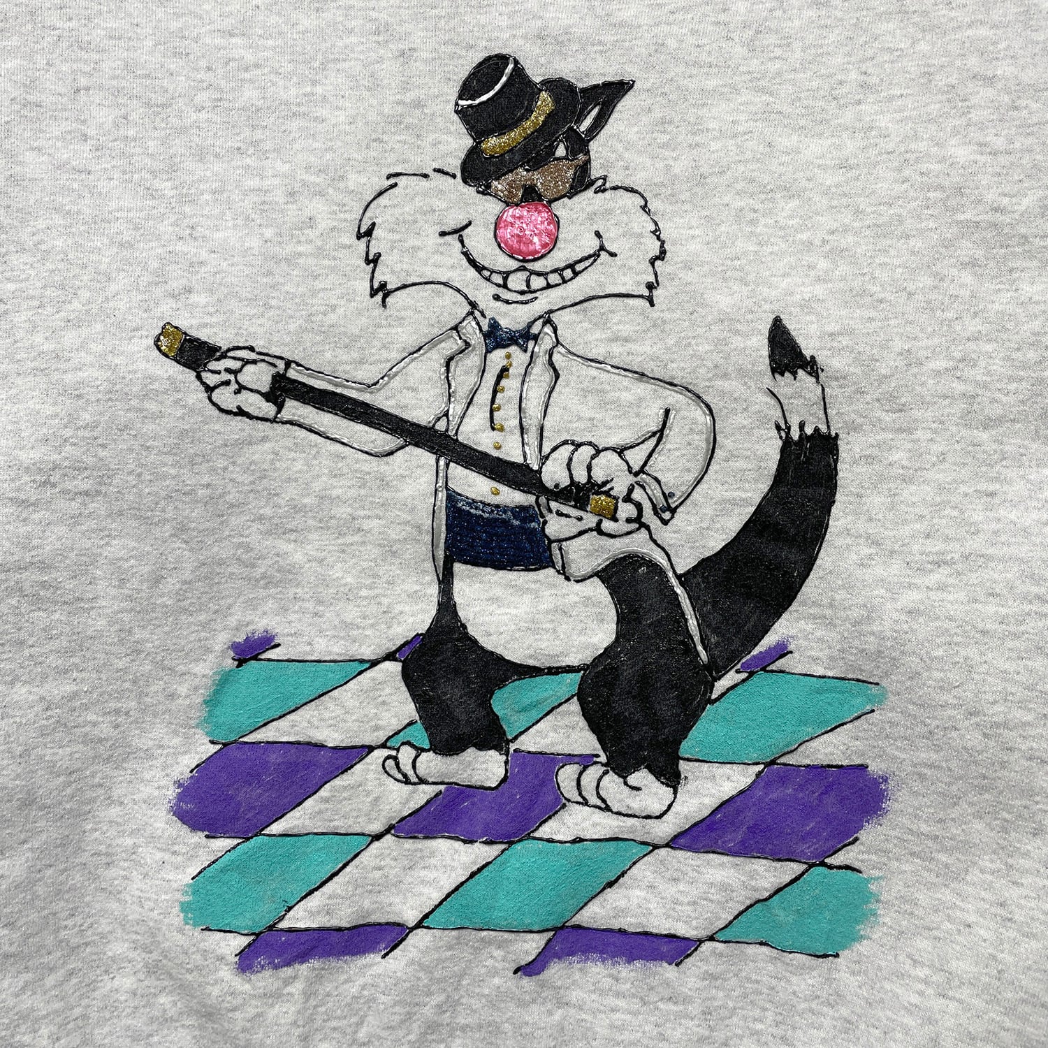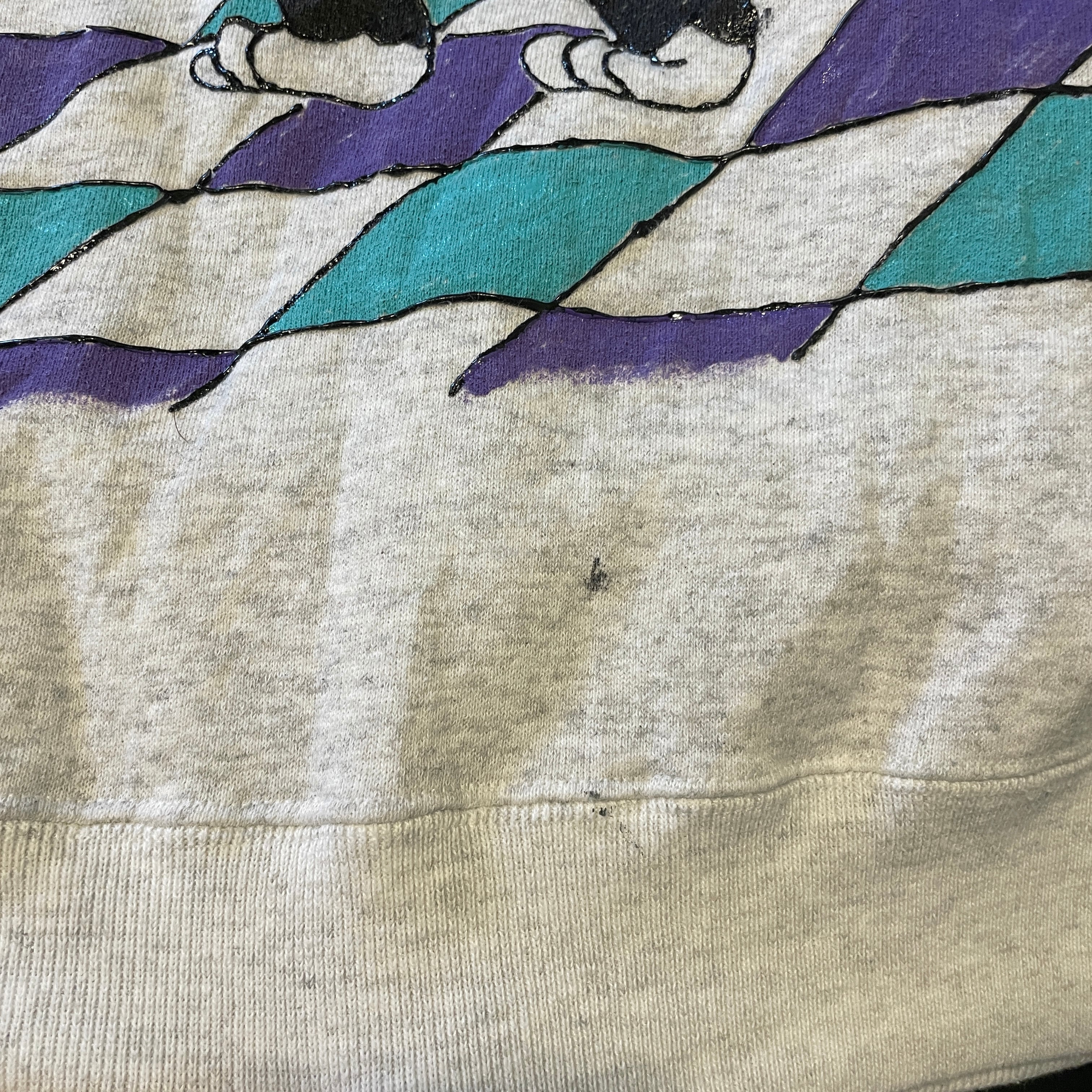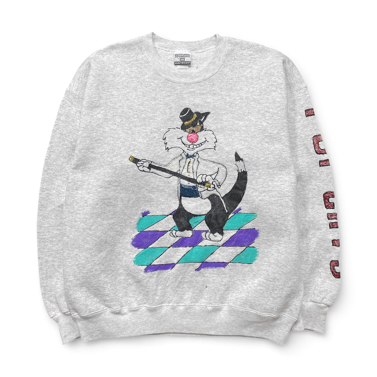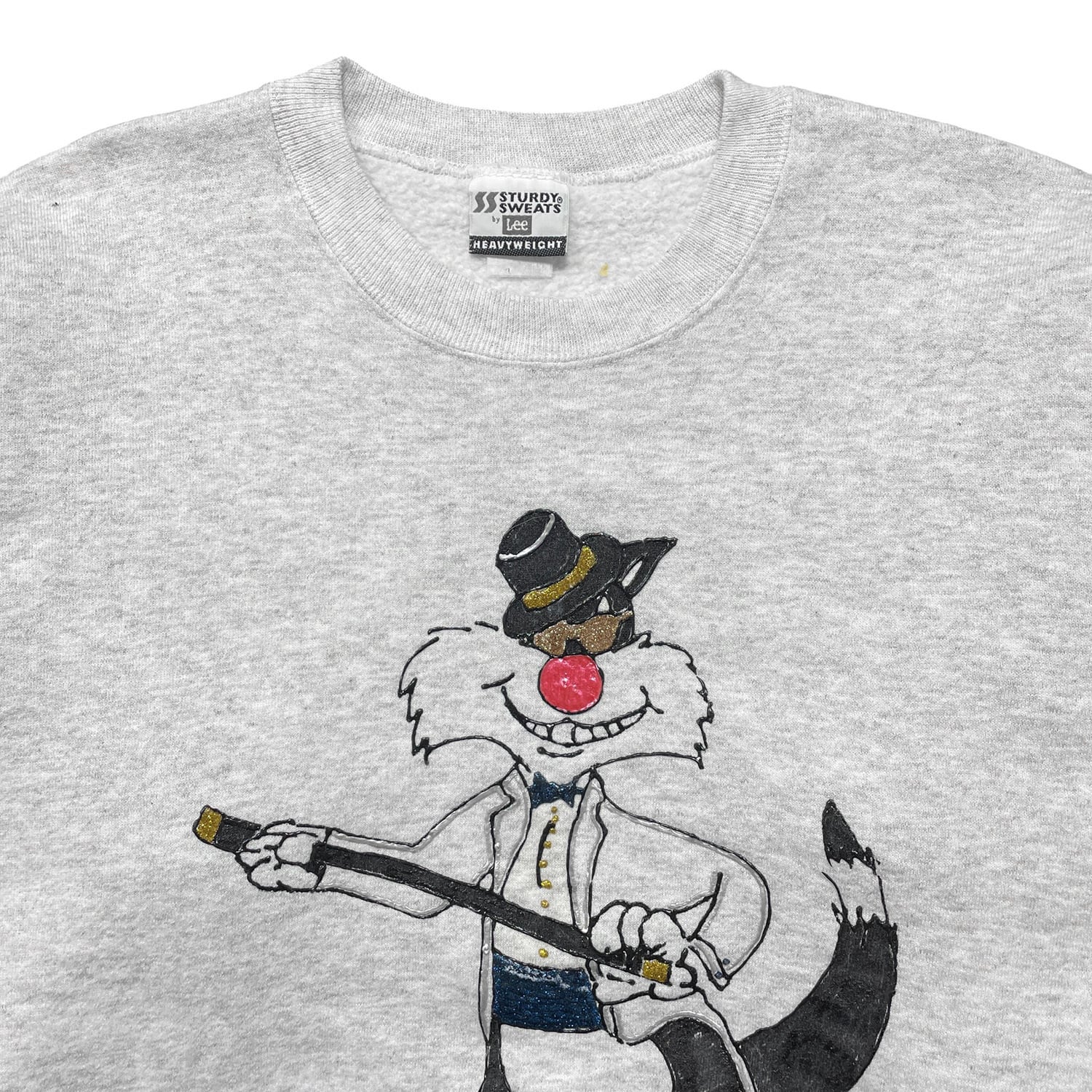 古着 USA製 90S Lee ルーニーテューンズ シルベスター スウェット トレーナー ハンドペイント グレー メンズXL 程度 BD3443