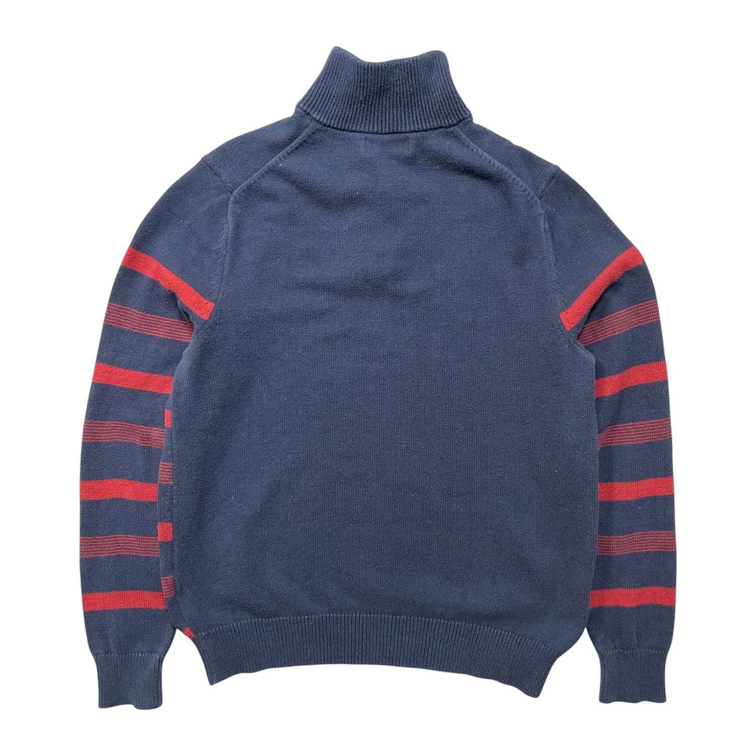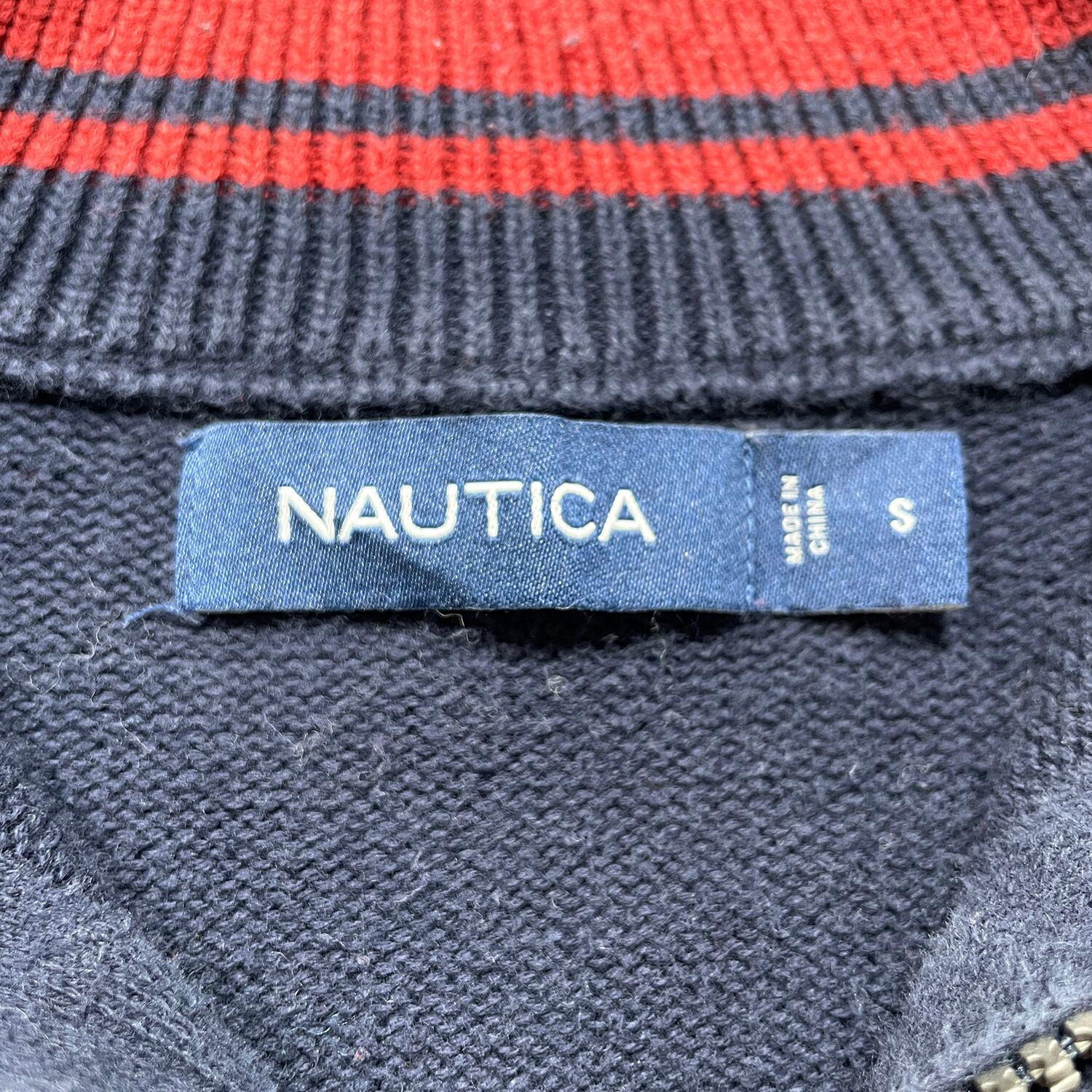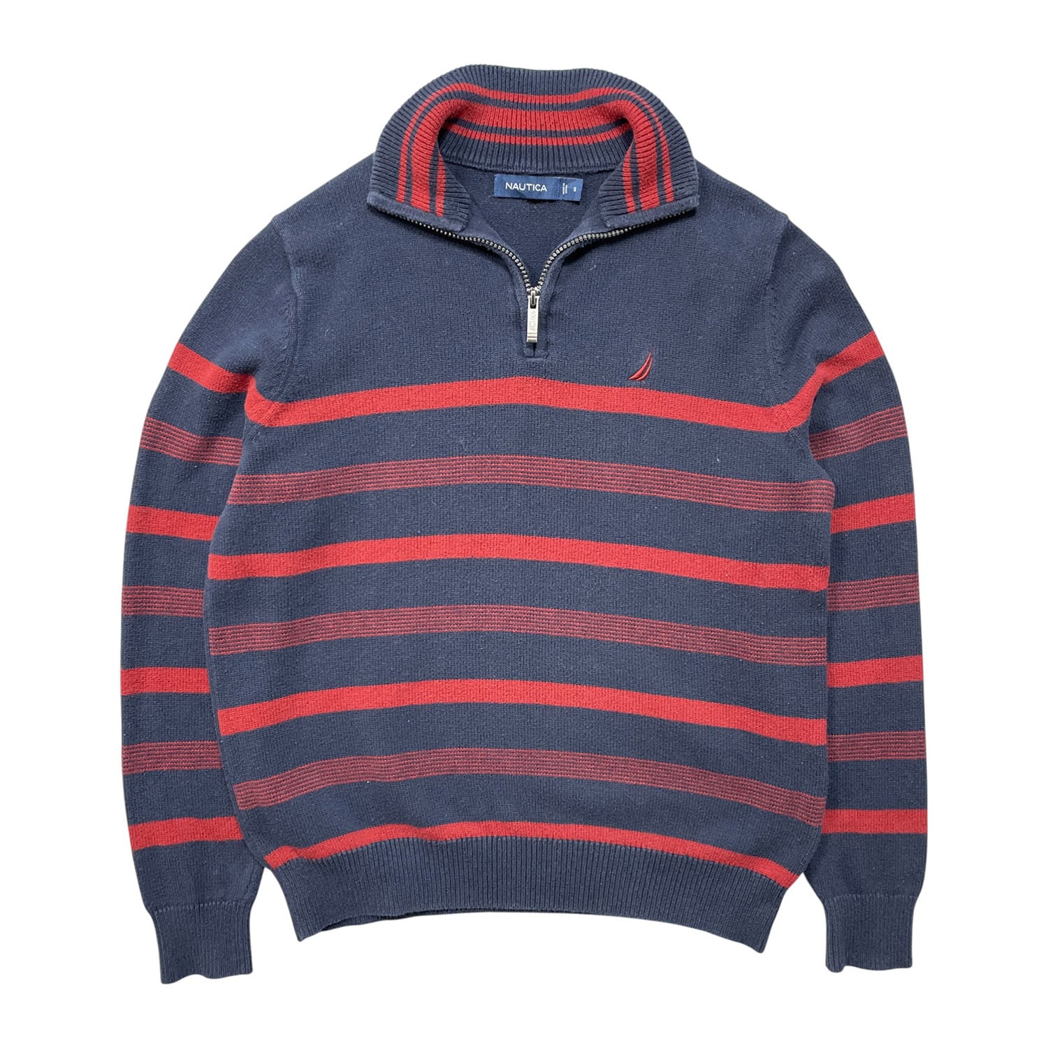 USA 古着 NAUTICA ノーティカ コットン ハーフジップ 薄地 ボーダー セーター ネイビー メンズS BJ1069