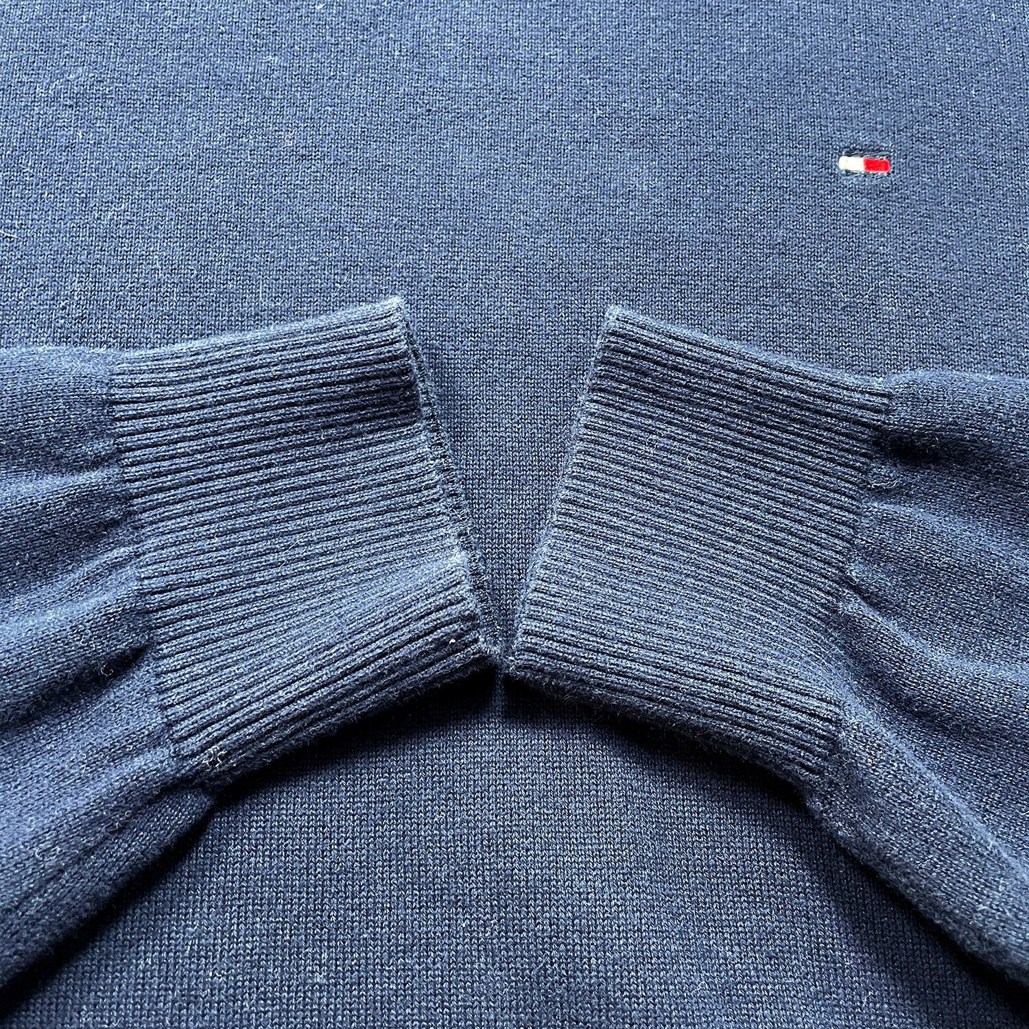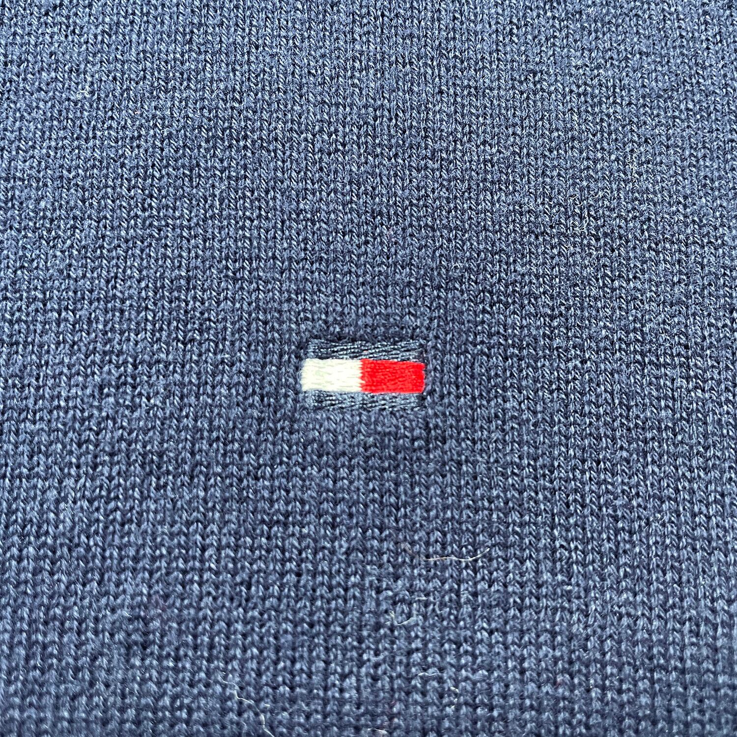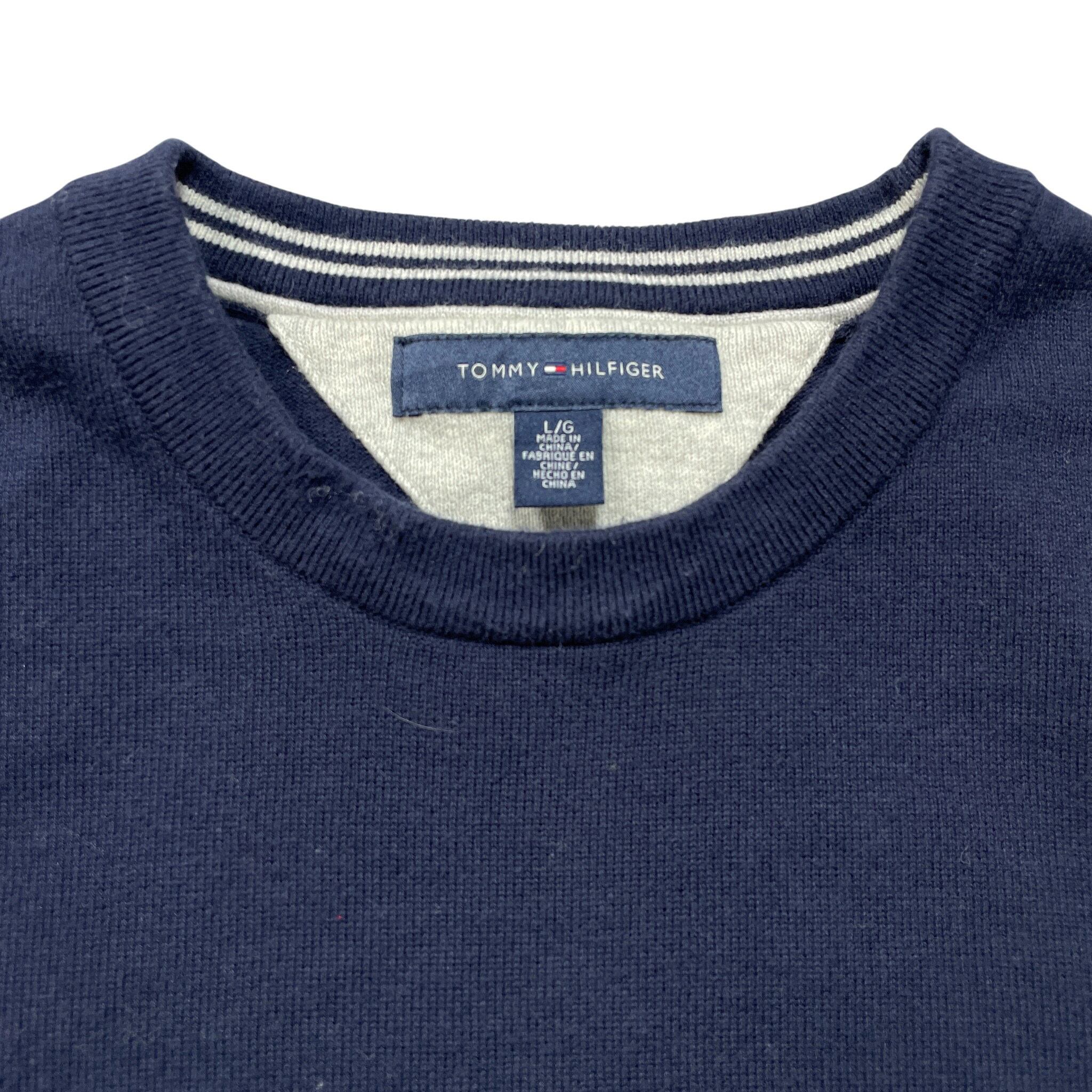 USA 古着 TOMMY HILFIGER トミーヒルフィガー コットン クルーネック 刺繍ロゴ 薄地 セーター ネイビー メンズL BJ1071