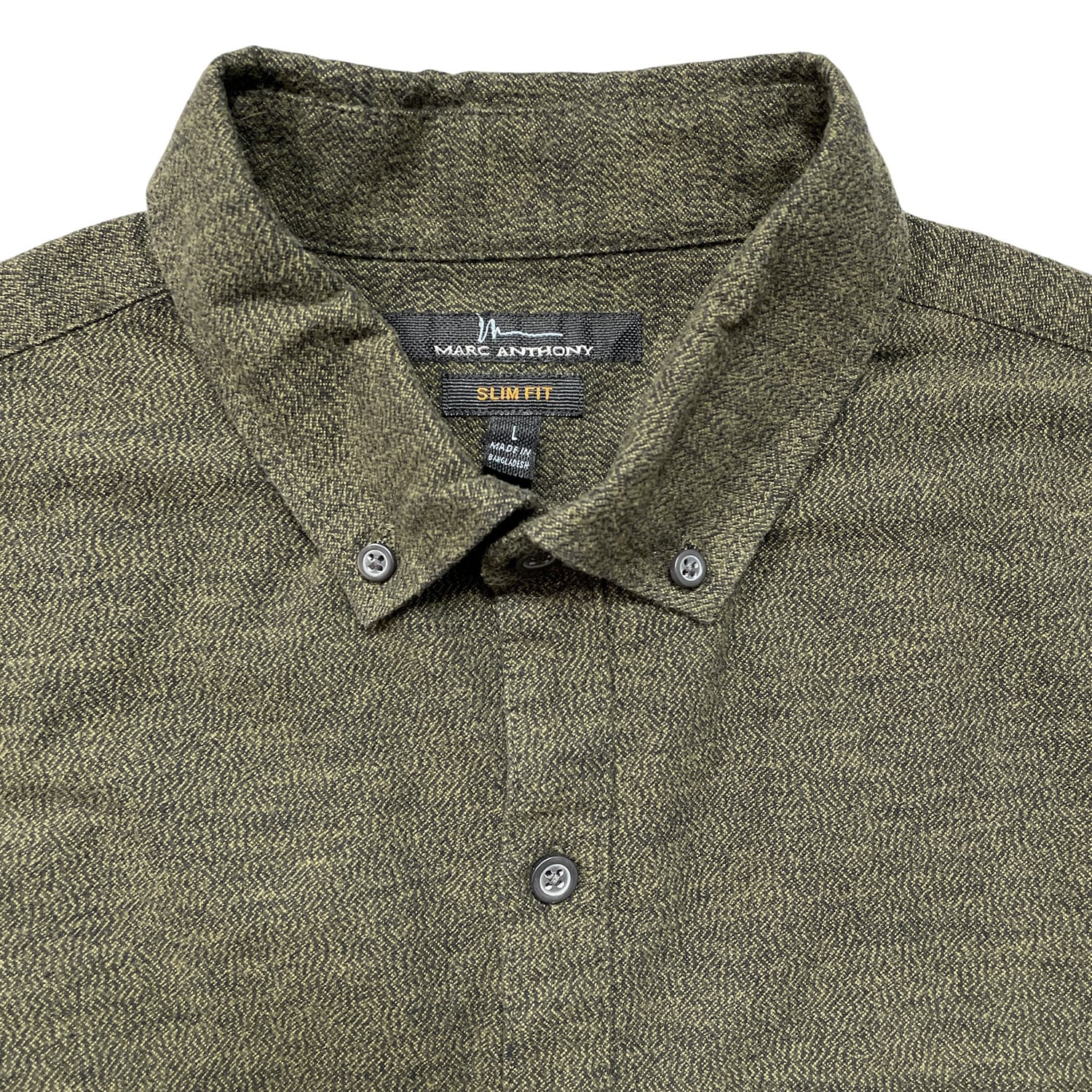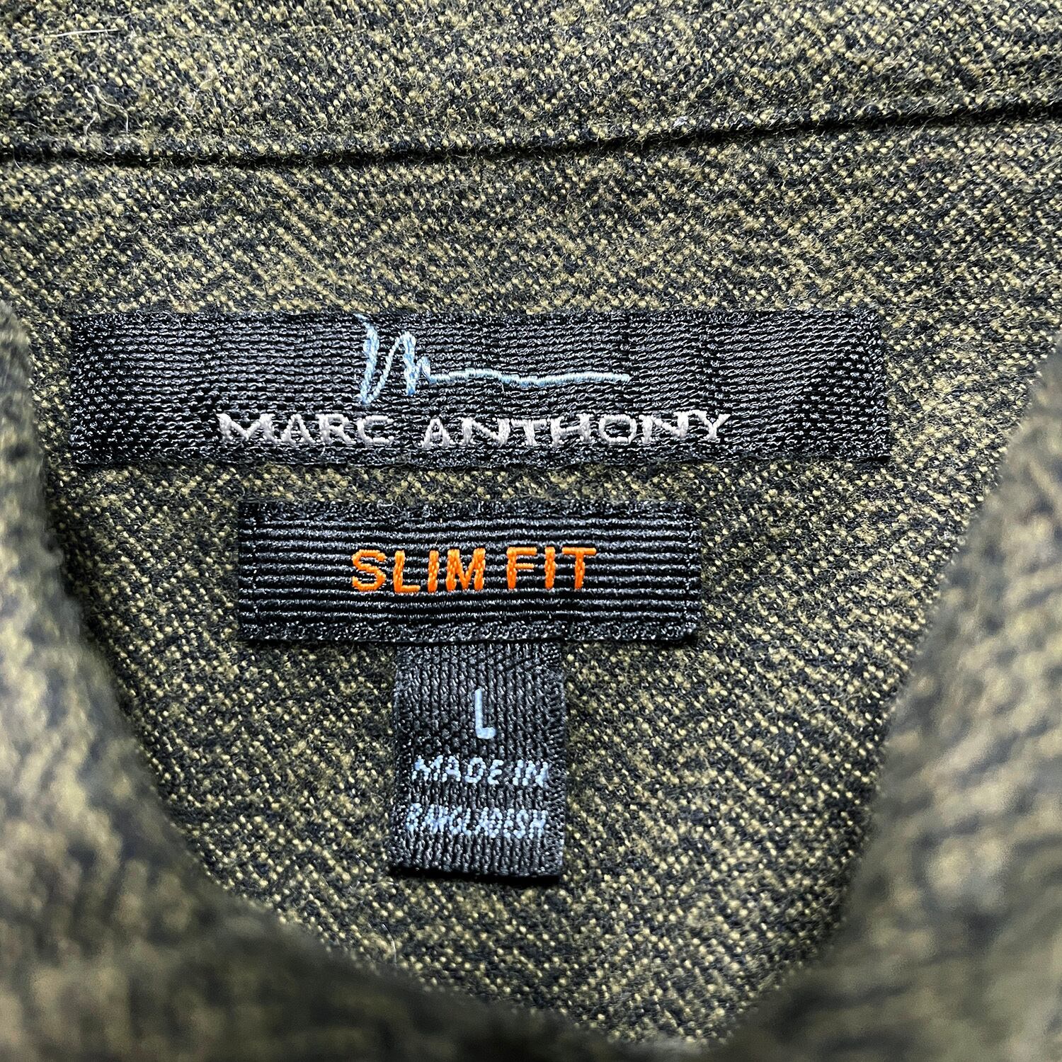 USA 古着 MARC ANTHONY マークアンソニー コットン BDシャツ カジュアルシャツ 長袖シャツ メンズL オリーブ系 ヴィンテージ BG1326
