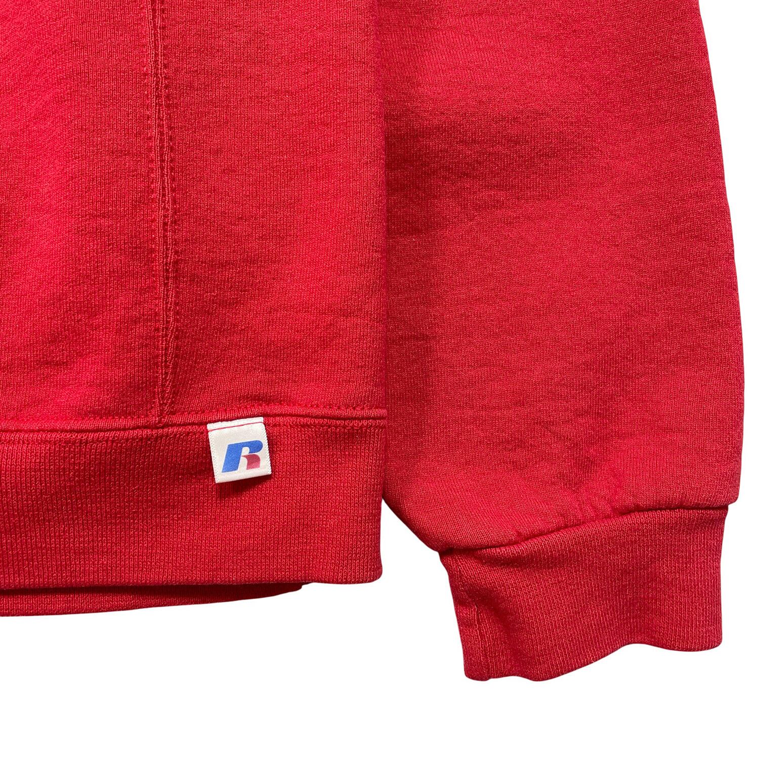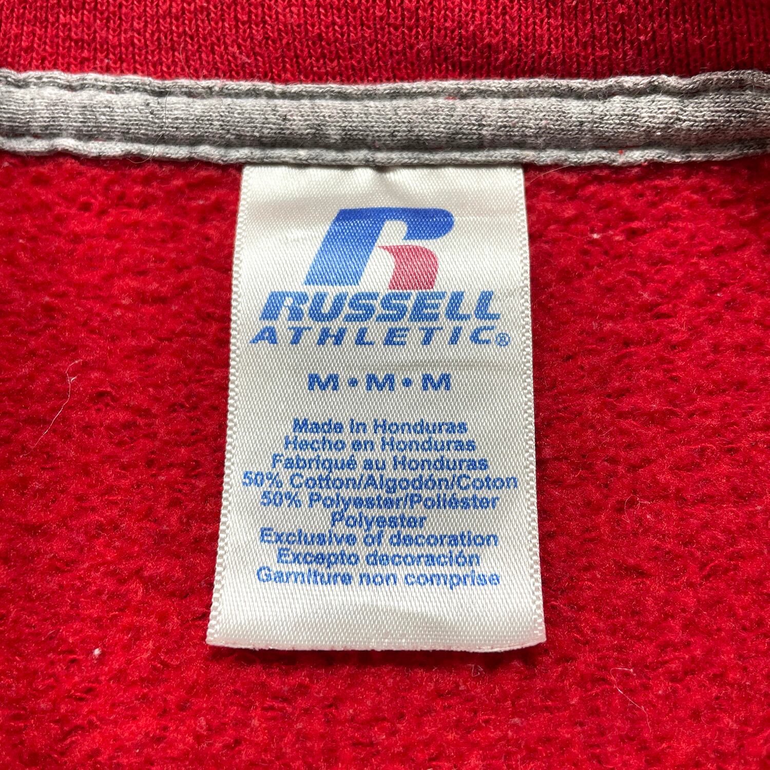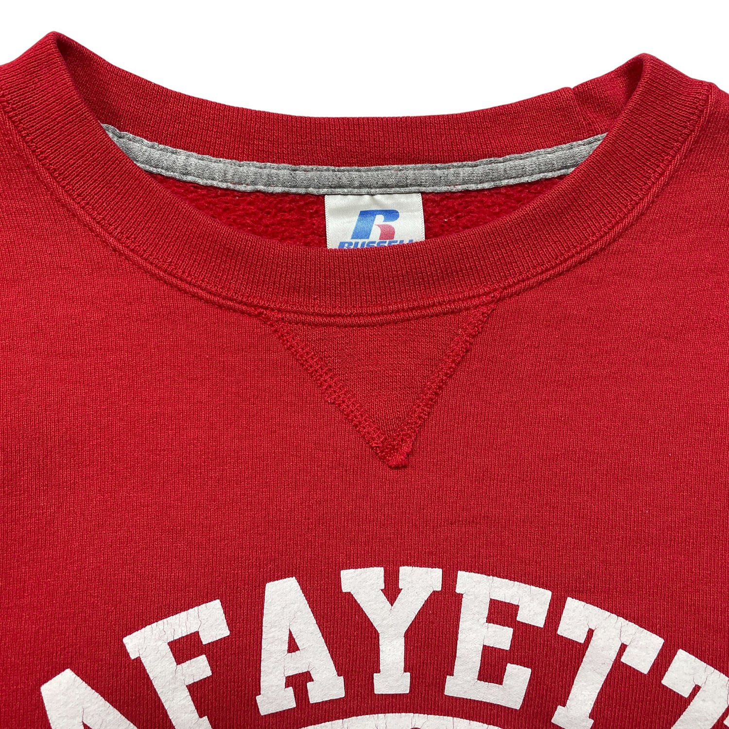 USA 古着 Russell ラッセル ラファイエット大学 カレッジ 前V クルーネック スウェット トレーナー プリント レッド メンズM BD3405
