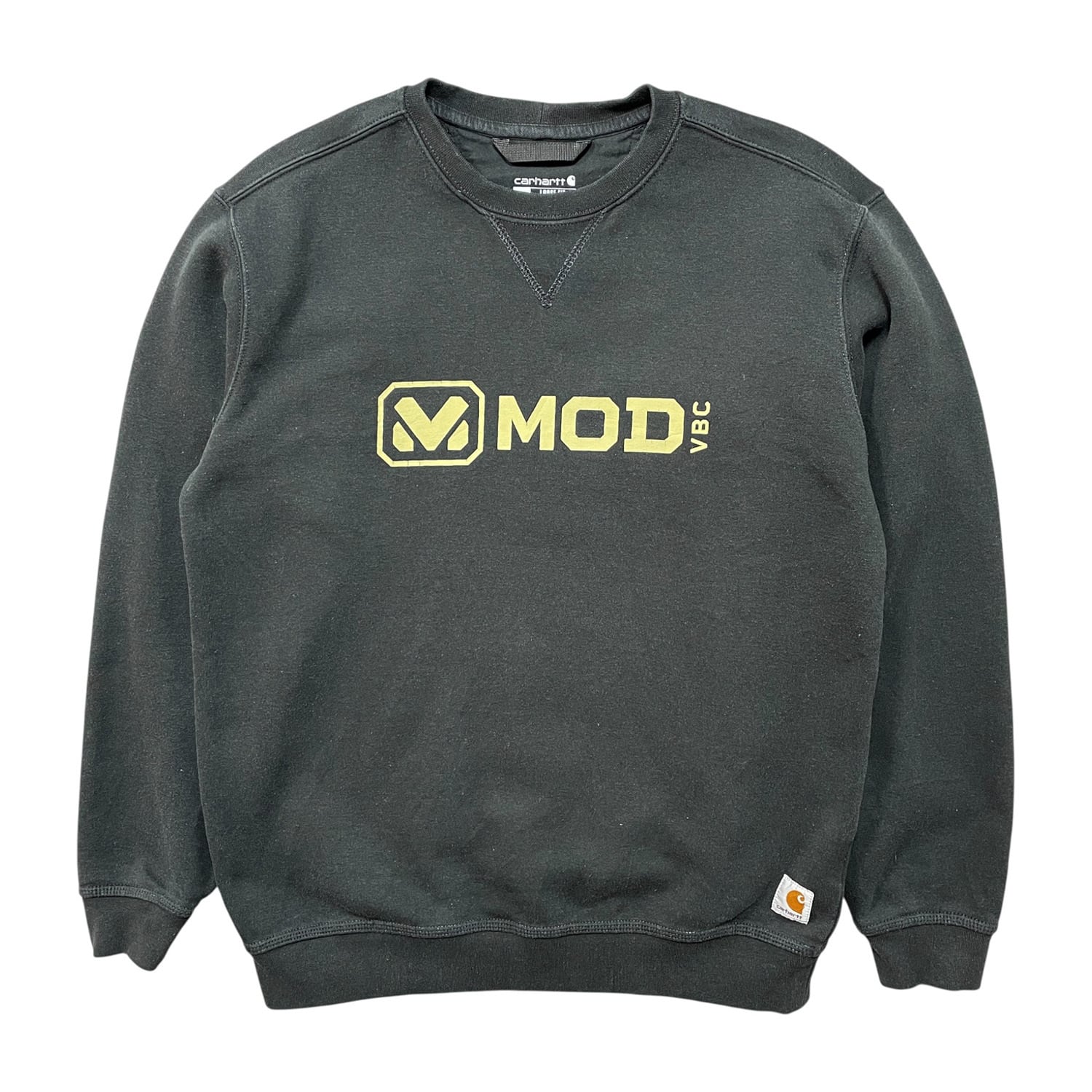 USA 古着 Carhartt カーハート クルーネック 前V スウェット トレーナー プリント ブラック メンズM BD3406