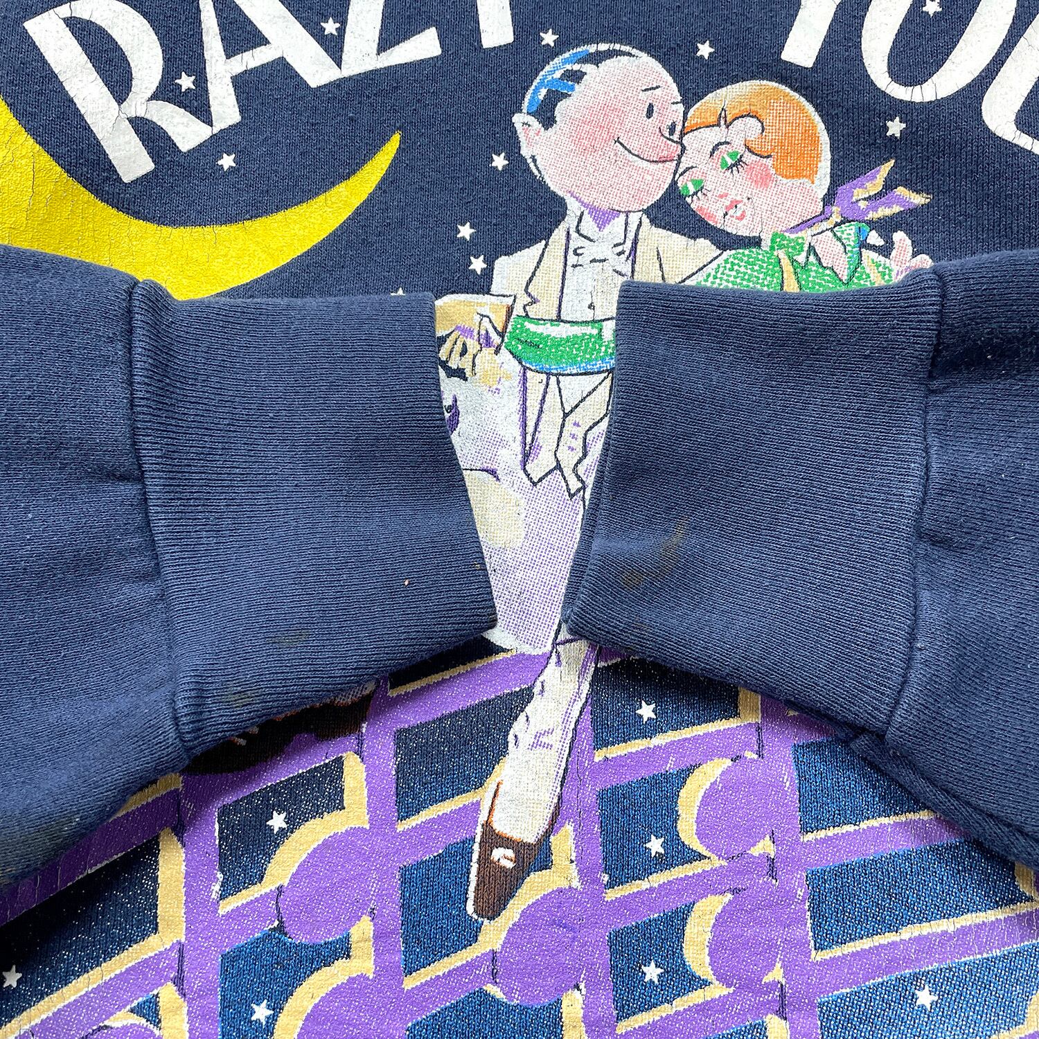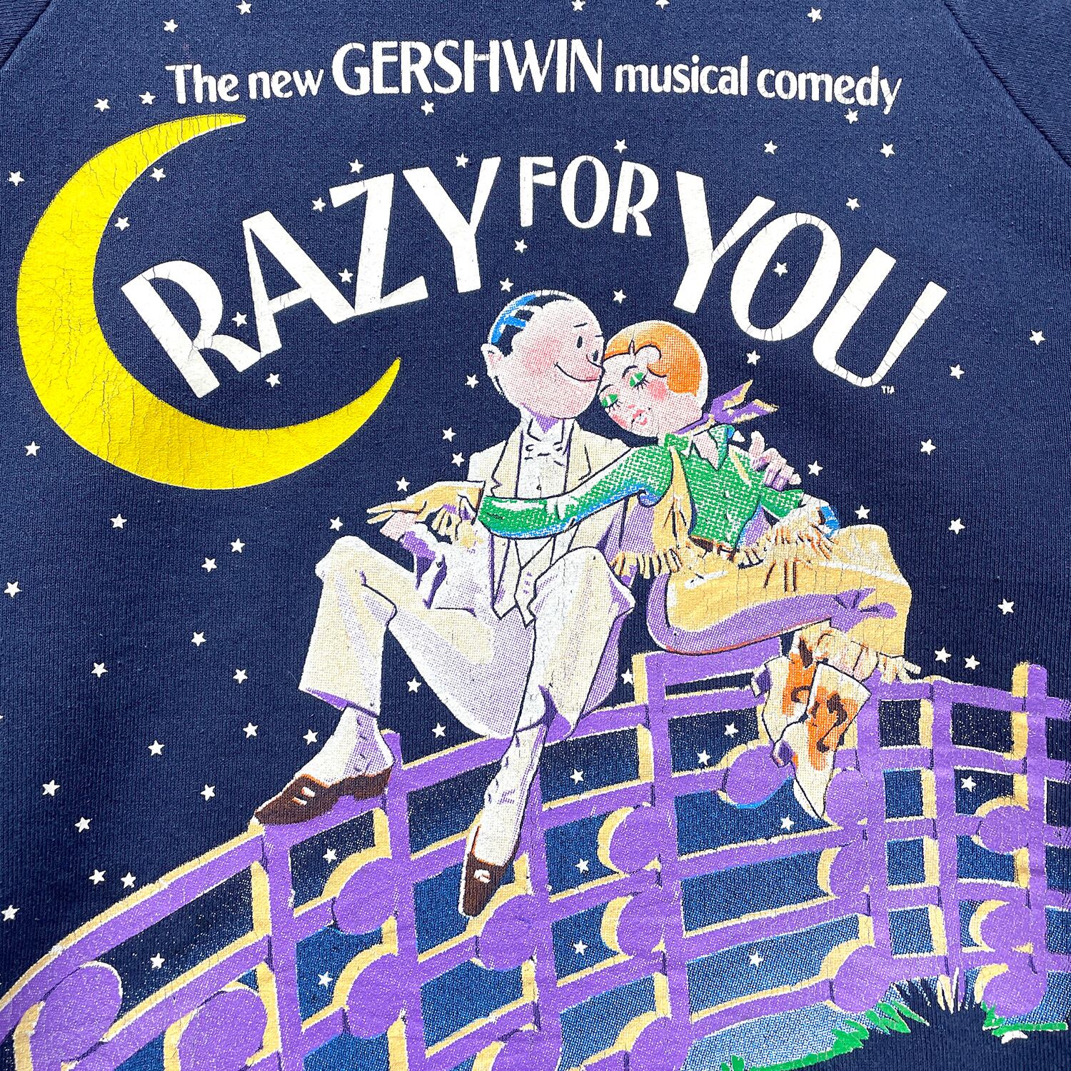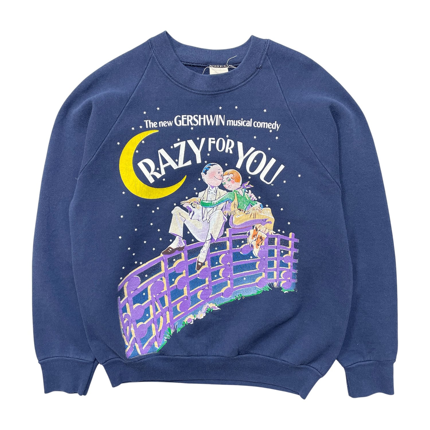 USA 古着 90S ミュージカル クレイジーフォーユー ヴィンテージ クルーネック スウェット トレーナー プリント ネイビー メンズM BD3407
