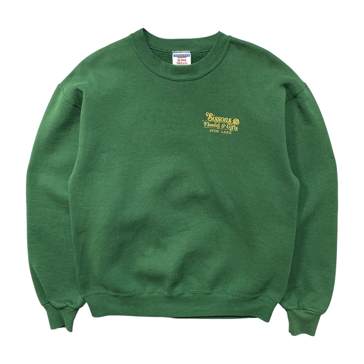 古着 90S USA製 企業系 シッソンズフラワーズ&ギフト ヴィンテージ スウェット トレーナー プリント グリーン メンズM BD3409