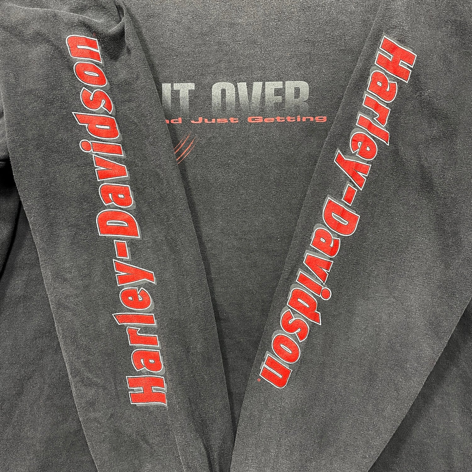 古着 USA製 HARLEY DAVIDSON ハーレーダビッドソン ヴィンテージ コットン 袖プリ 長袖Tシャツ ロンT メンズXL フェードブラック BA4818