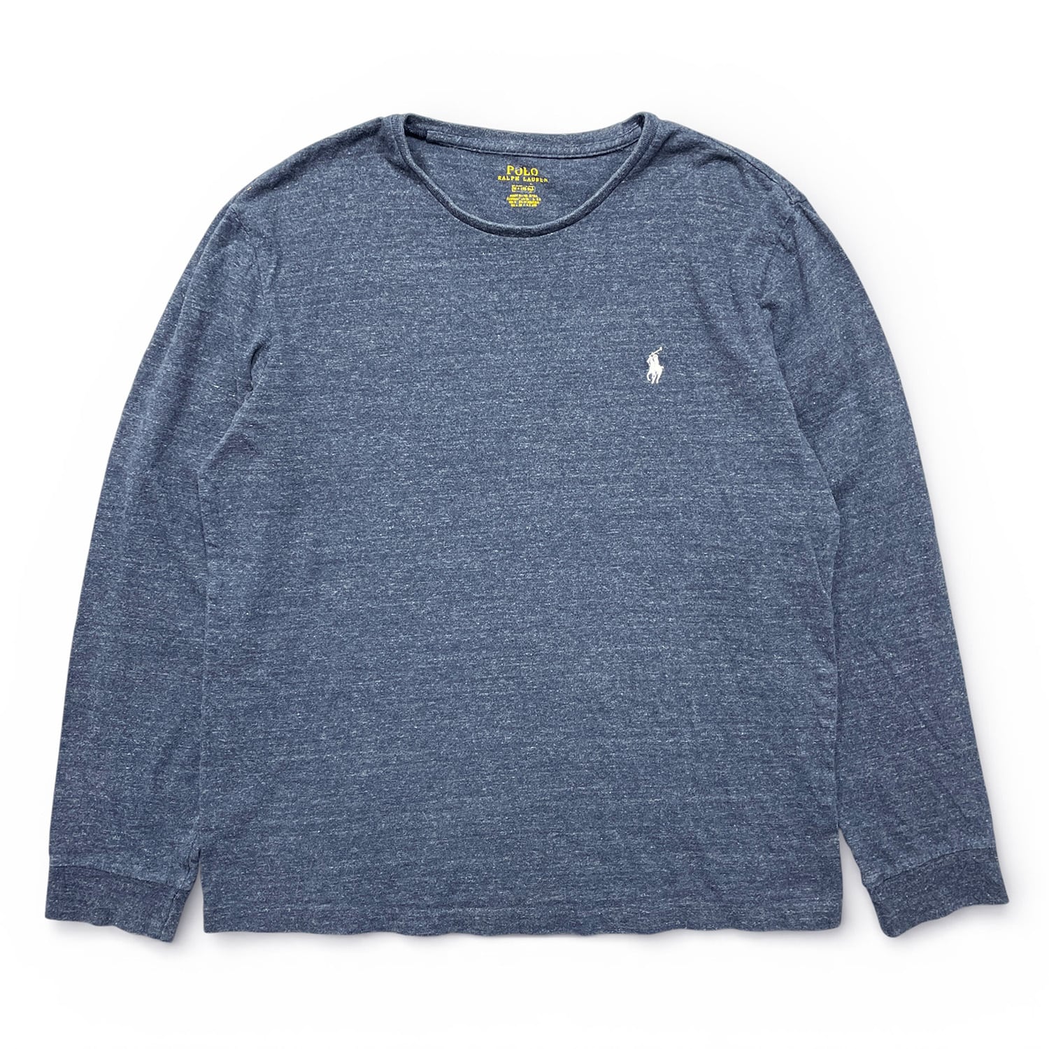 USA 古着 POLO RALPH LAUREN ポロ ラルフローレン コットン クルーネック 長袖Tシャツ ロンT メンズM ネイビー系 BA4823