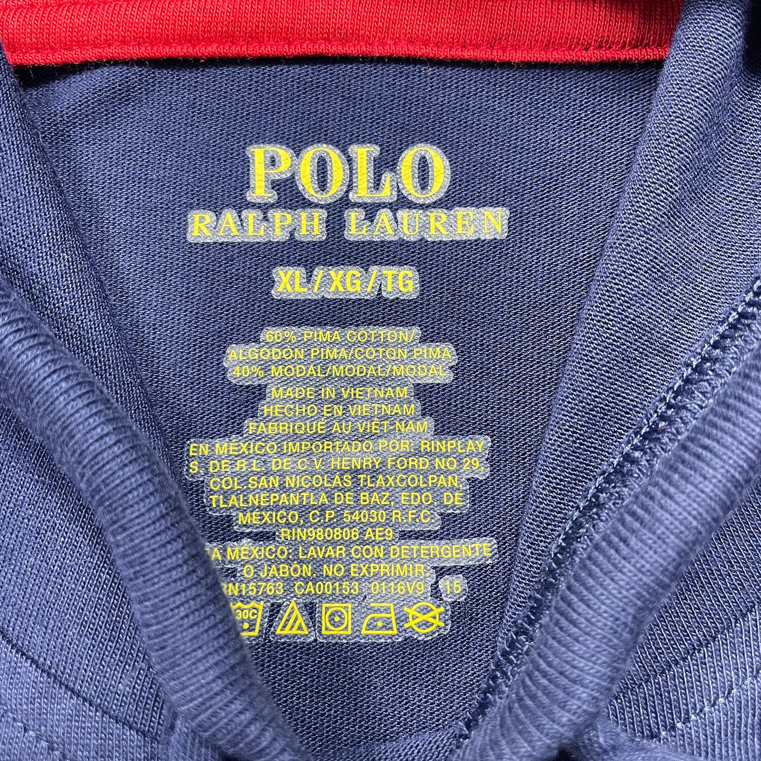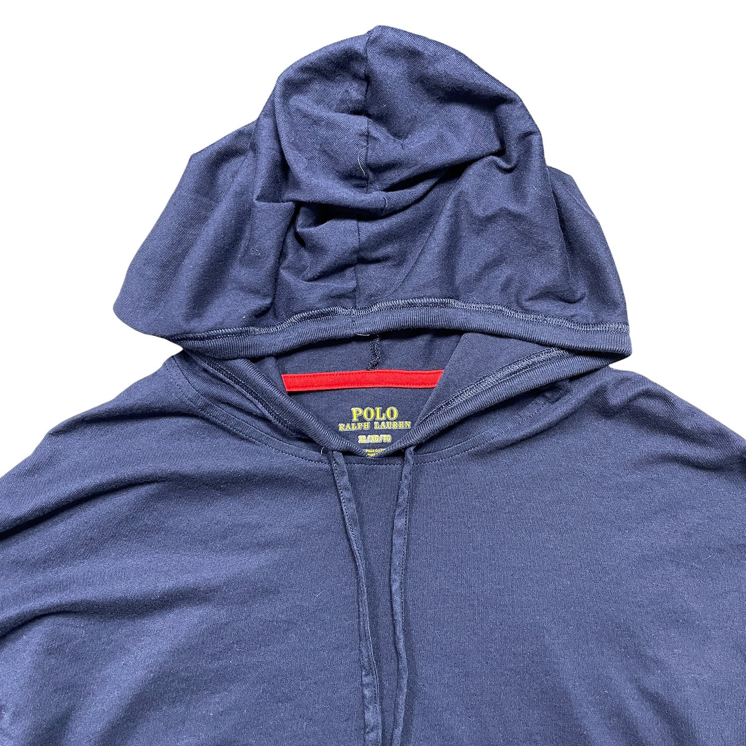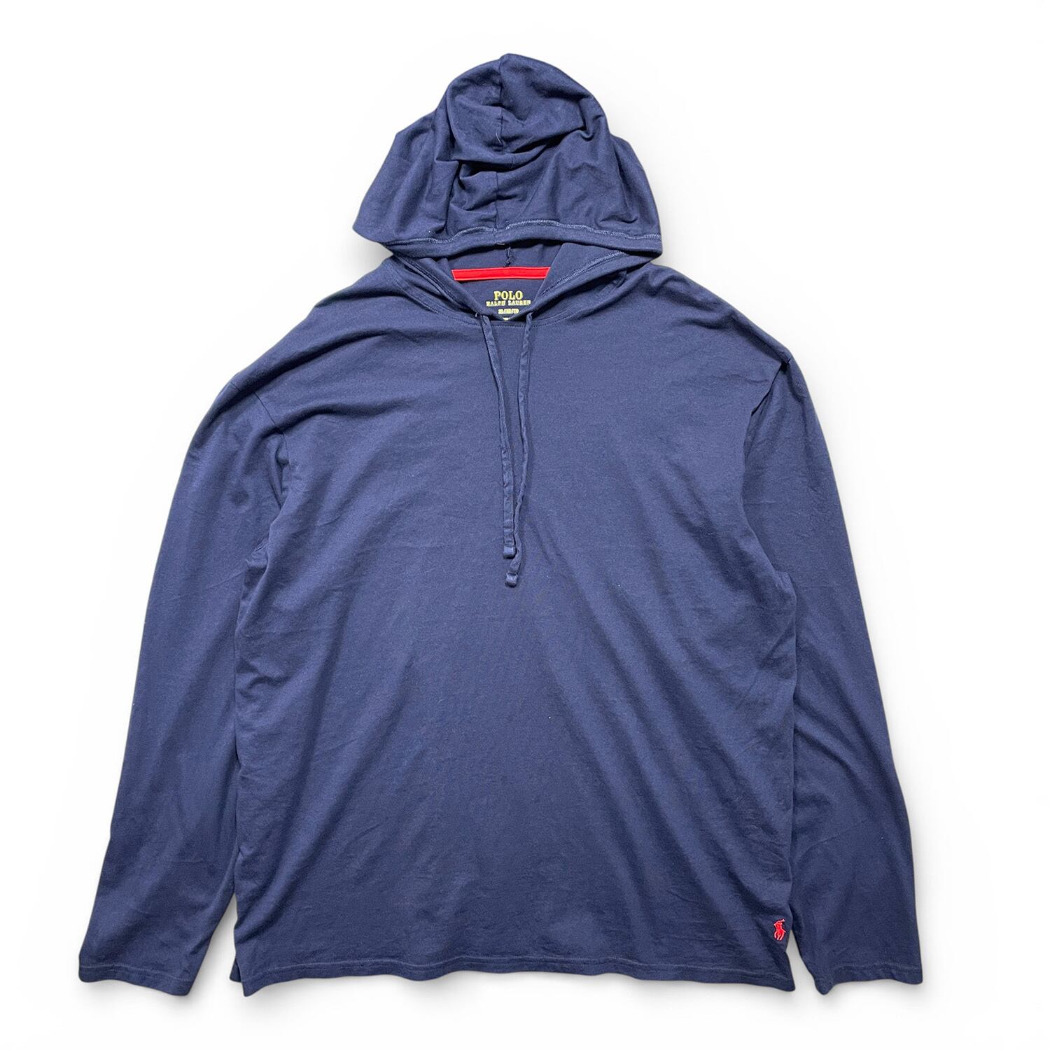 USA 古着 POLO RALPH LAUREN ポロ ラルフローレン コットン フーディー 長袖Tシャツ ロンT パーカ メンズXL ネイビー BA4828