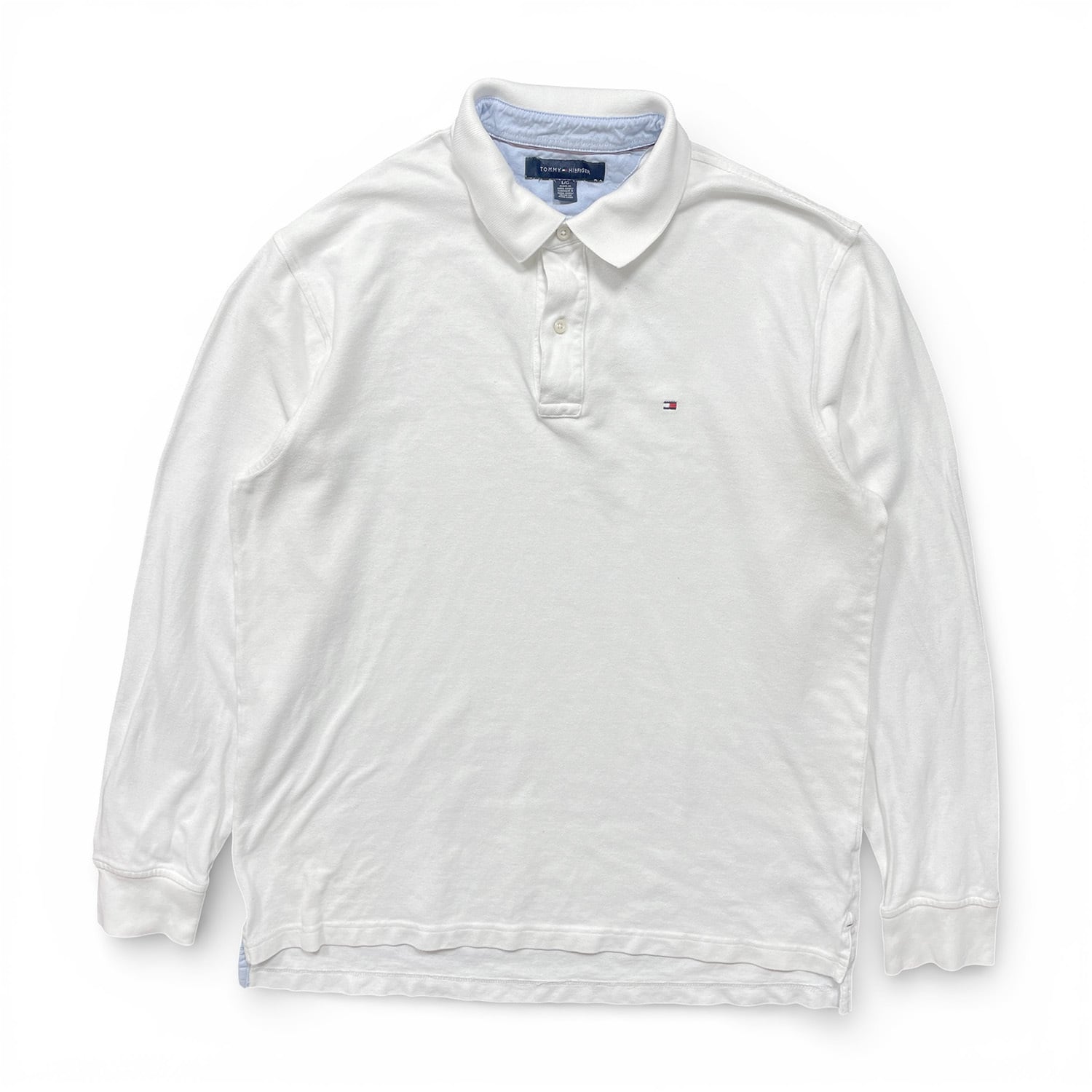 USA 古着 TOMMY HILFIGER トミーヒルフィガー 鹿の子コットン 長袖 ポロシャツ ホワイト 白色 メンズL BC0180