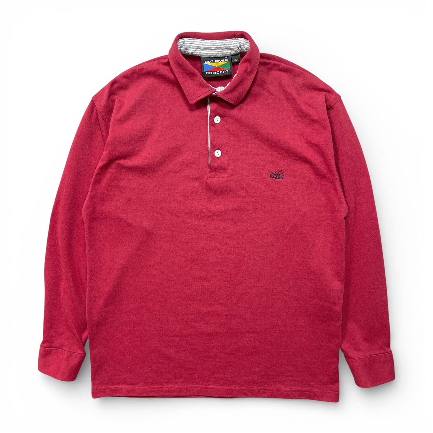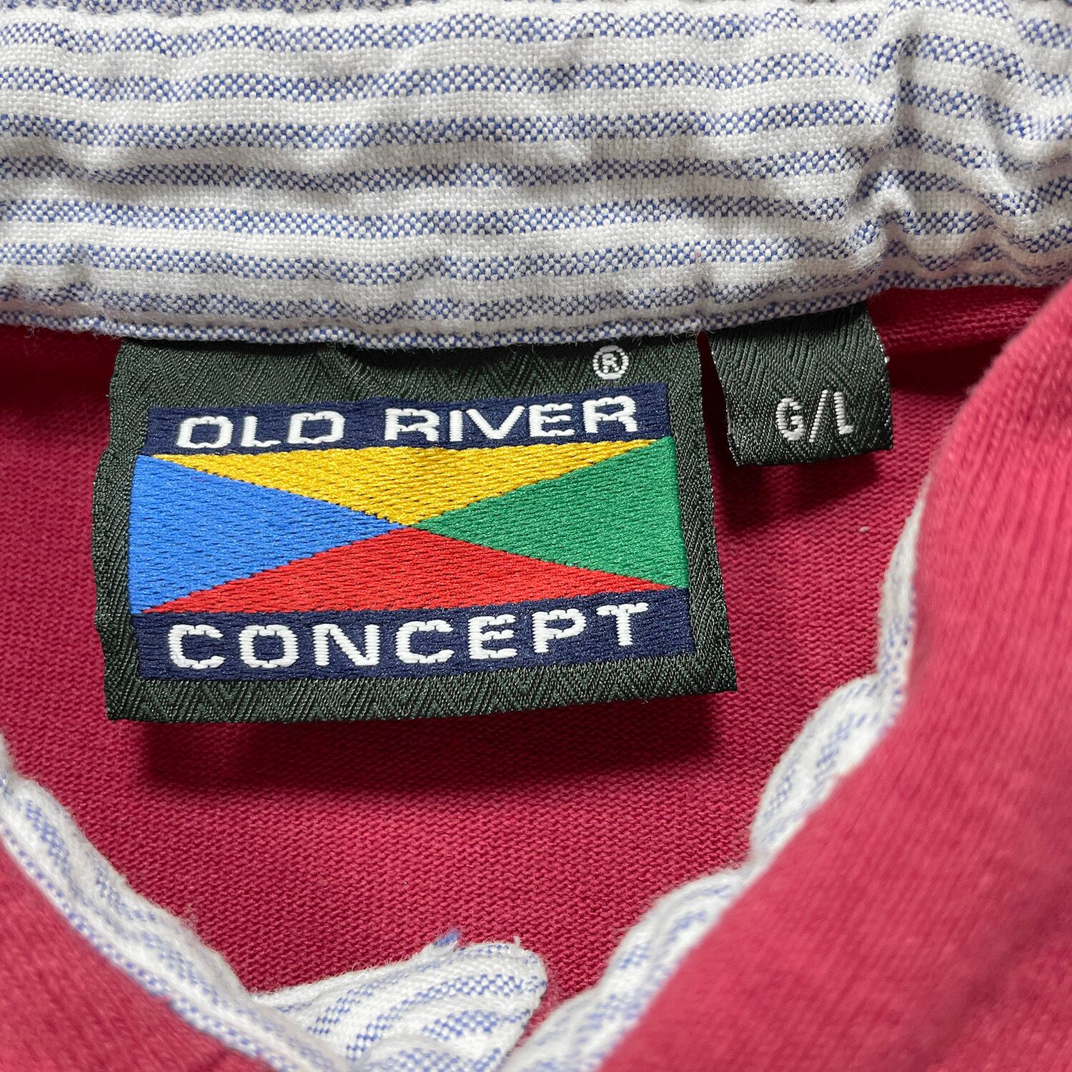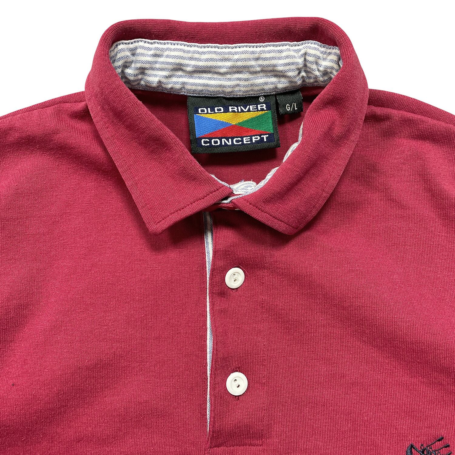 USA 古着 90S カナダ製 OLD RIVER CONCEPT ヴィンテージ オールドリバー カヌー コットン/ポリ 長袖 ポロシャツ メンズL BC0186