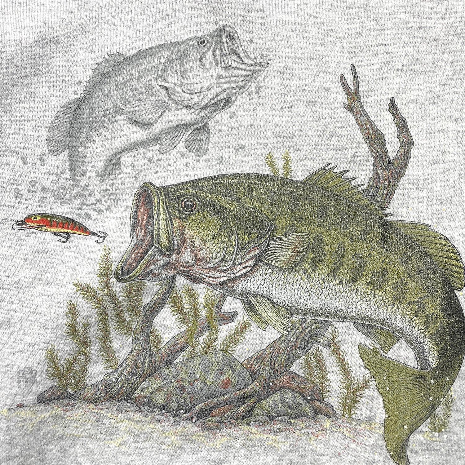 USA 古着 90S ブラックバス ヴィンテージ クルーネック スウェット トレーナー プリント グレー メンズXL BD3412