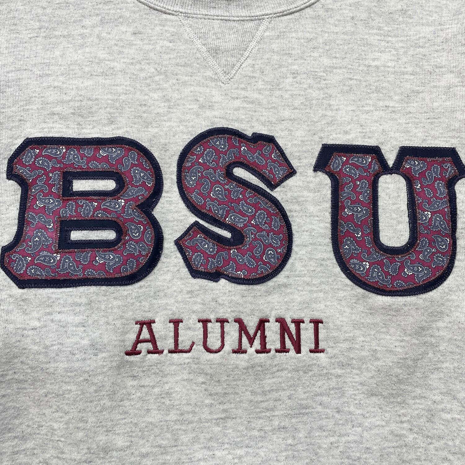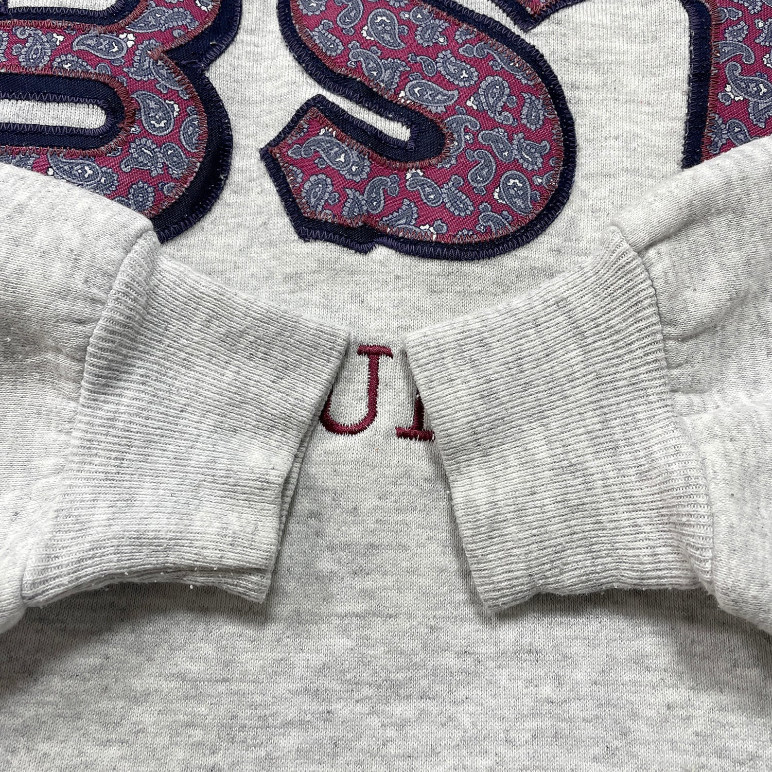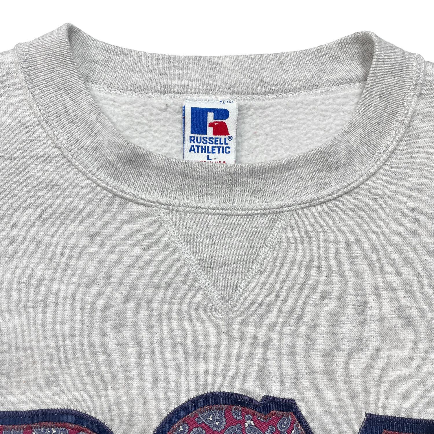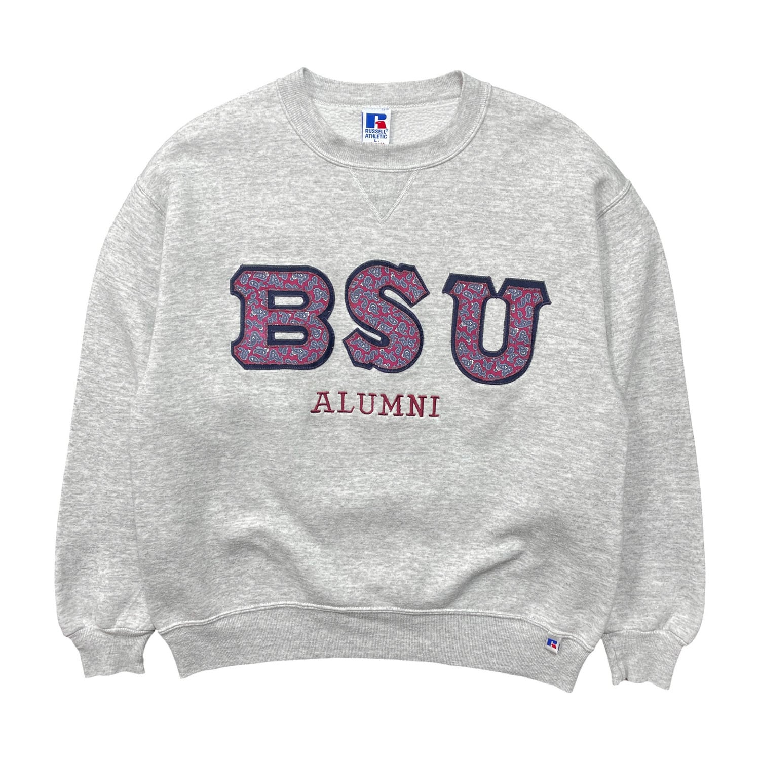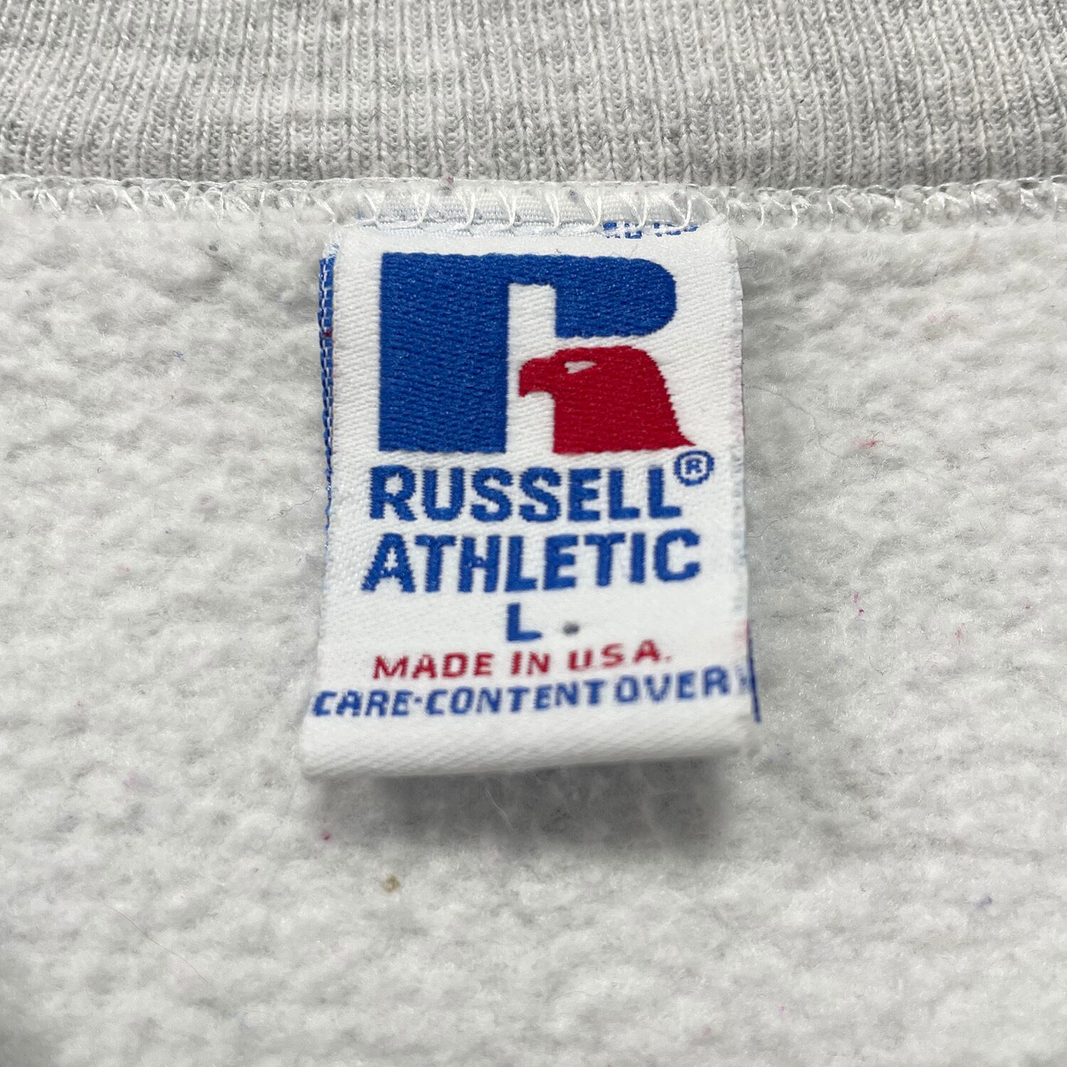 古着 USA製 90S Russell ラッセル ボイシ州立大学 カレッジ 前V クルーネック ヴィンテージ スウェット トレーナー 刺繍 グレー メンズL BD3414