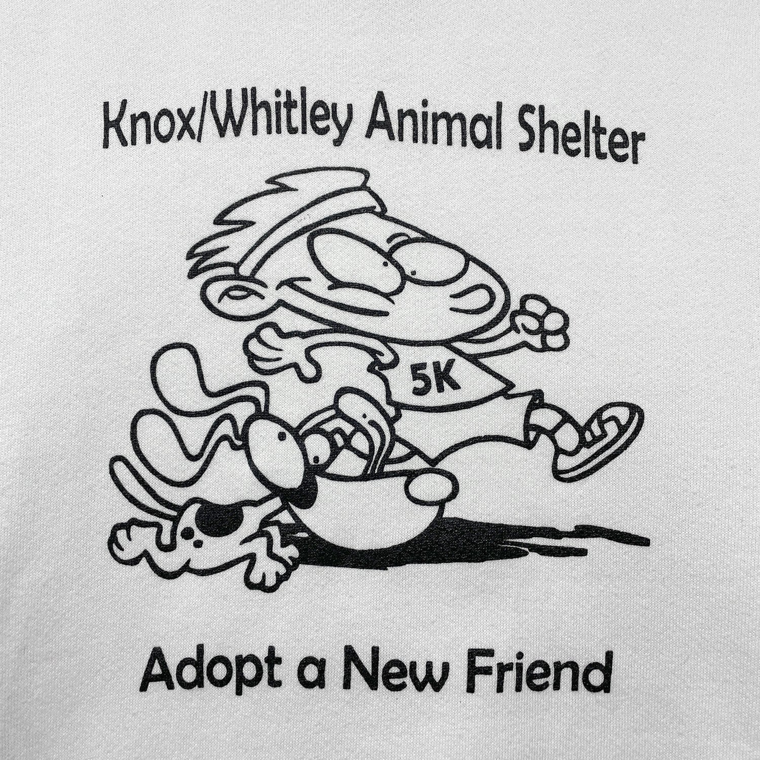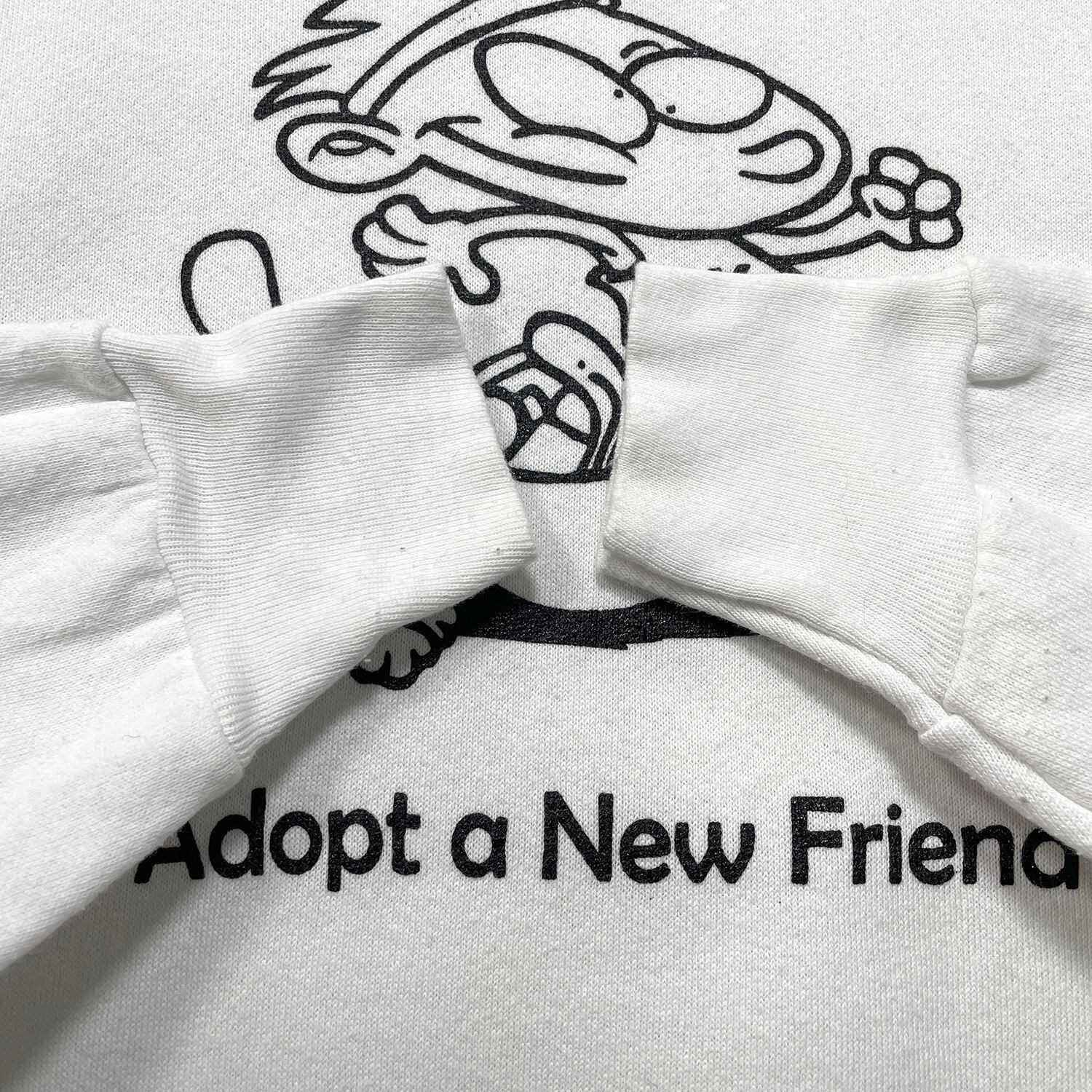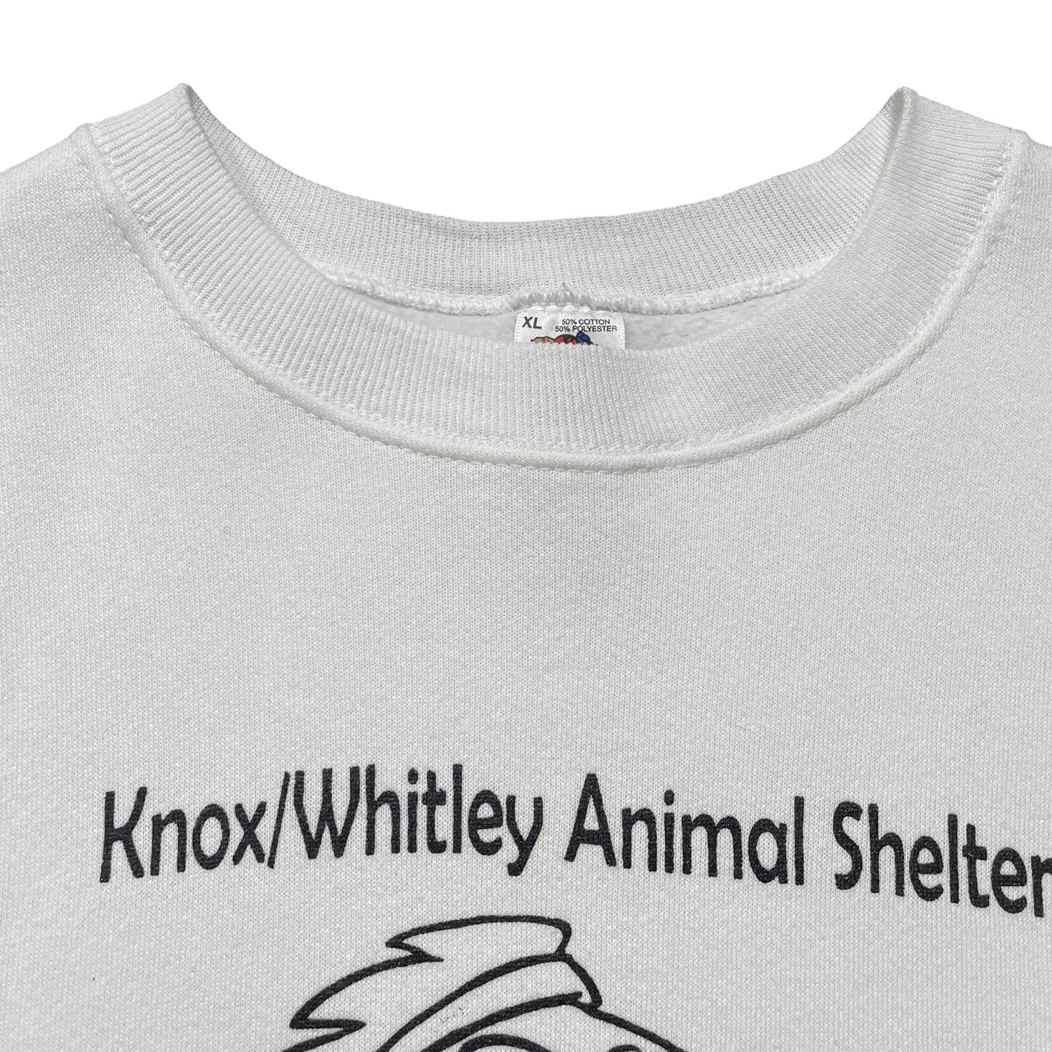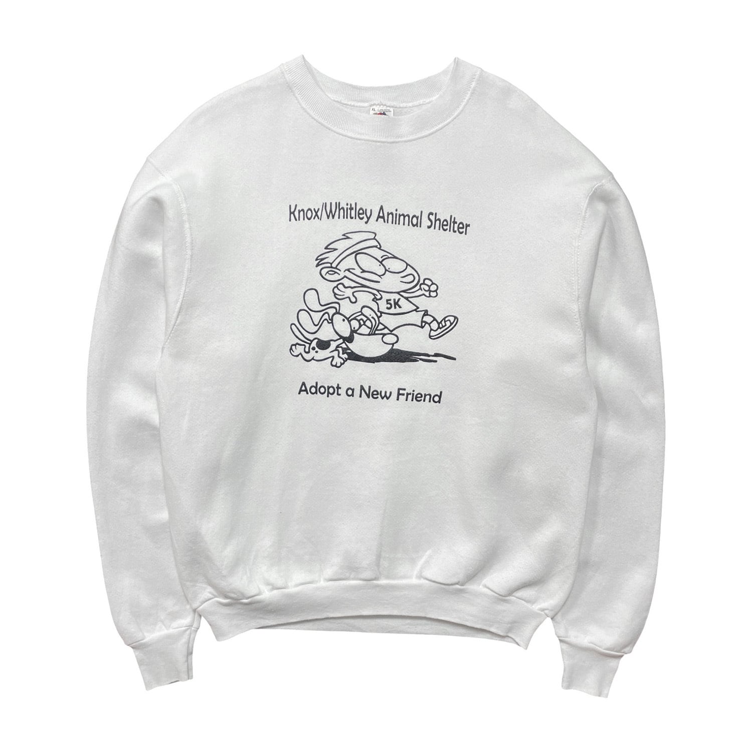 古着 USA製 90S 動物愛護 マラソン大会 クルーネック ヴィンテージ スウェット トレーナー プリント ホワイト メンズXL BD3416