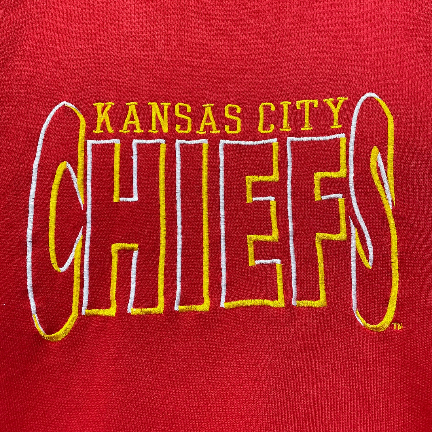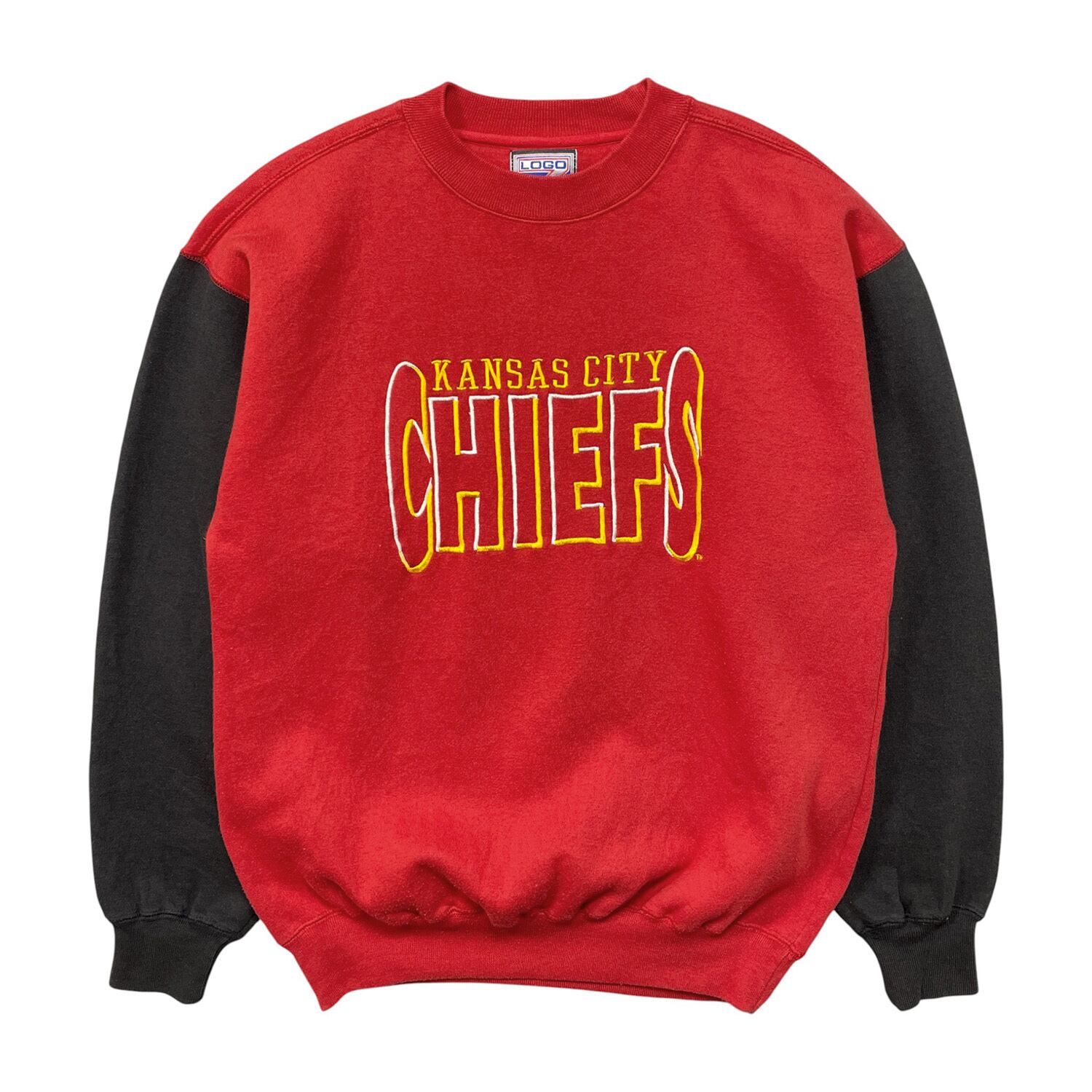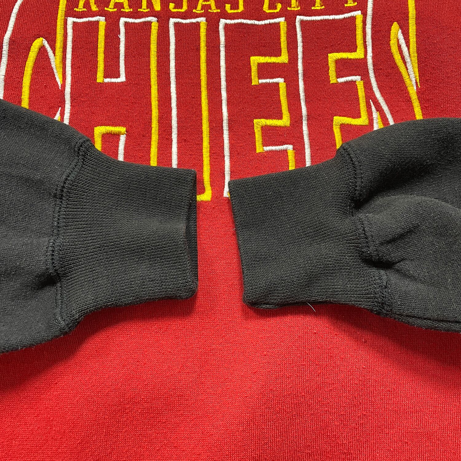 USA 古着 NFL カンザスシティチーフス クルーネック スウェット トレーナー ロゴ 刺繍 レッド ブラック バイカラー メンズL BD3458