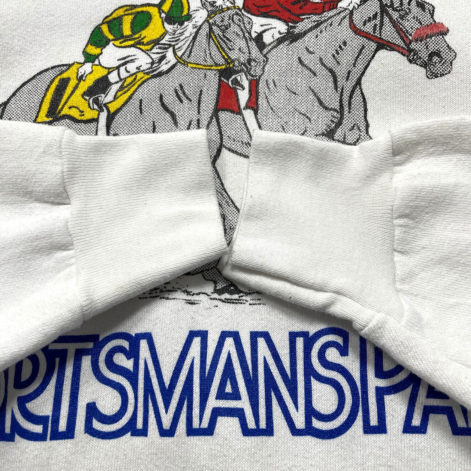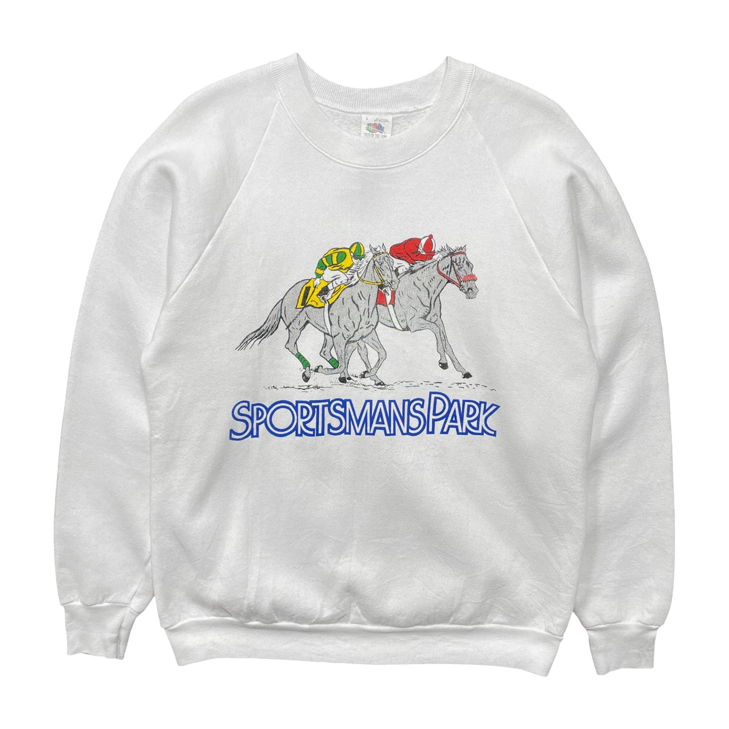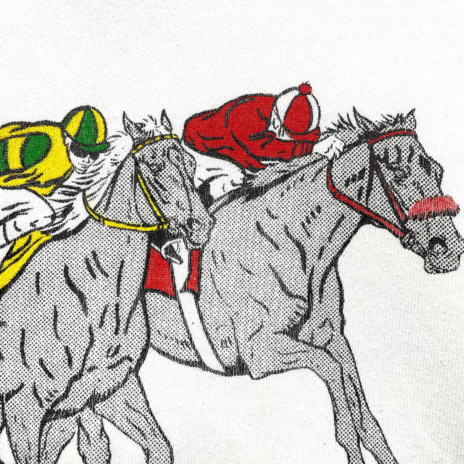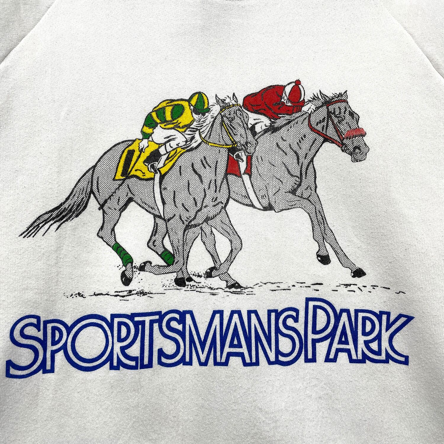 古着 USA製 90S スポーツマンズパーク 競馬場 クルーネック ヴィンテージ スウェット トレーナー プリント ホワイト メンズL BD3461