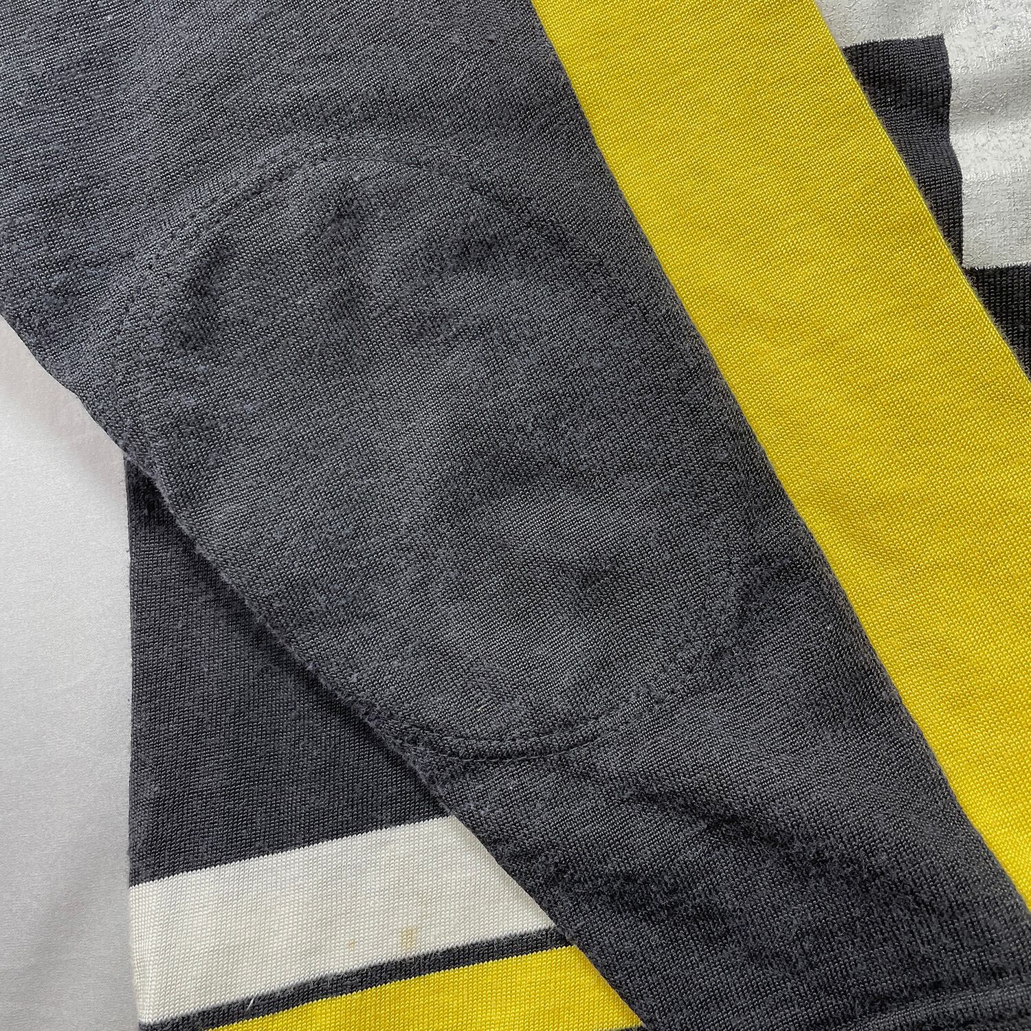 左袖・裾の白い箇所などに薄汚れがございます。その他は特に着用に大きな問題はございません。