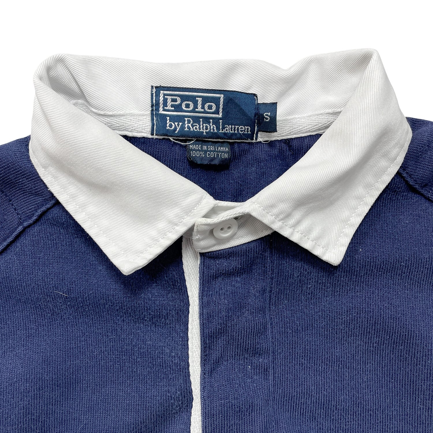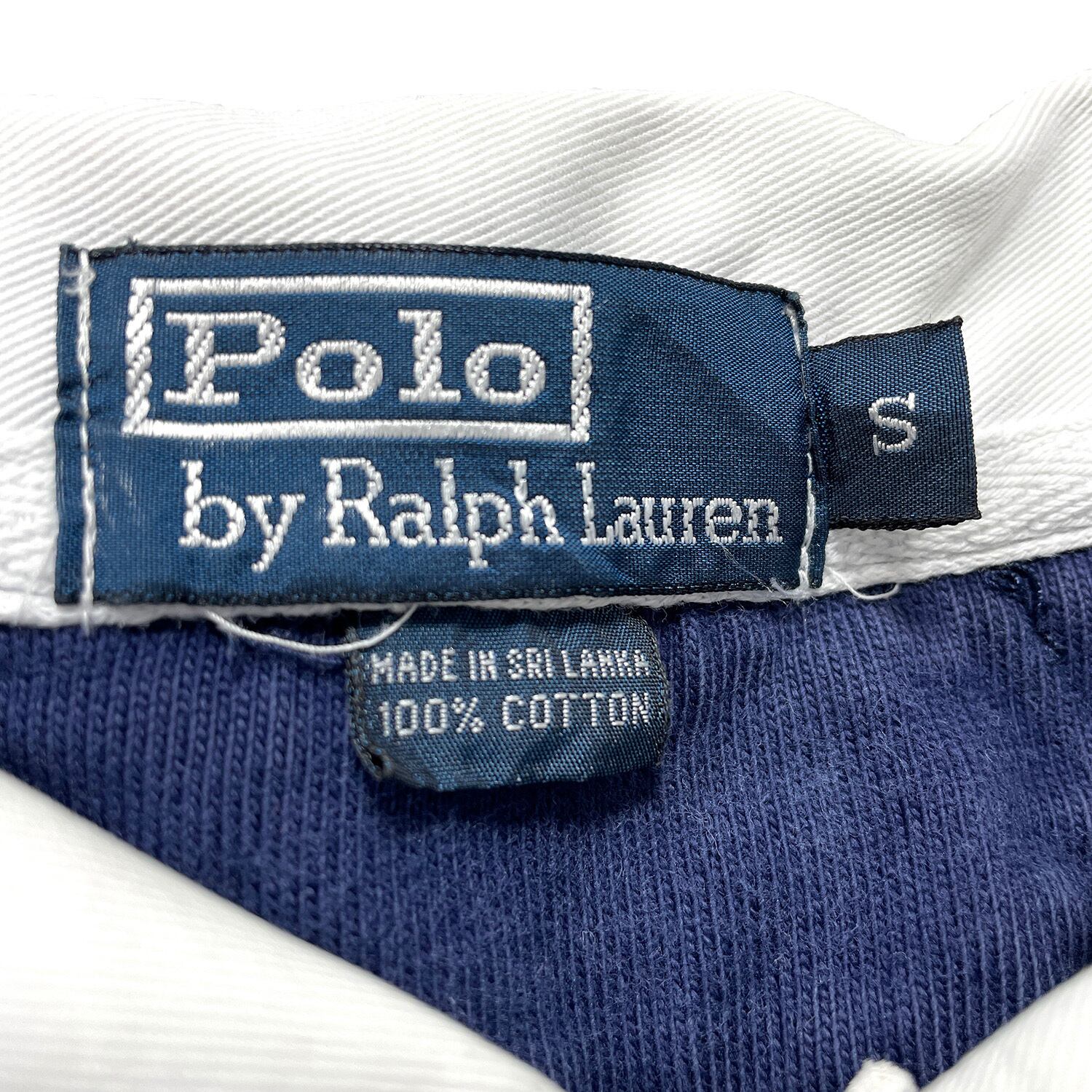 USA 古着 Polo by Ralph Lauren ポロ バイ ラルフローレン コットン 長袖 ラガーシャツ ポロシャツ メンズS ネイビー BC0192
