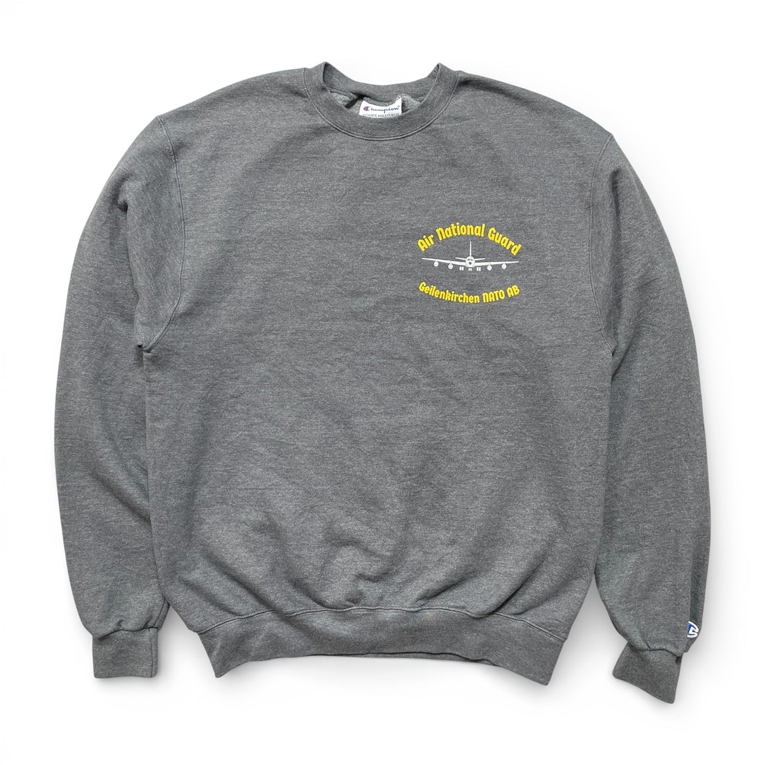 USA 古着 Champion チャンピオン 州兵航空隊 NATO KC-135 ストラトタンカー クルーネック スウェット トレーナー プリント チャコール メンズM BD3475