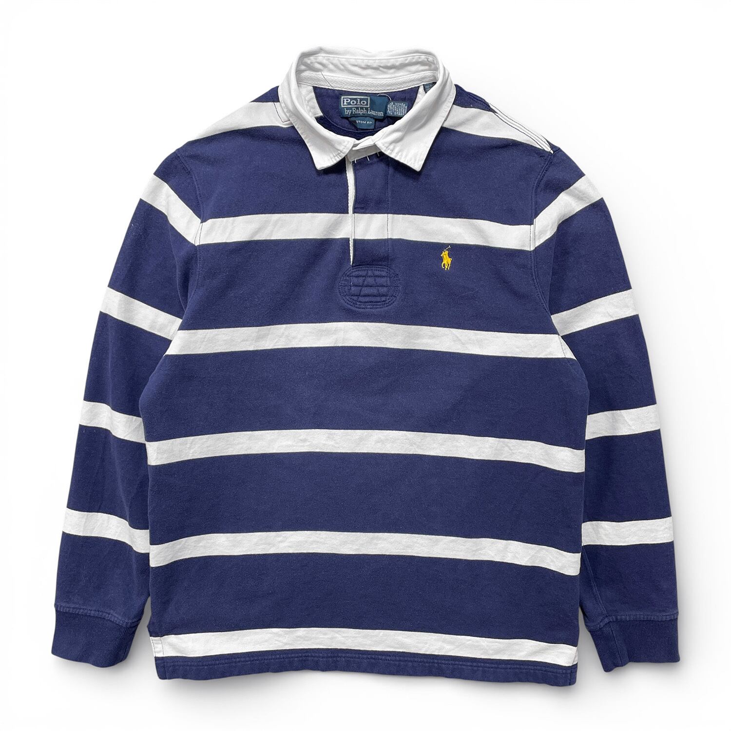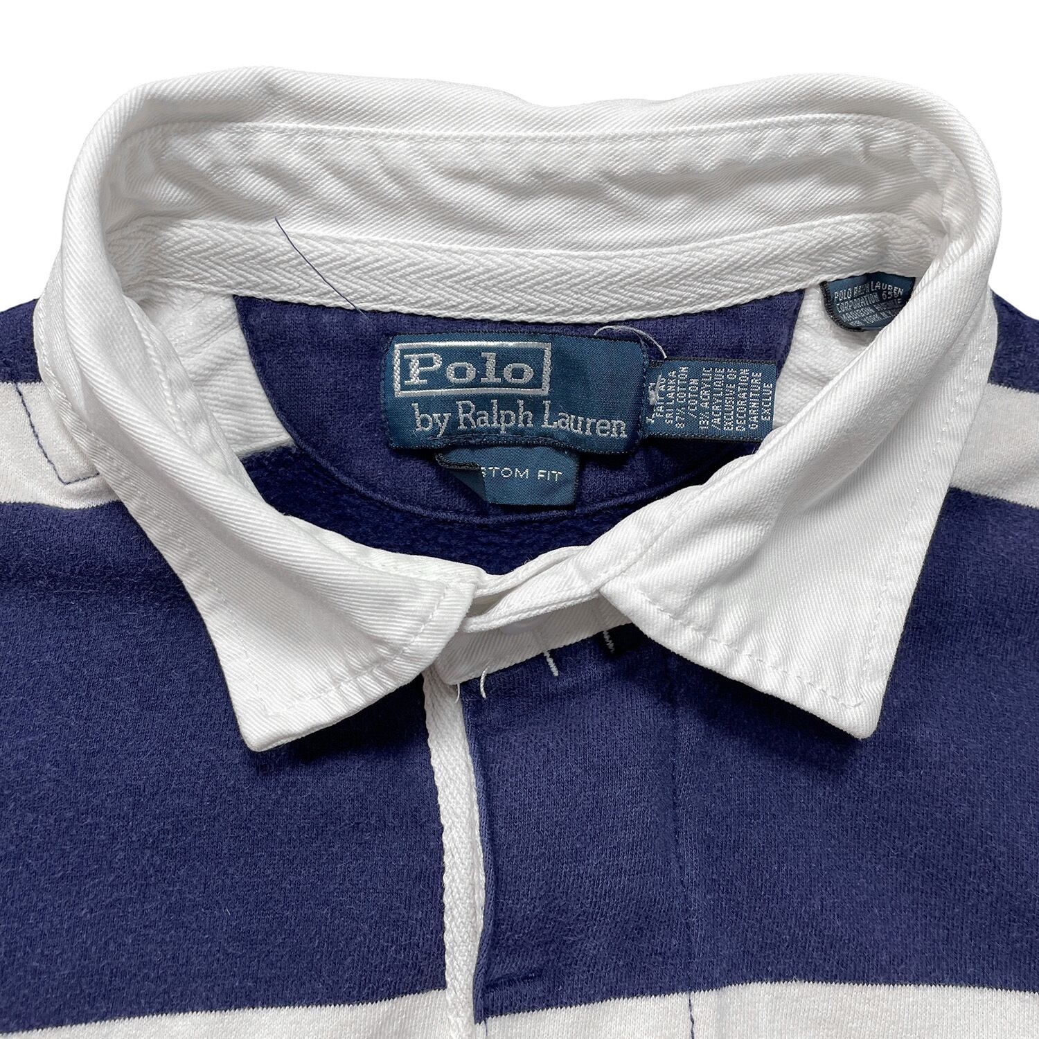 USA 古着 Polo by Ralph Lauren ポロ バイ ラルフローレン コットン 長袖 ラガーシャツ ポロシャツ メンズL ボーダー柄 BC0196