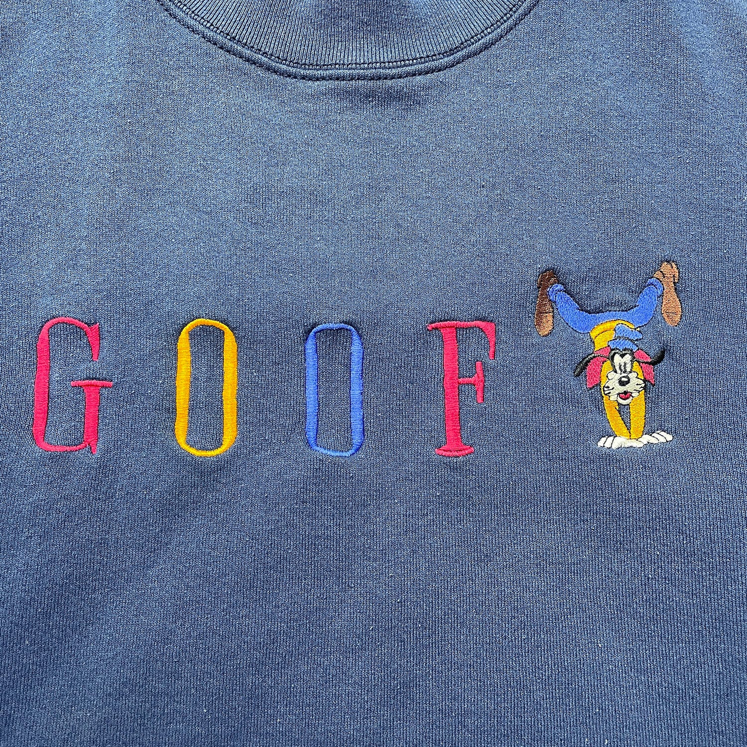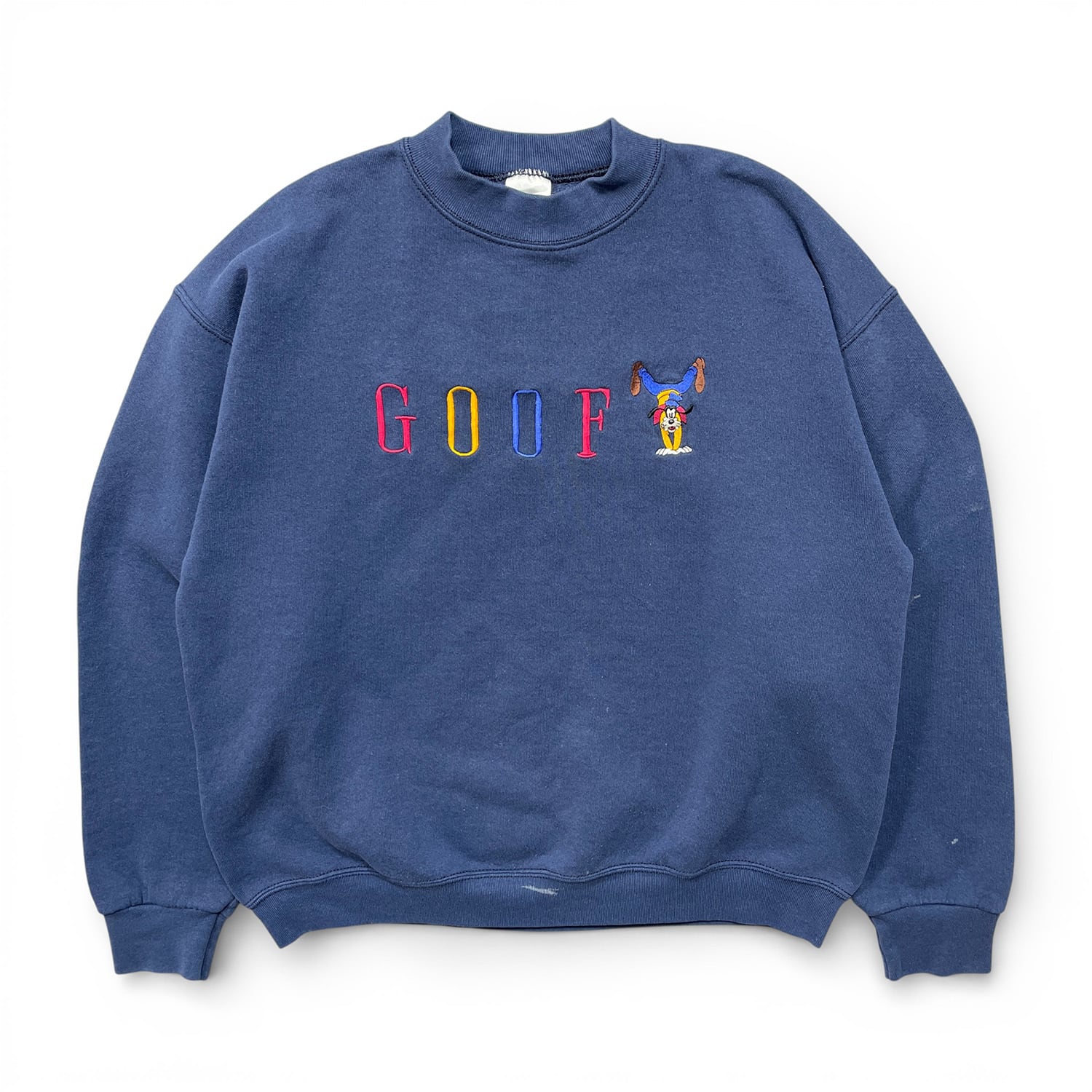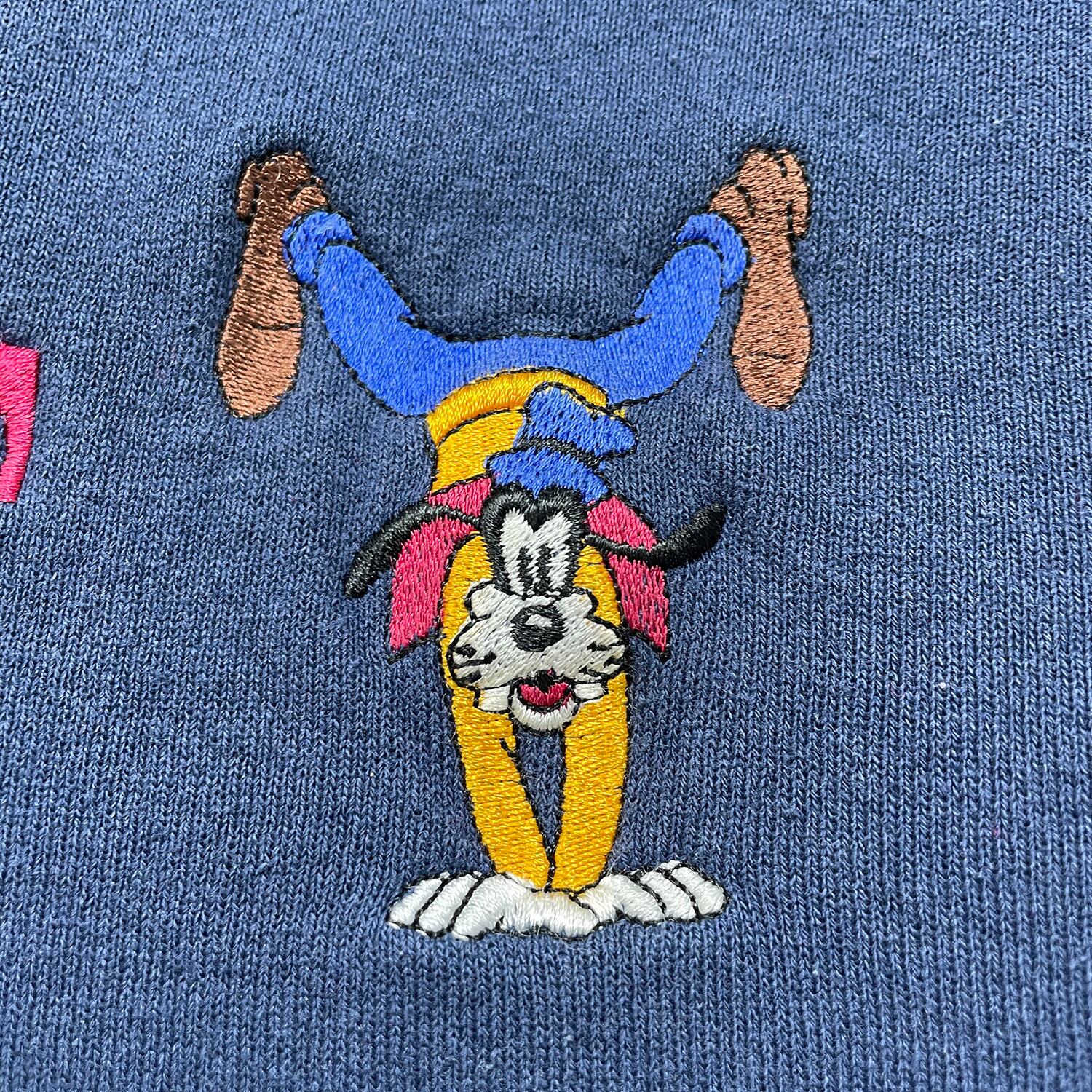 古着 USA製 90S Disney ディズニー 逆立ちグーフィー ヴィンテージ クルーネック スウェット トレーナー 刺繍 ネイビー メンズXL BD3476
