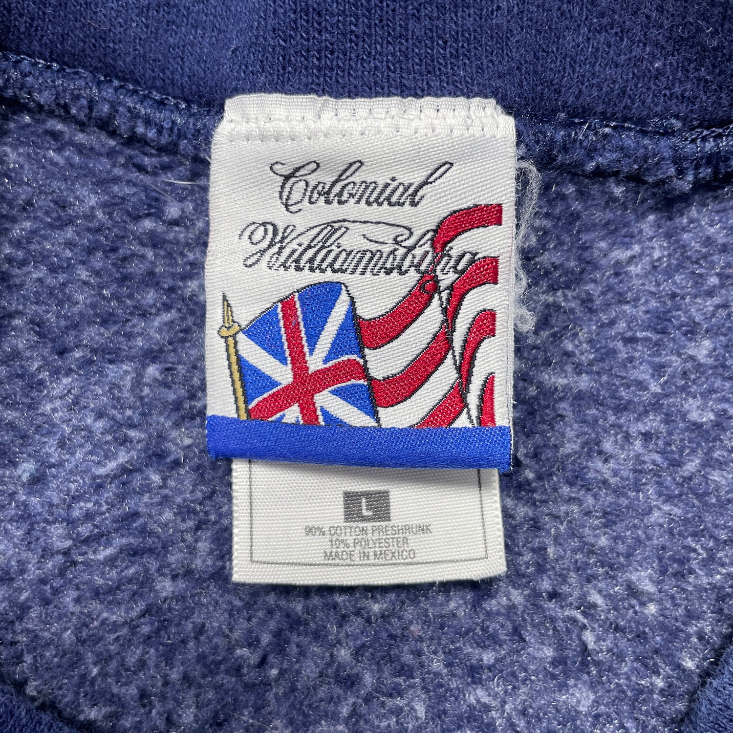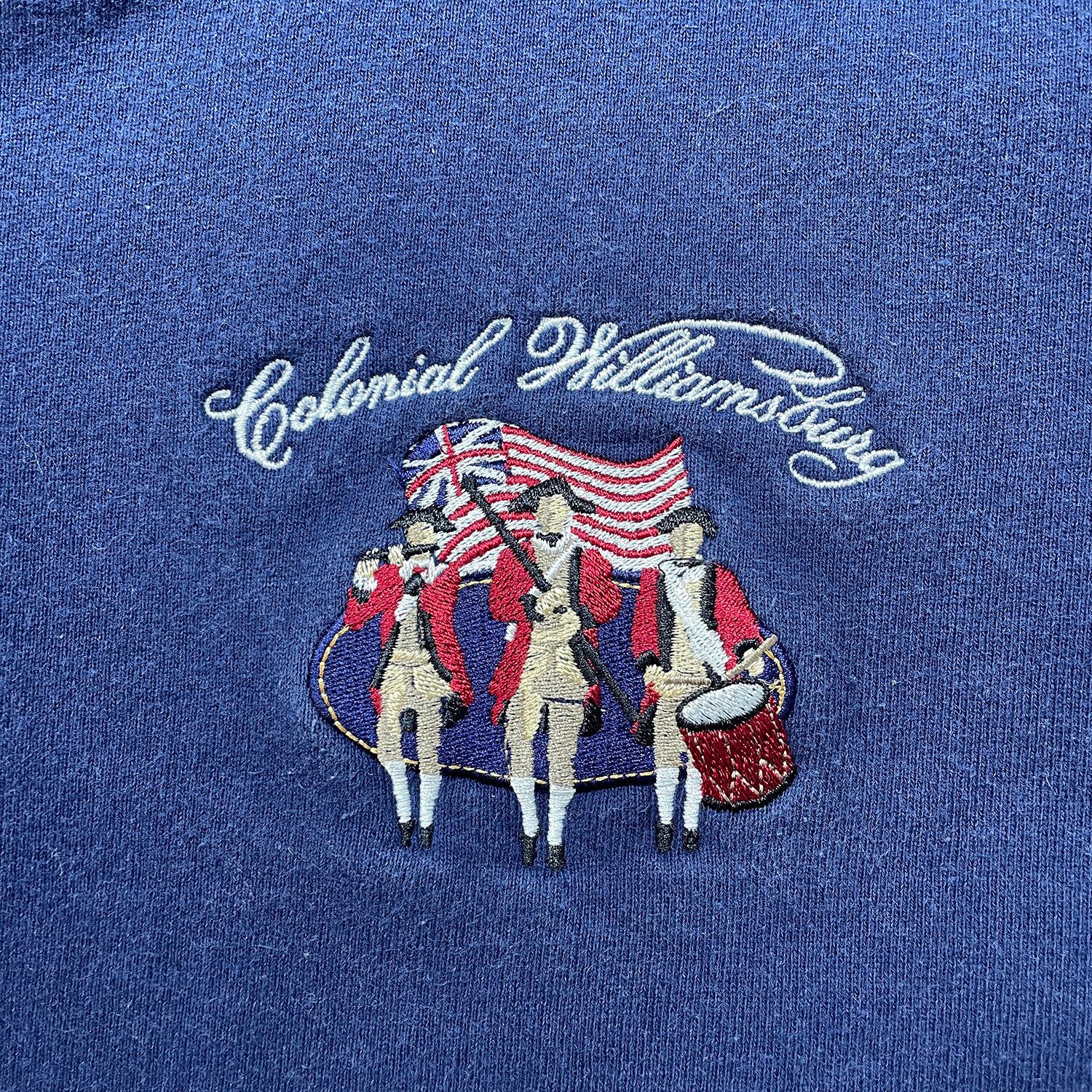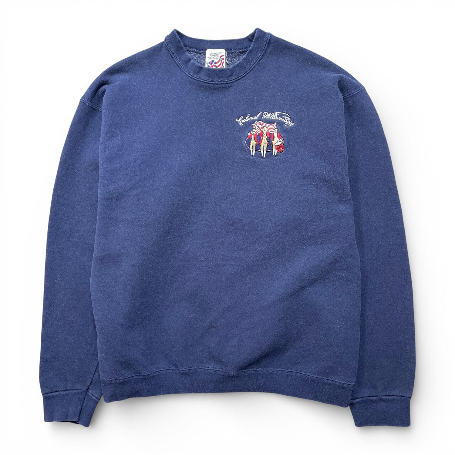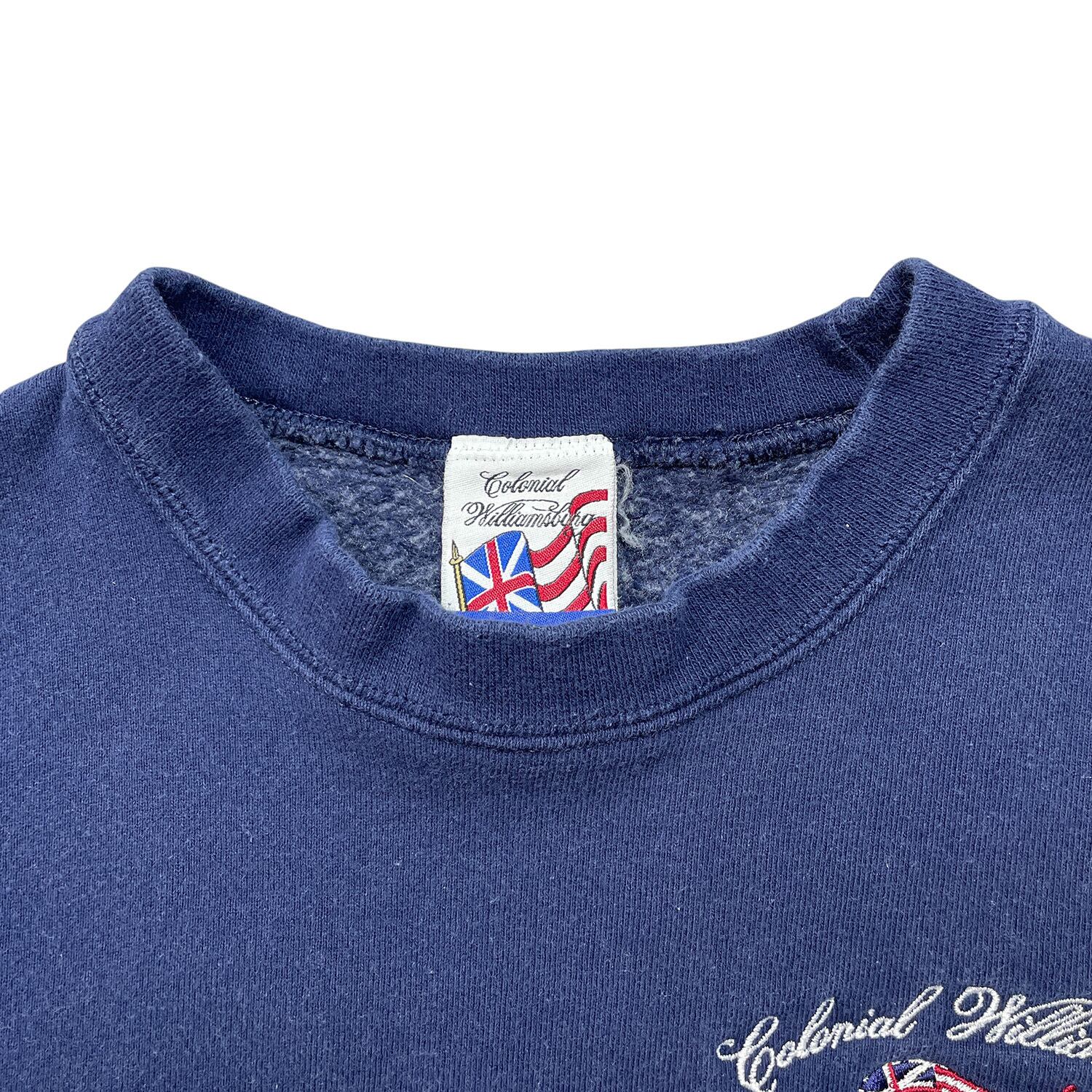 USA 古着 90S 00S Colonial Williamsburg コロニアルウィリアムズバーグ 博物館 クルーネック スウェット トレーナー 刺繍 ネイビー メンズL BD3512
