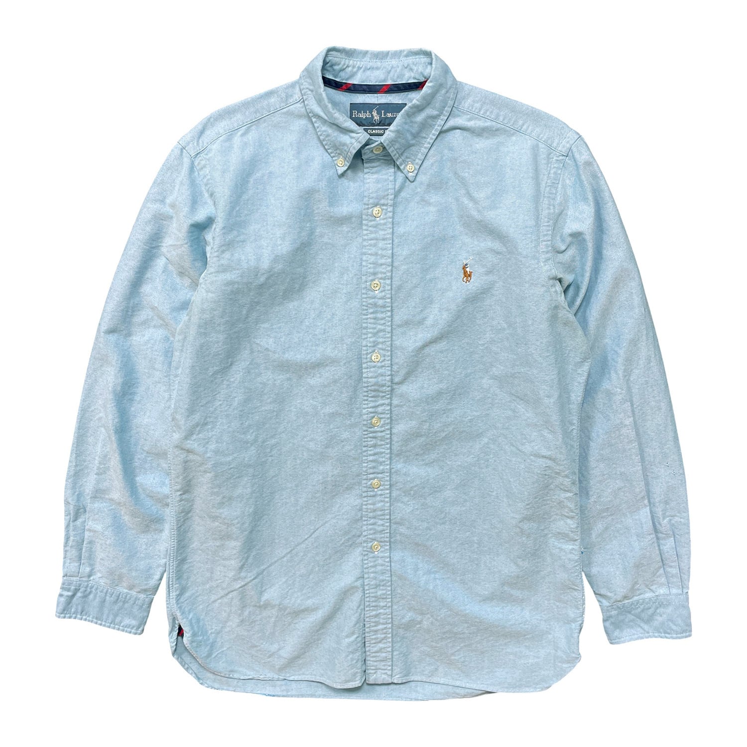 USA 古着 Ralph Lauren ラルフローレン オックスフォード コットン 長袖シャツ ボタンダウン メンズM ブルー系 カジュアルシャツ BG1350