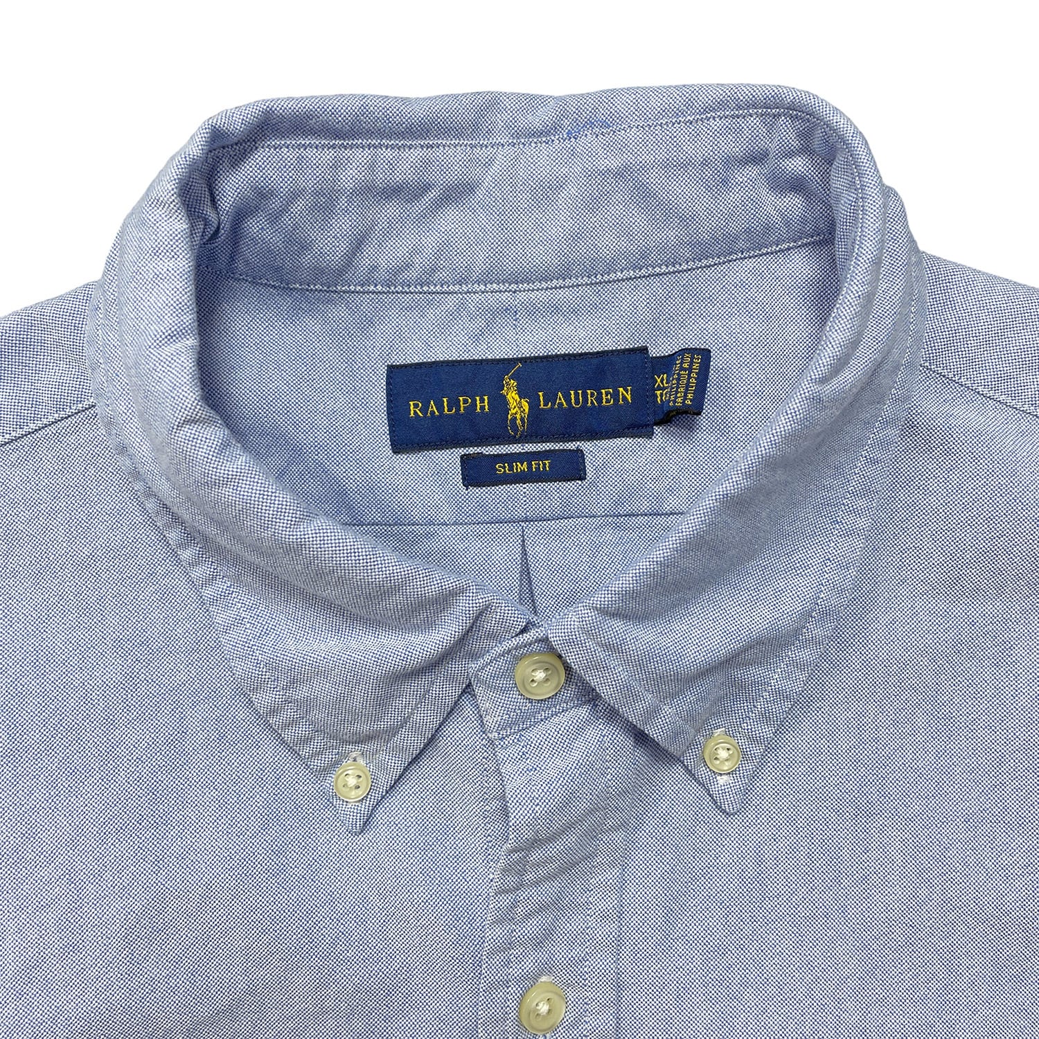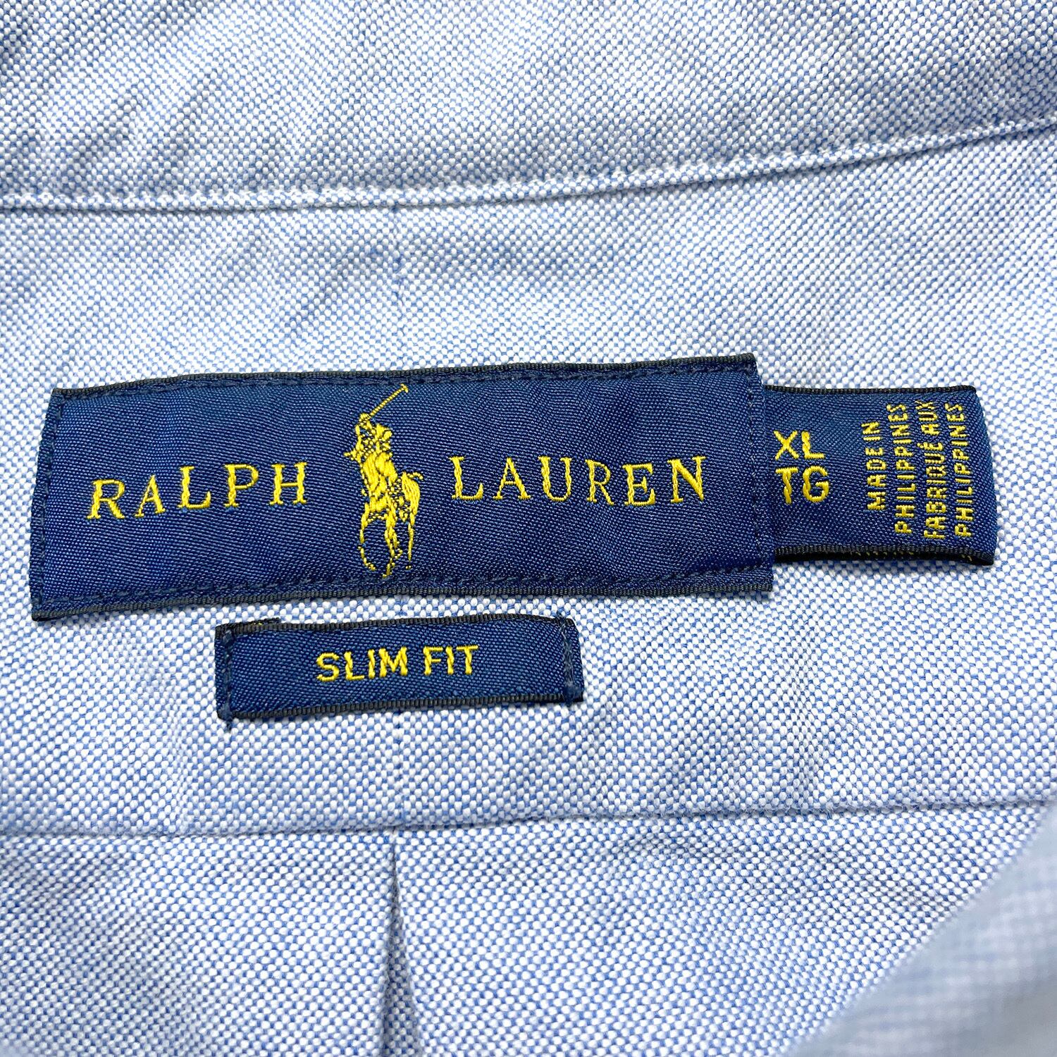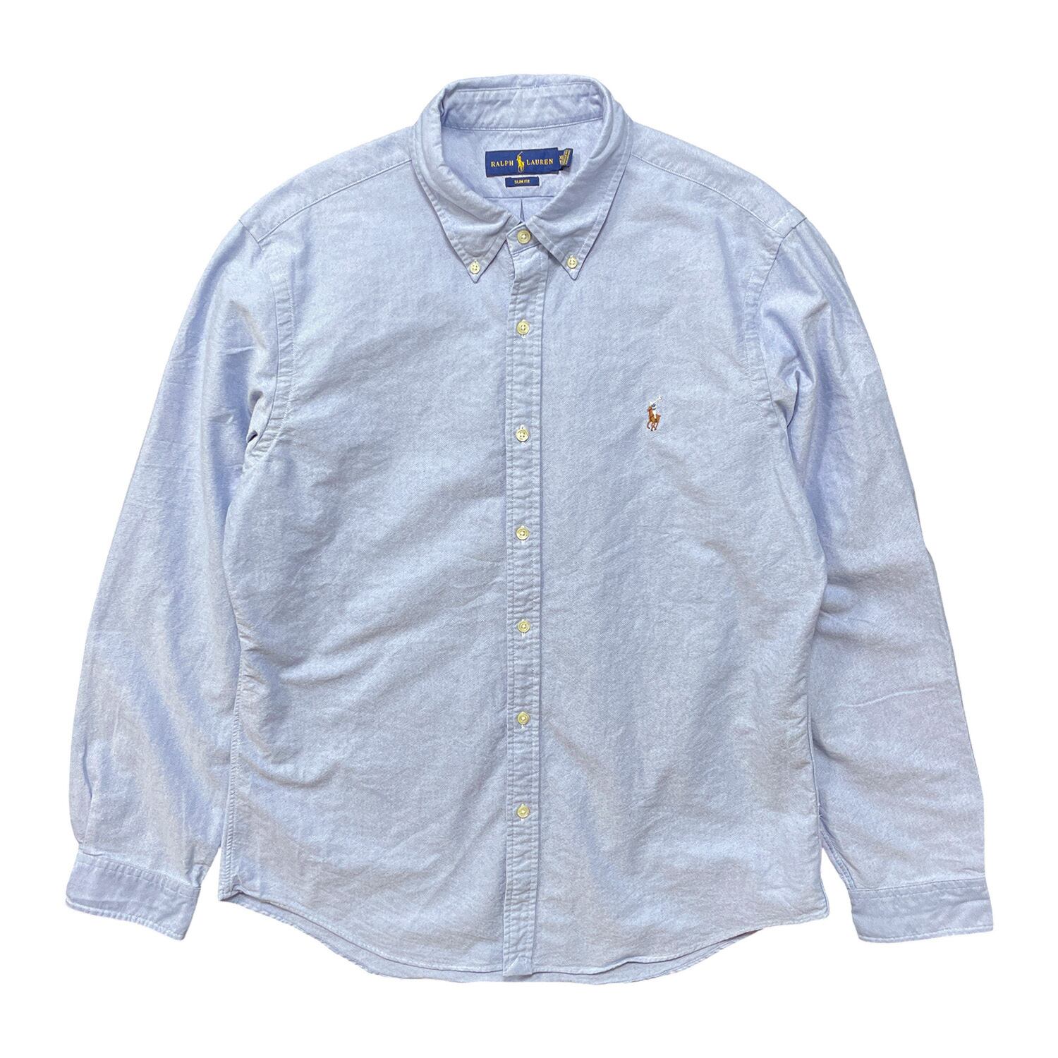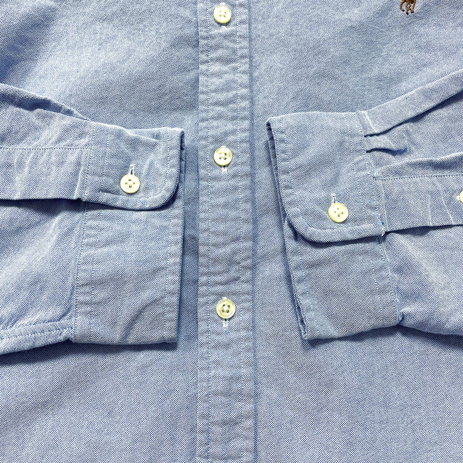 USA 古着 Ralph Lauren ラルフローレン オックスフォード コットン 長袖シャツ ボタンダウン メンズXL ブルー カジュアルシャツ BG1351