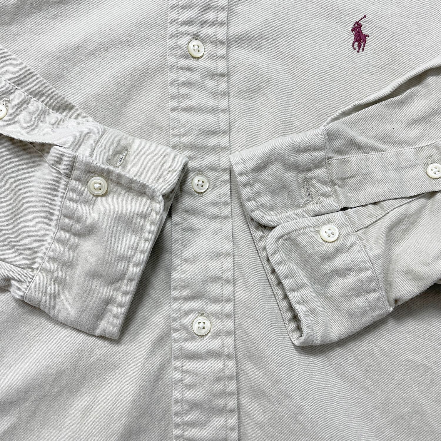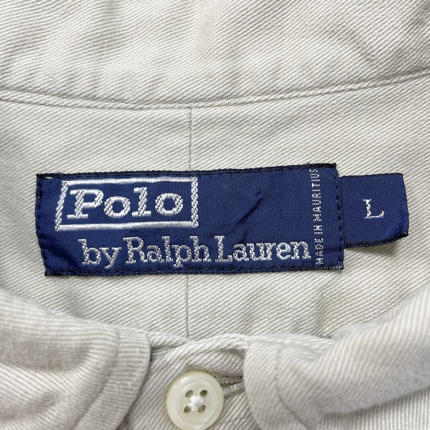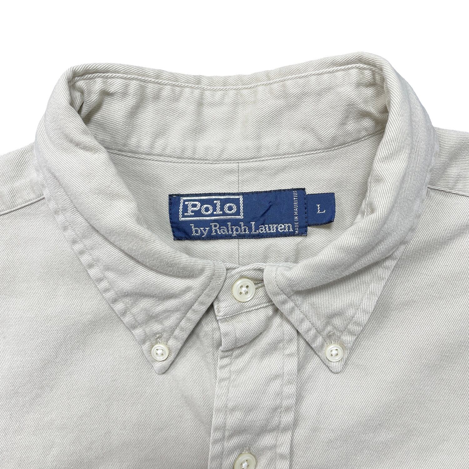 USA 古着 Polo by Ralph Lauren 90S ポロ バイ ラルフローレン ツイルコットン 長袖シャツ ボタンダウン メンズL ベージュ BG1352