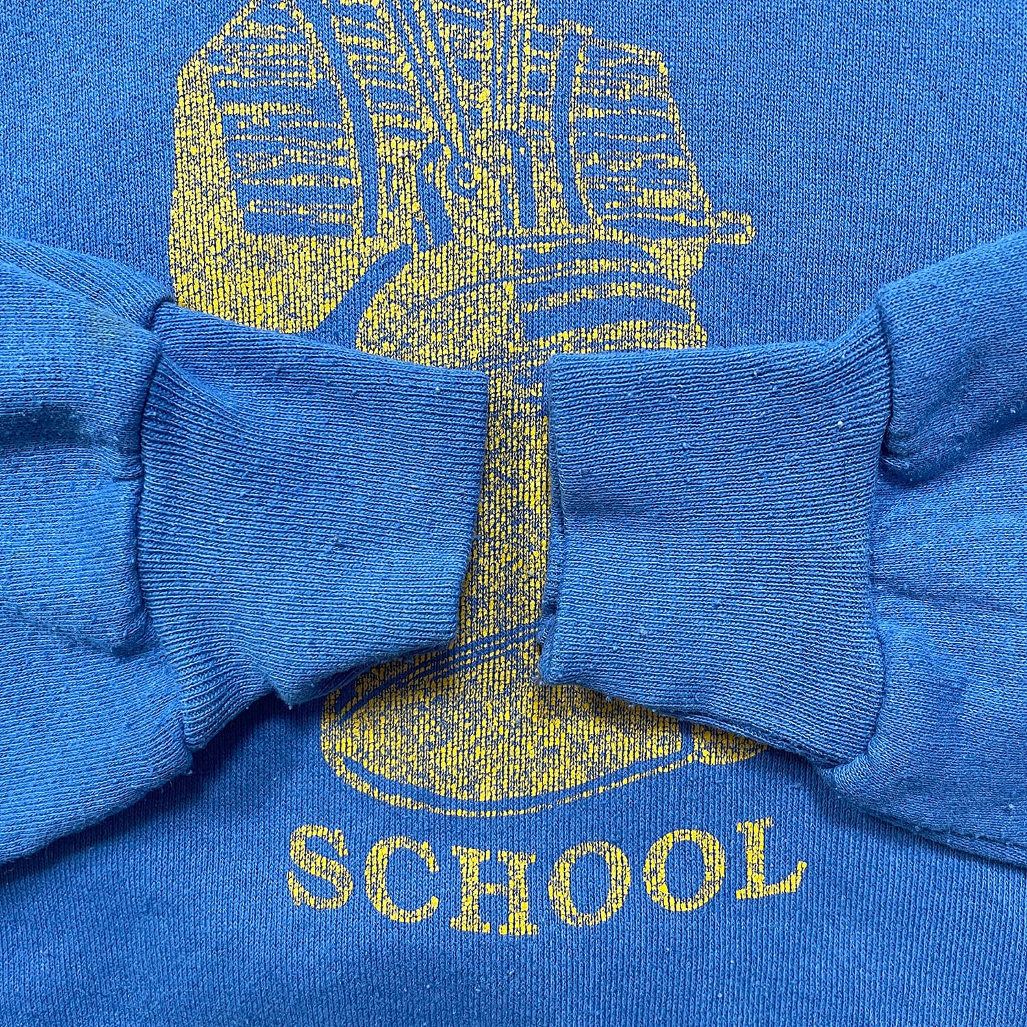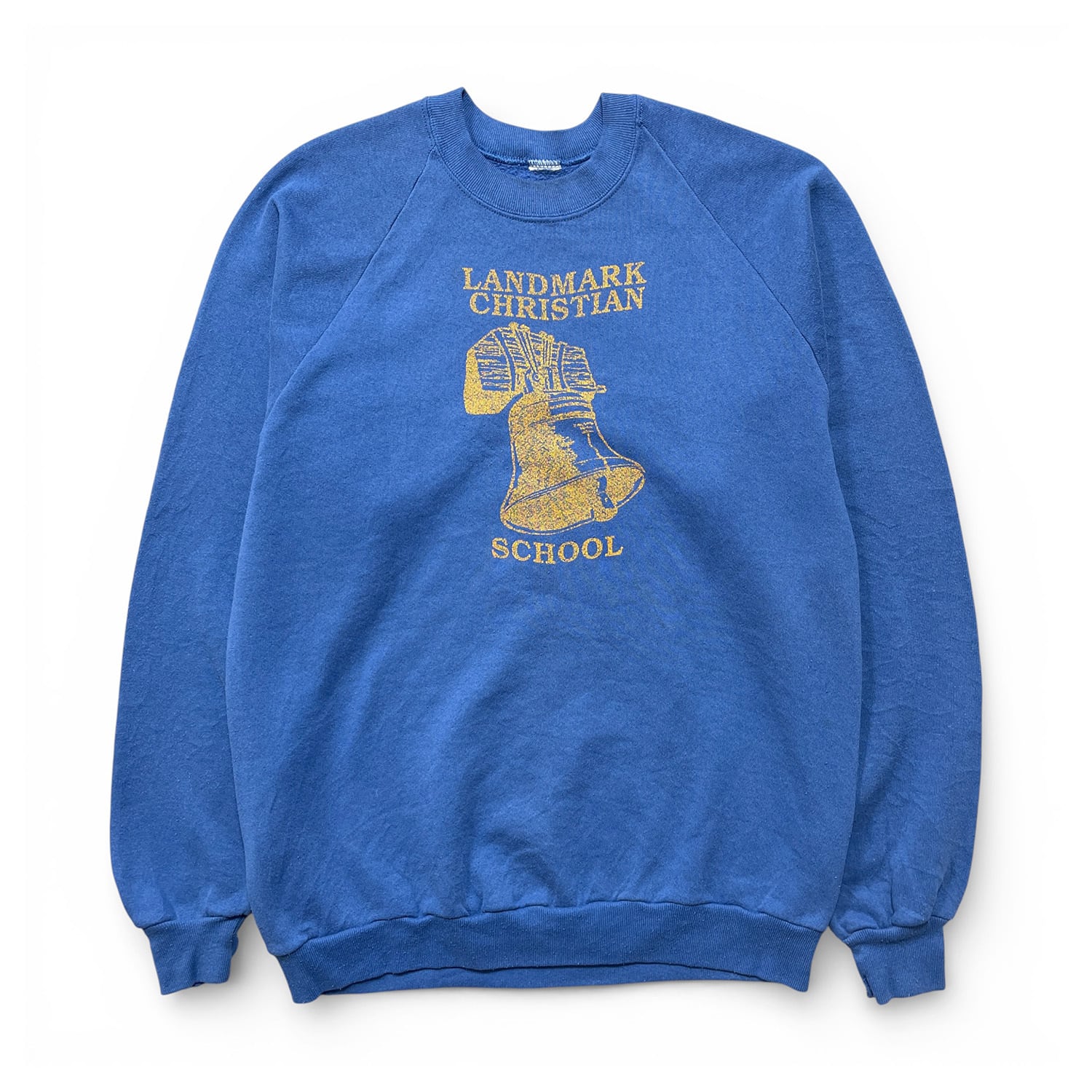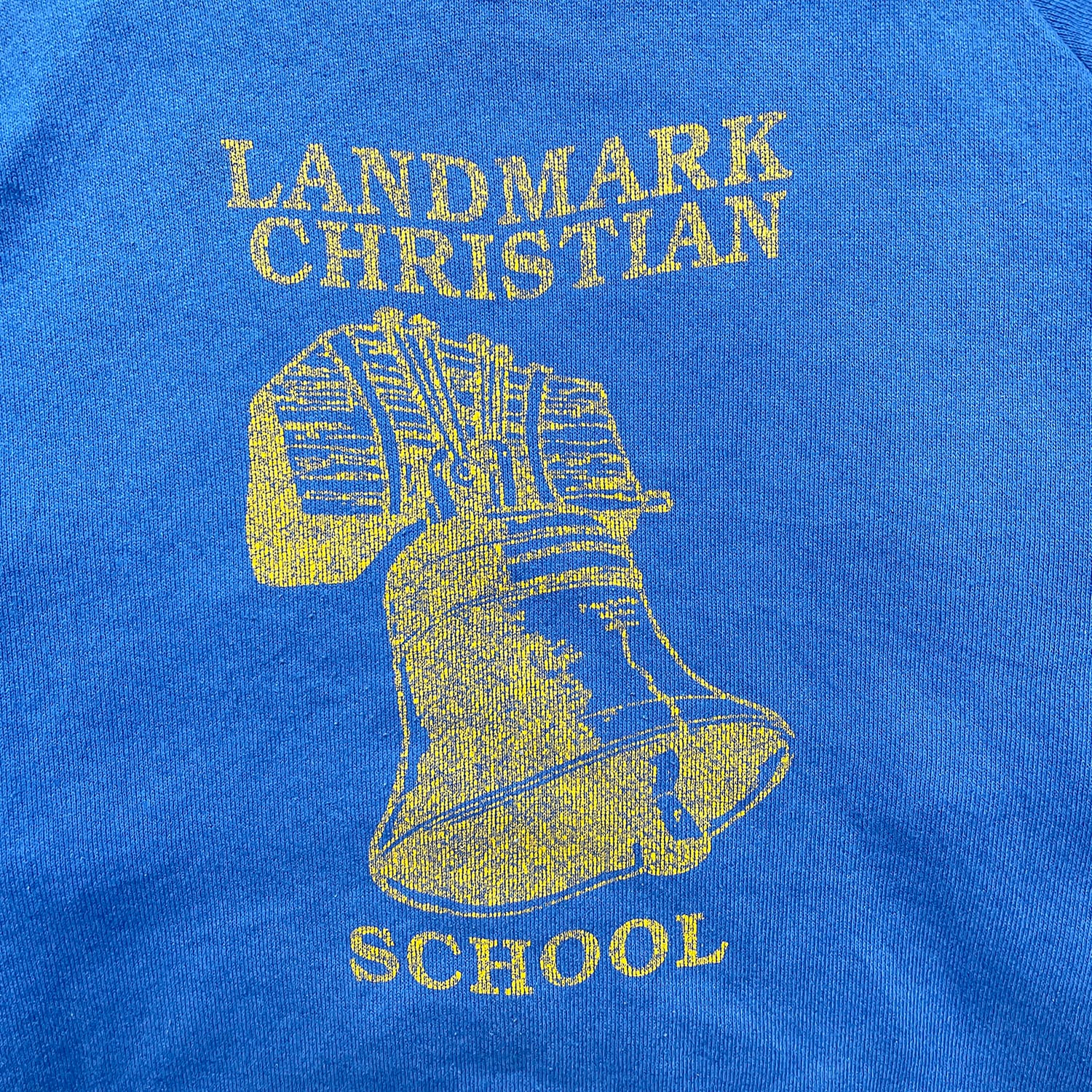 USA 古着 90S ヴィンテージ ランドマーククリスチャン学校 クルーネック スウェット トレーナー 自由の鐘 プリント ブルー メンズM 相当 BD3515