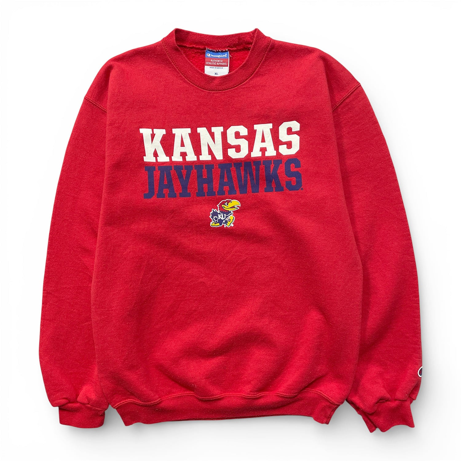 USA 古着 Champion チャンピオン カンザス大学 カレッジ プリント クルーネック スウェット トレーナー レッド メンズXL BD3516